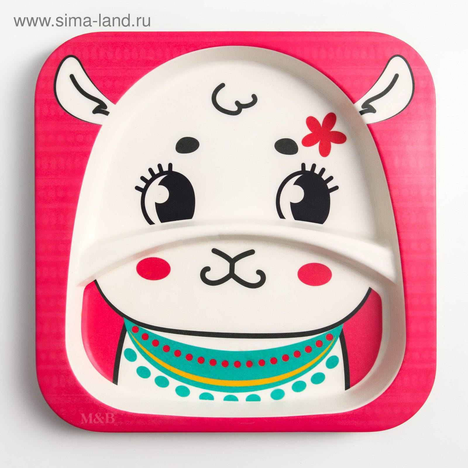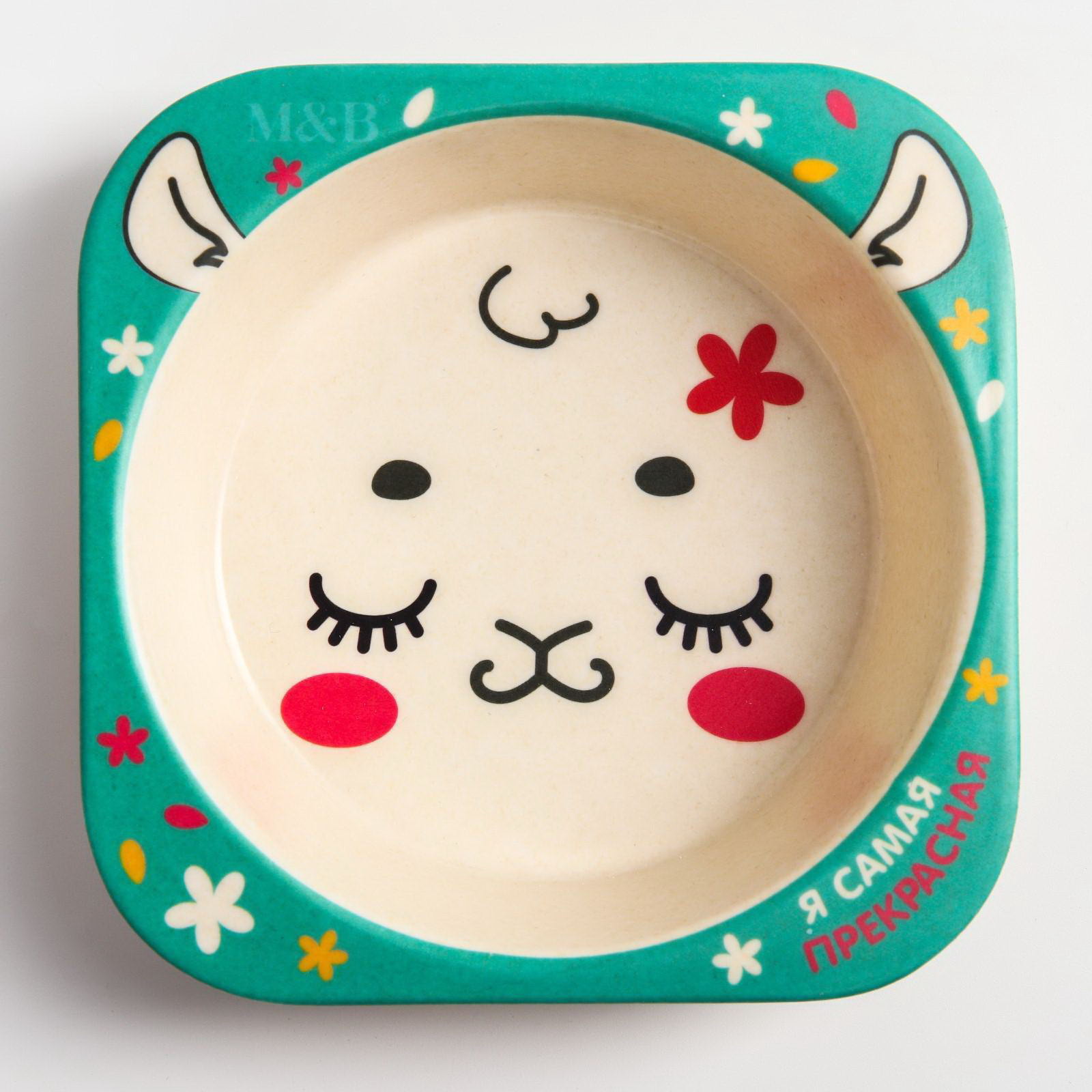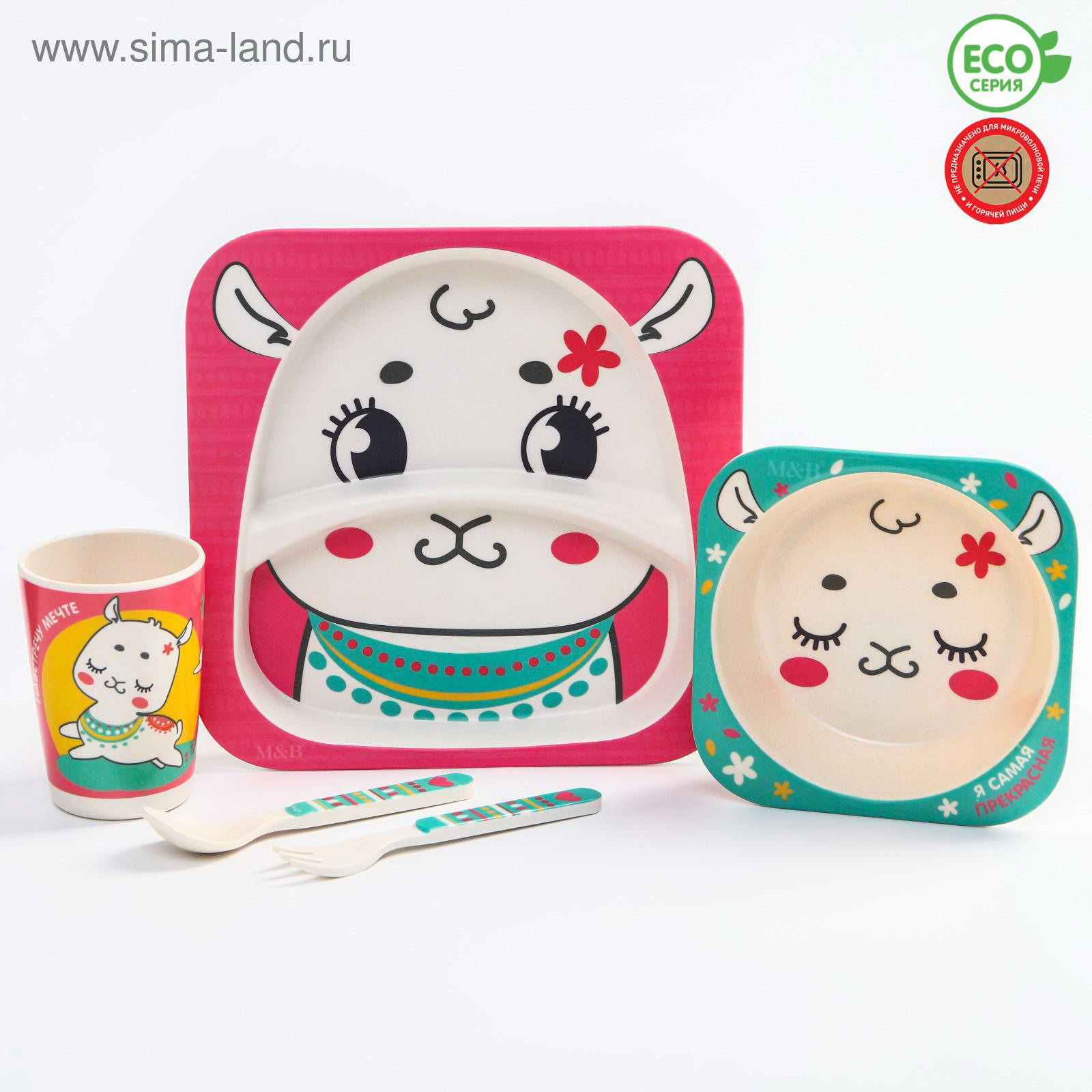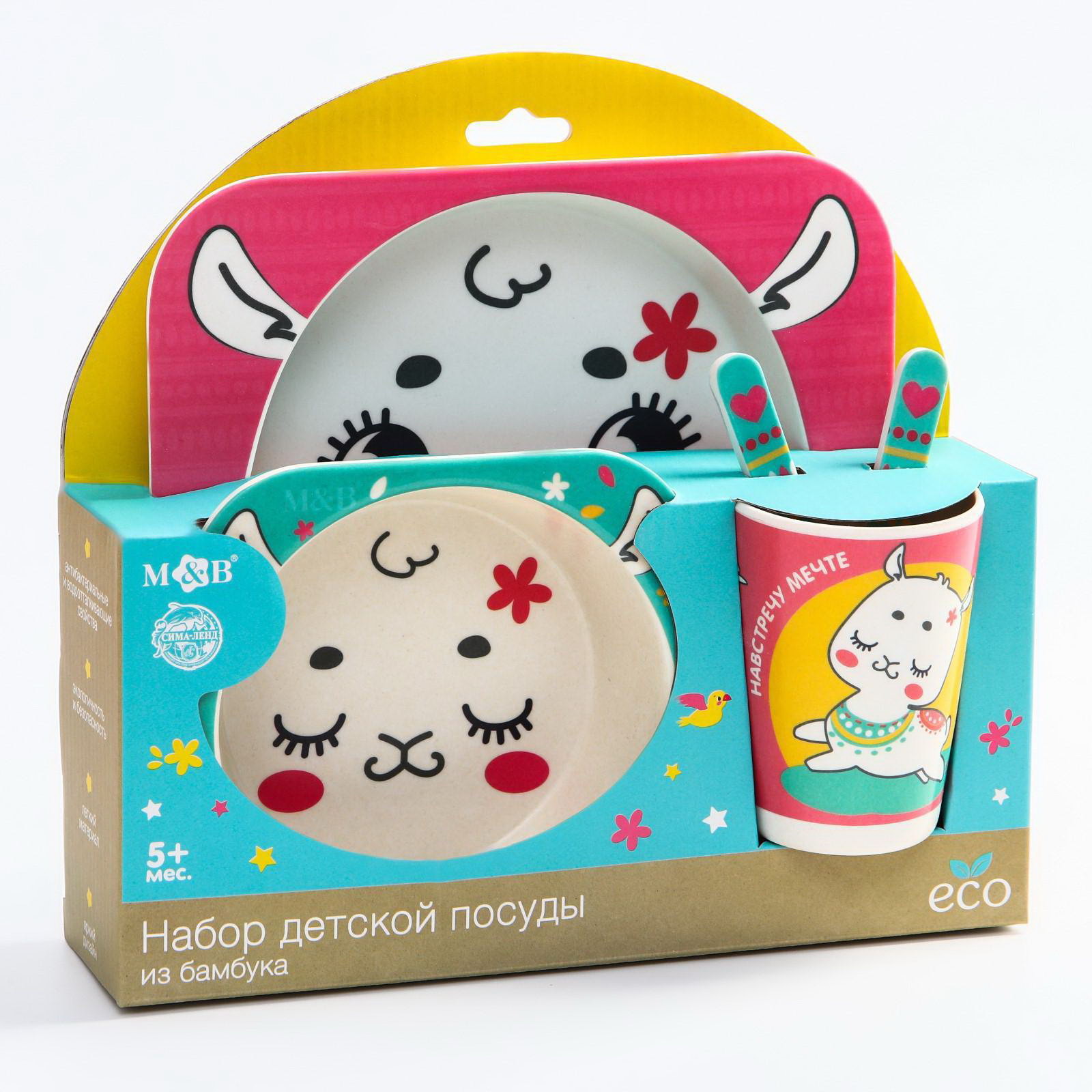 Детская посуда в наборе, бамбук, "ТРЕНД. Лама": тарелка, миска, стакан, вилка, ложка, Mum&Baby, Китай