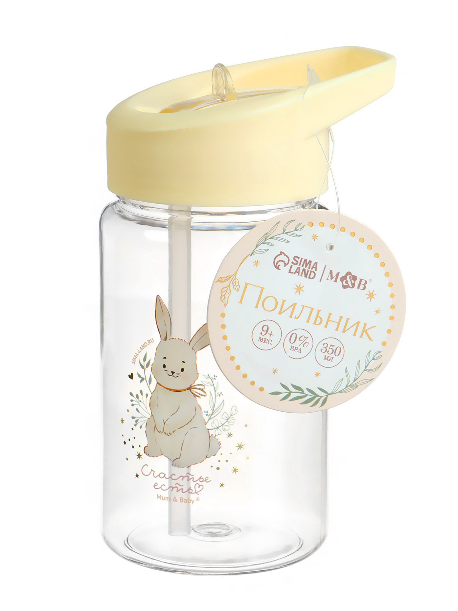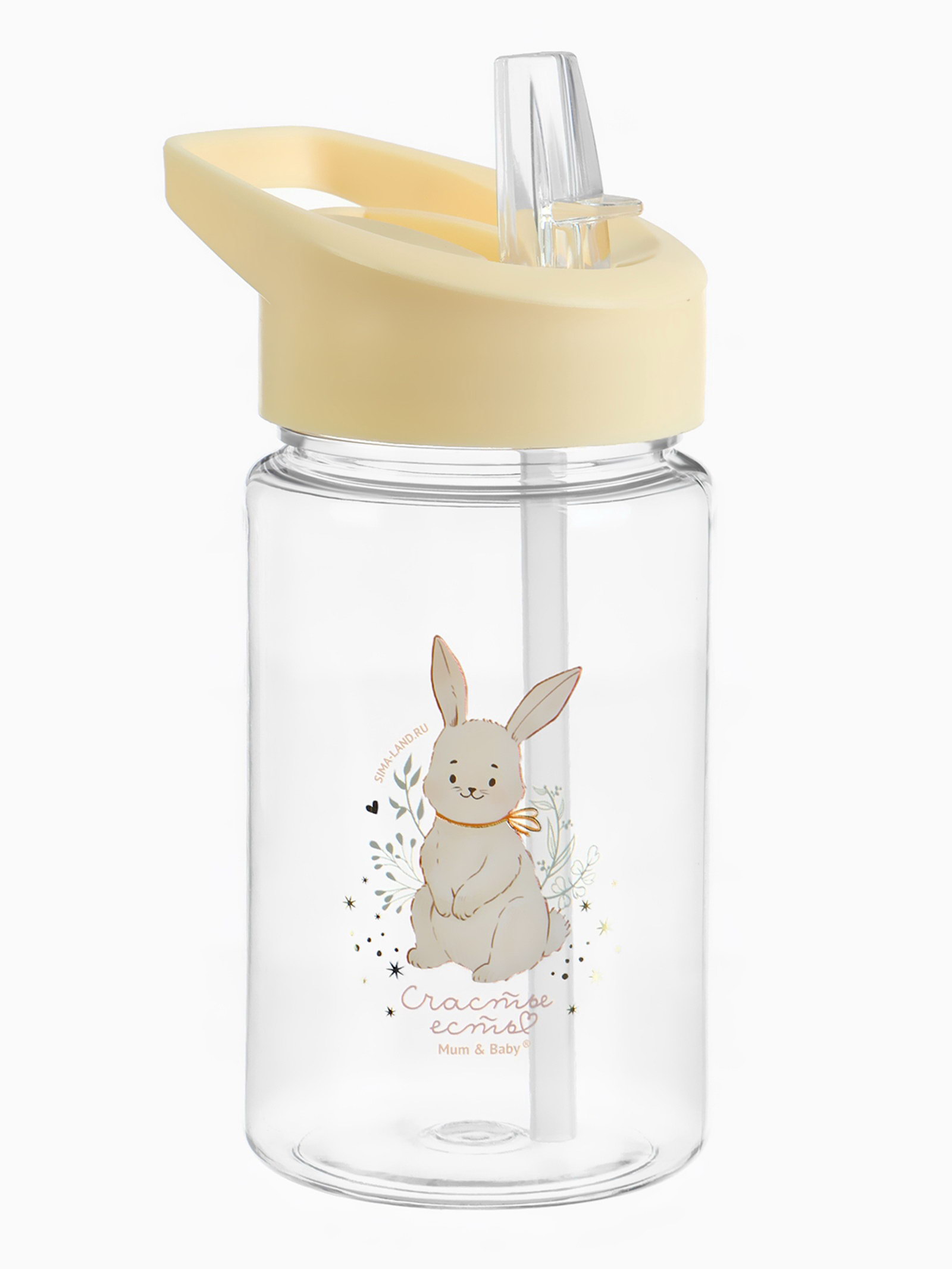 Поильник детский с трубочкой "Зайка", 350 мл, бежевый, 7.5x17x7.5 см., Mum&Baby, Китай
