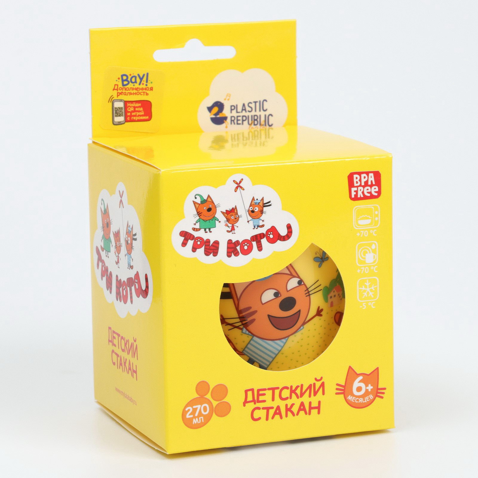 Стакан детский Три Кота, 270 мл, 7.8х7.8х7.7 см., Plast team, Россия