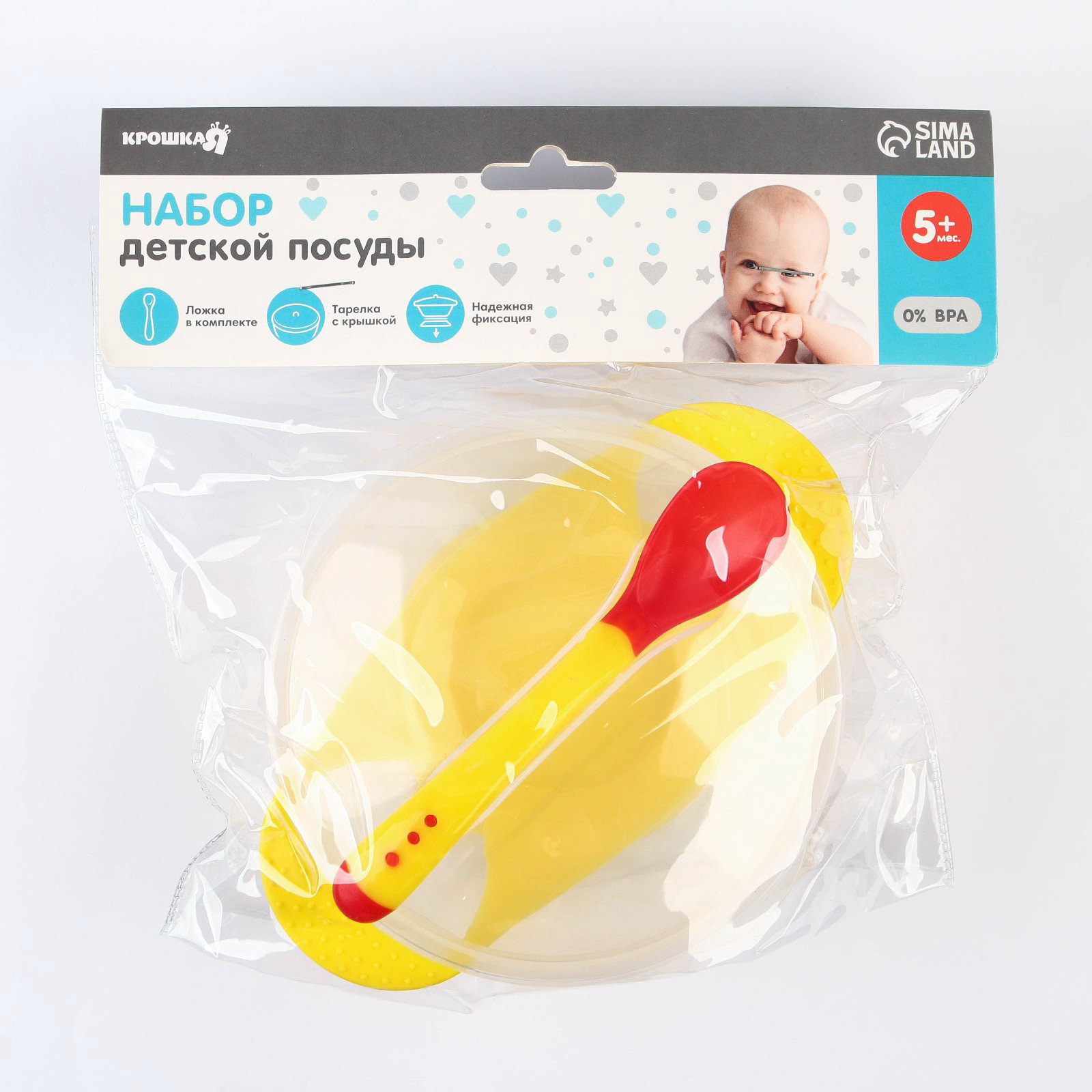 Тарелка на присоске 340 мл, в наборе крышка, термоложка, цвет жёлтый, 16x14x6 см., Крошка Я, Китай