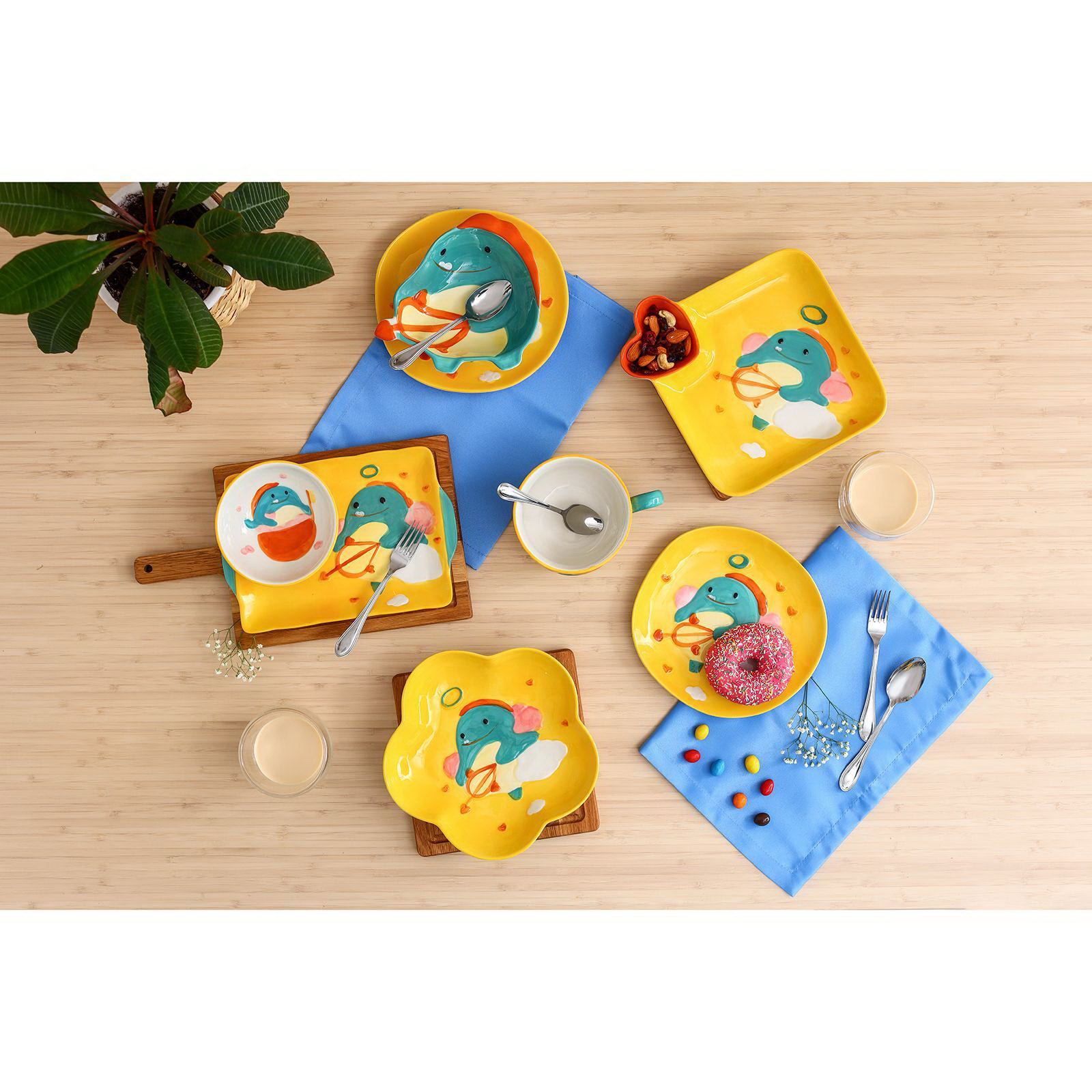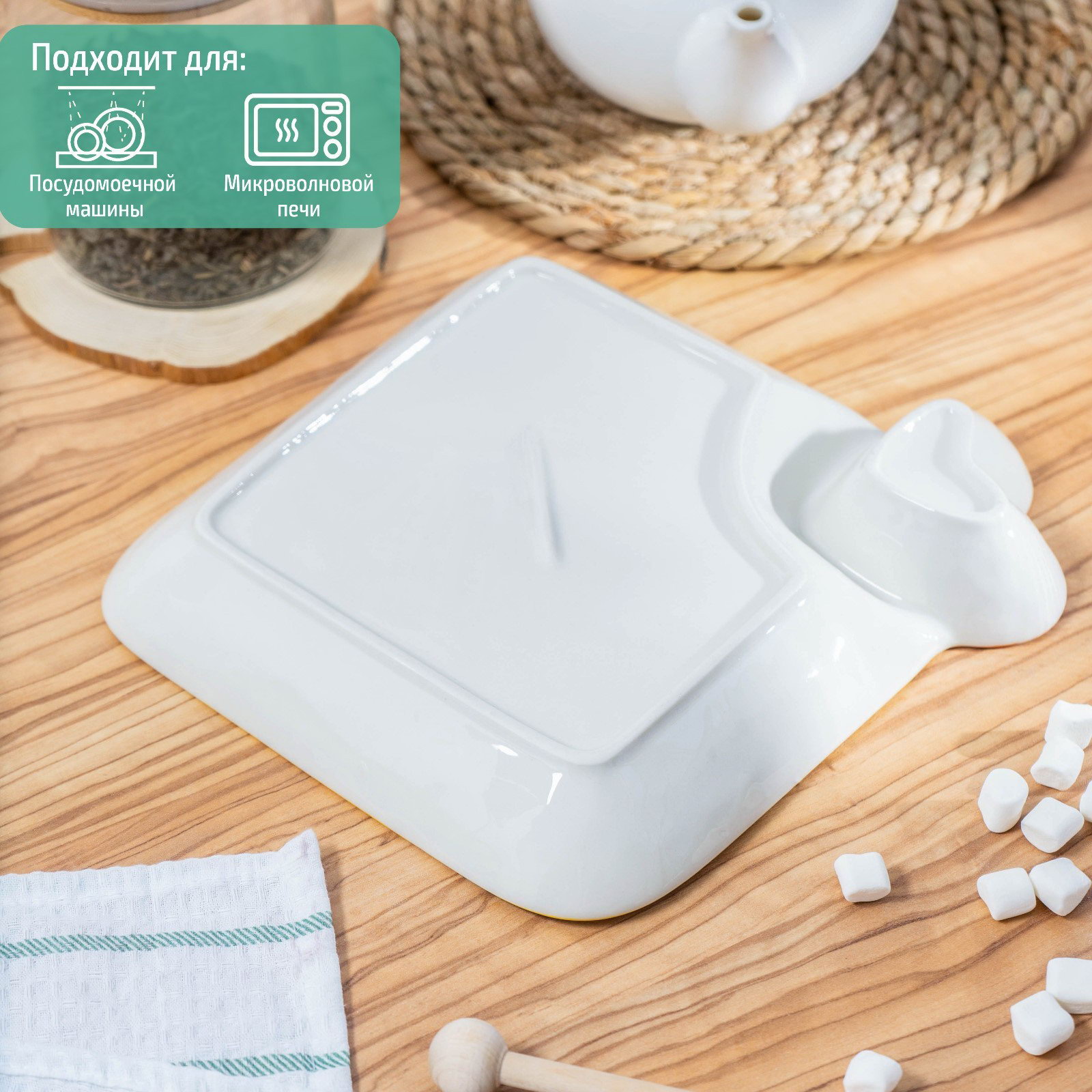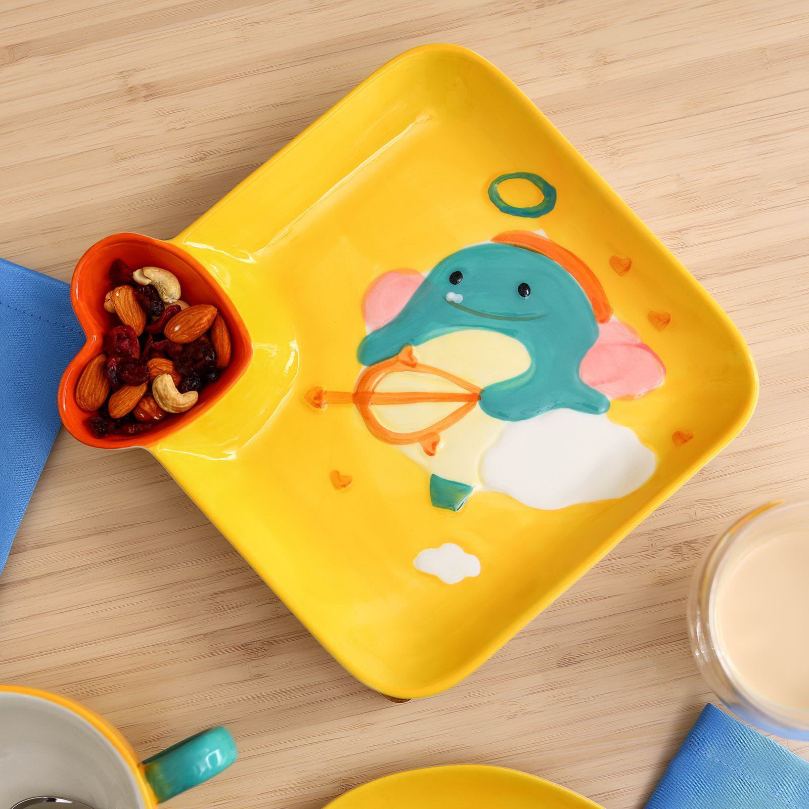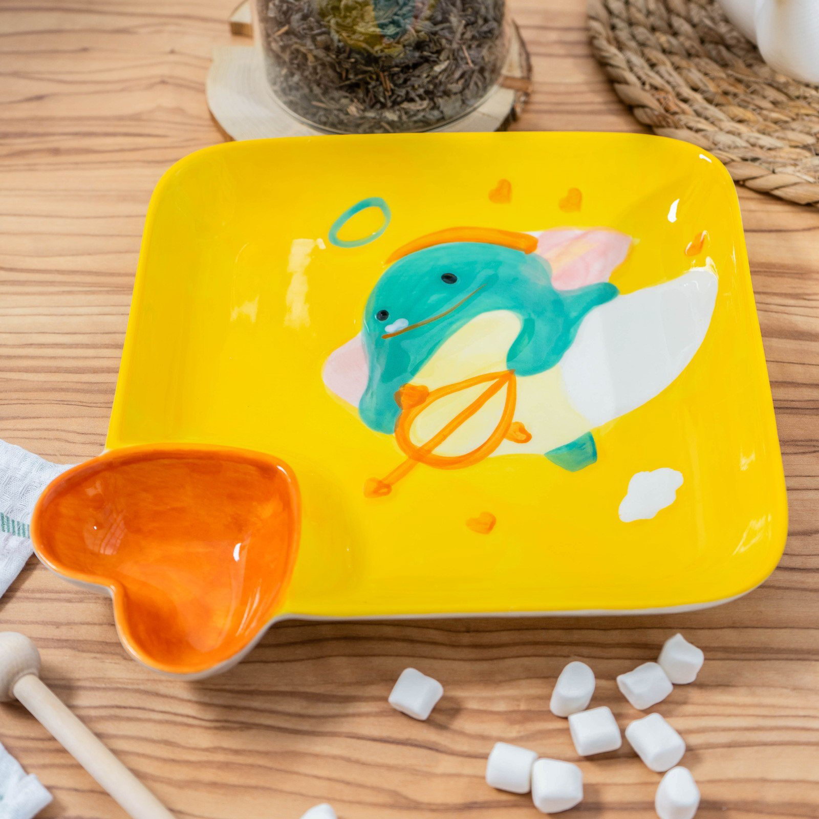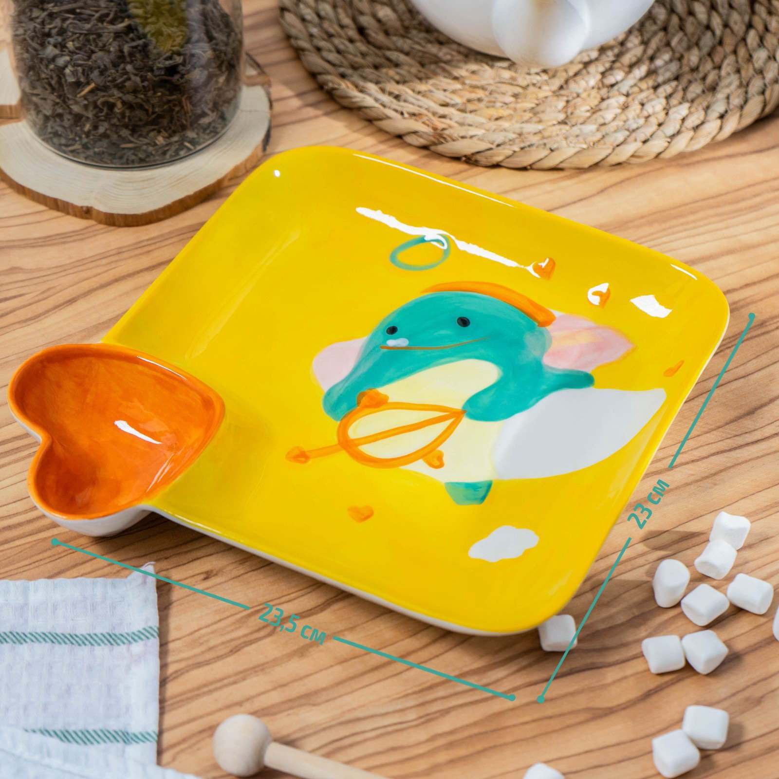 Блюдо керамическое квадратное с соусником "Купидон Дино", 23.5x23 см, цвет жёлтый, 23х23х3.5 см., Китай