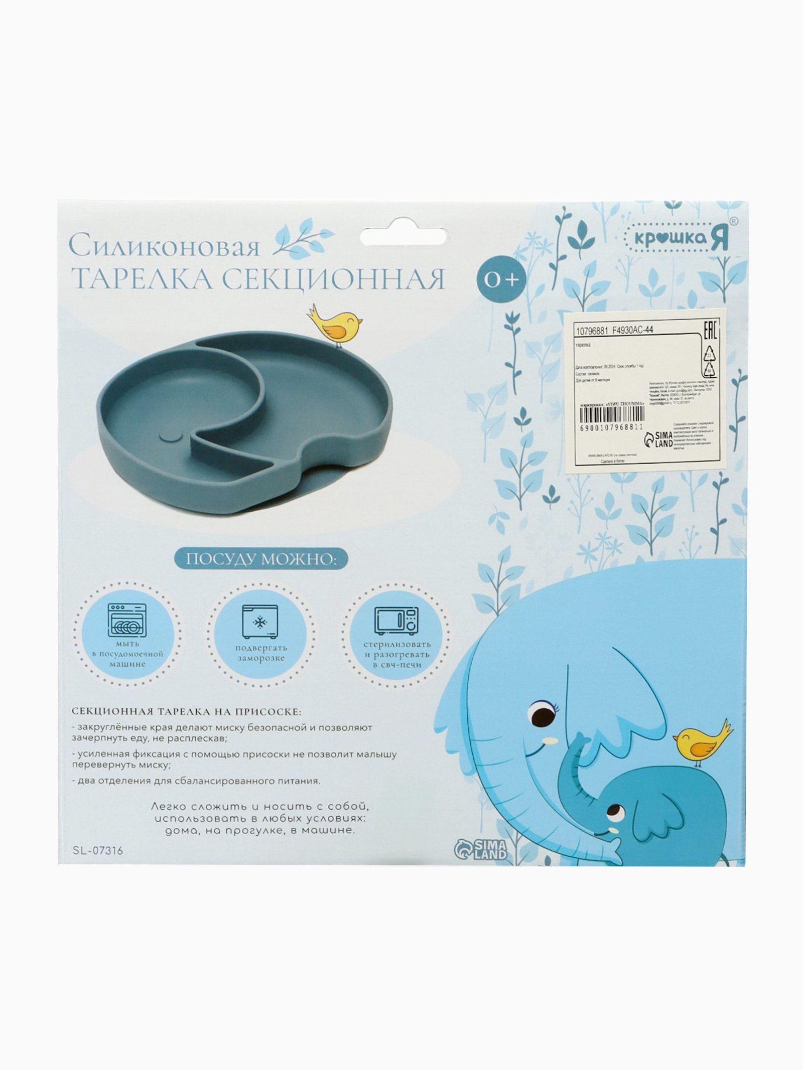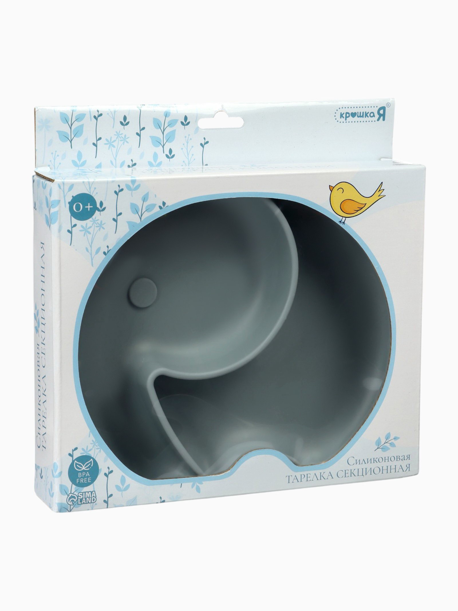 Силиконовая тарелка секционная детская, серая, 19.8x16x3.5 см., Крошка Я, Китай