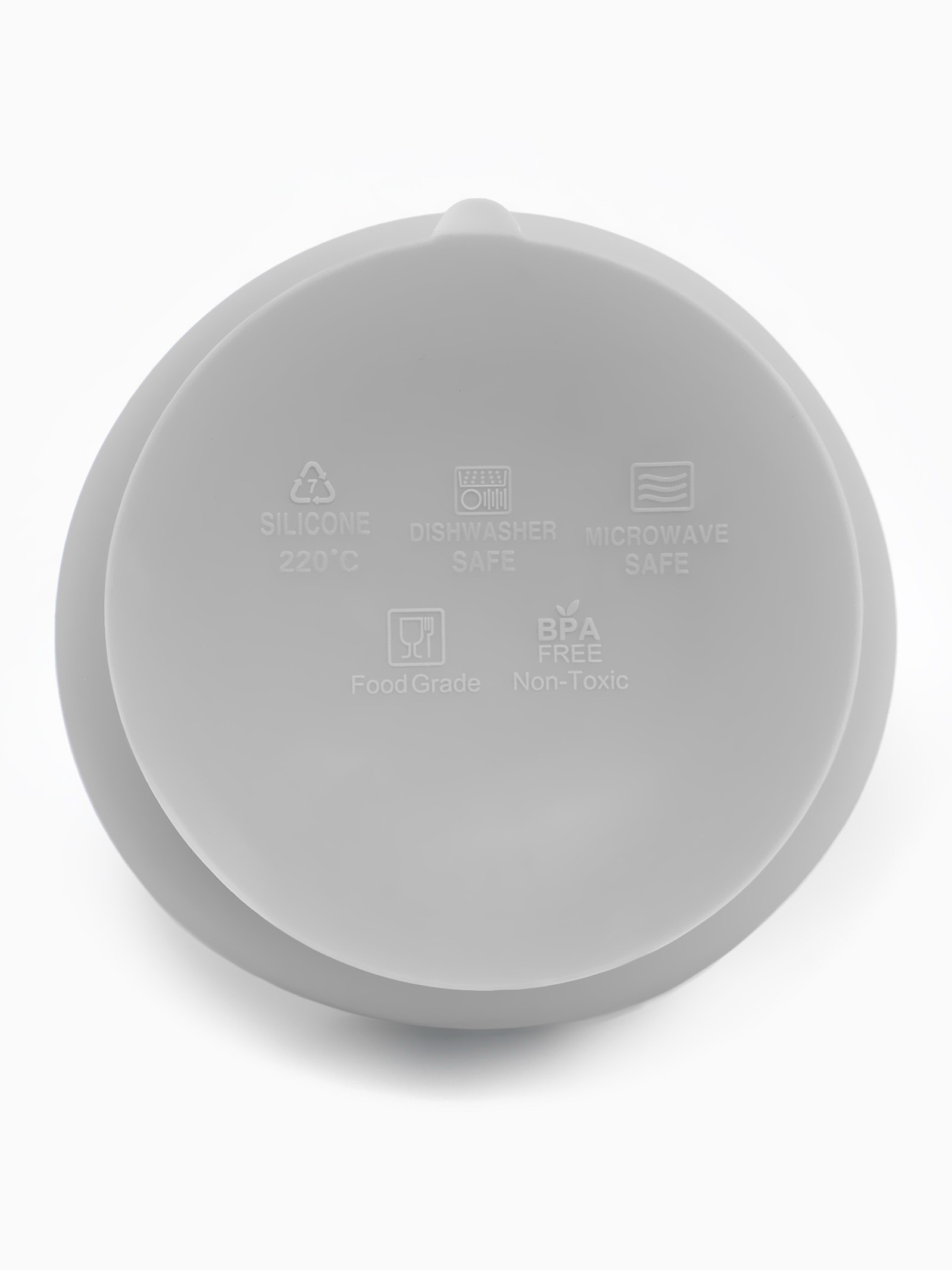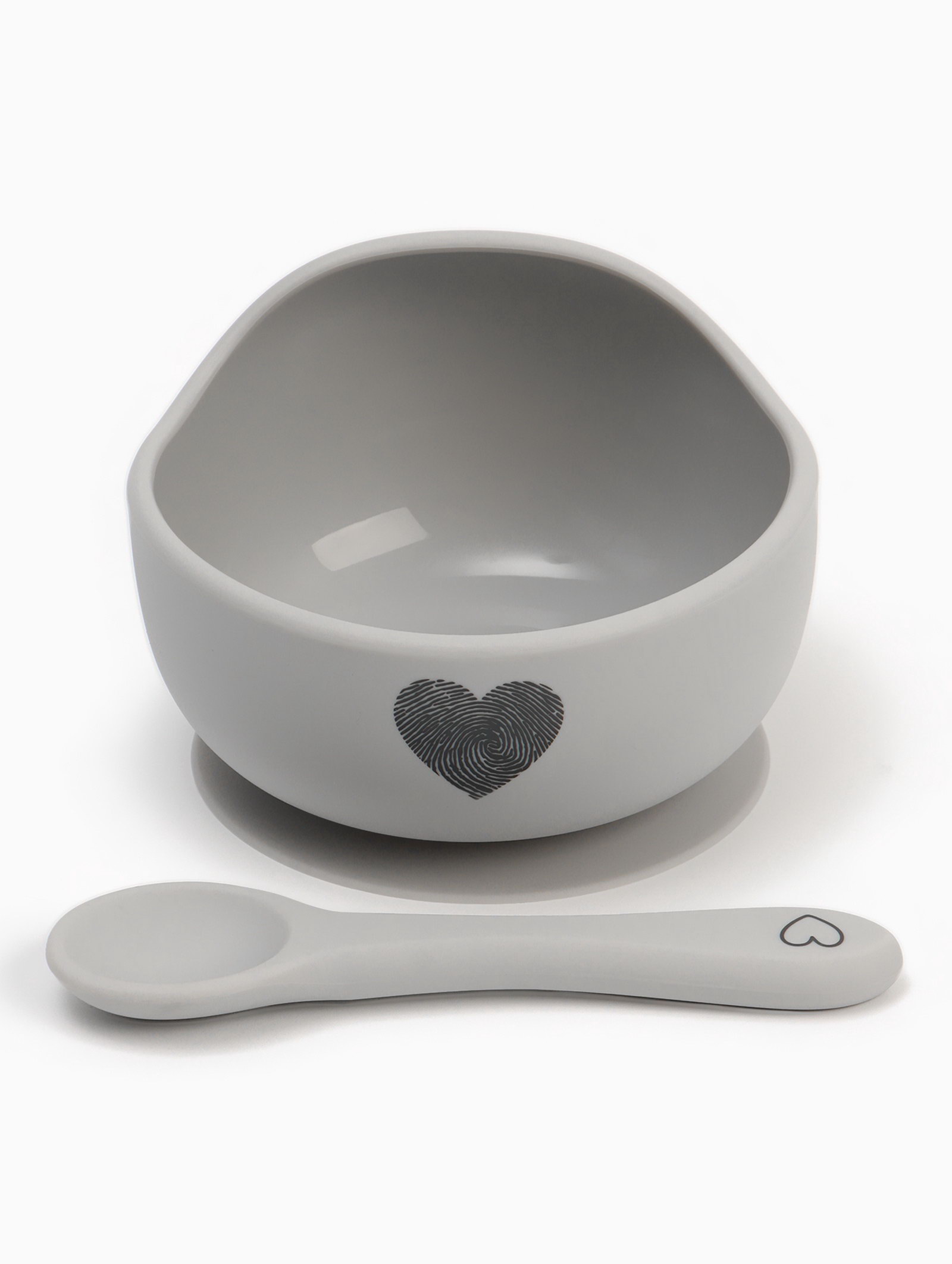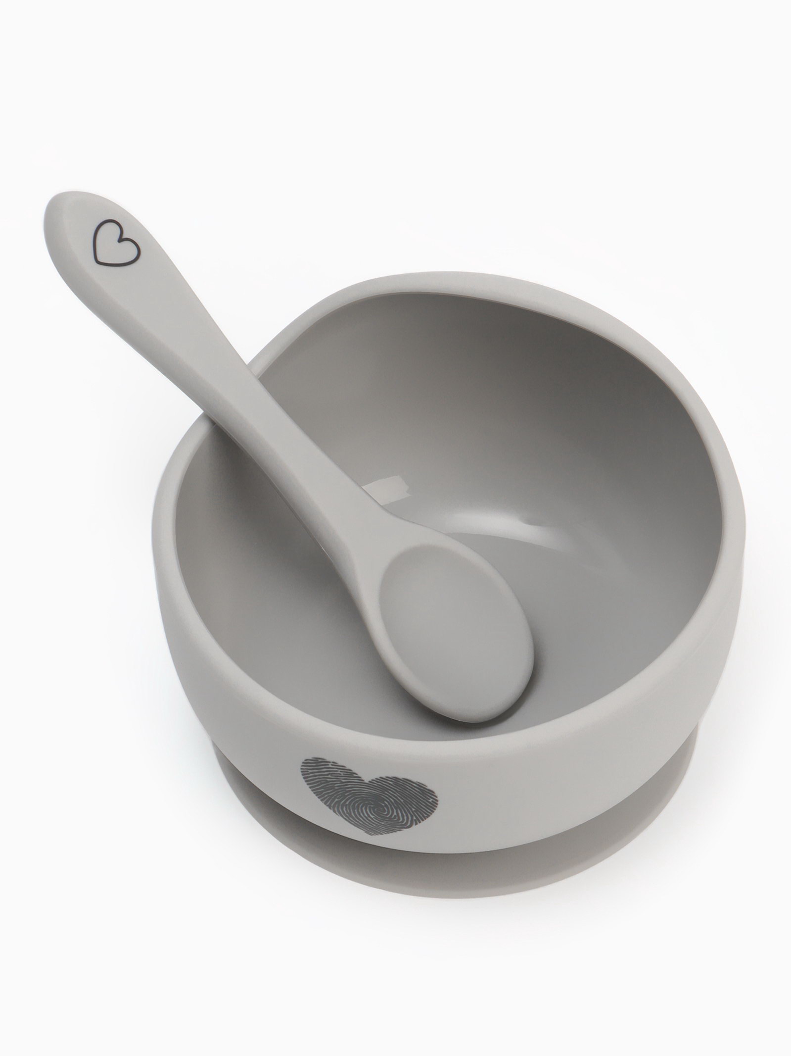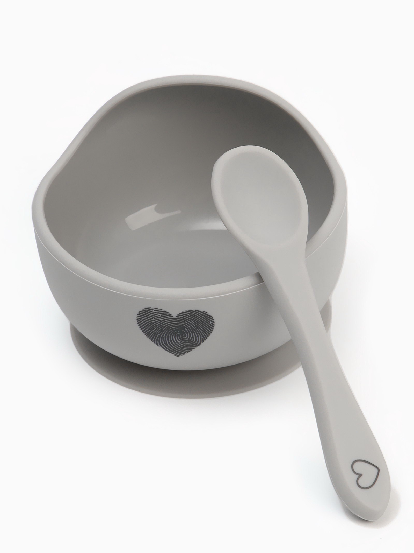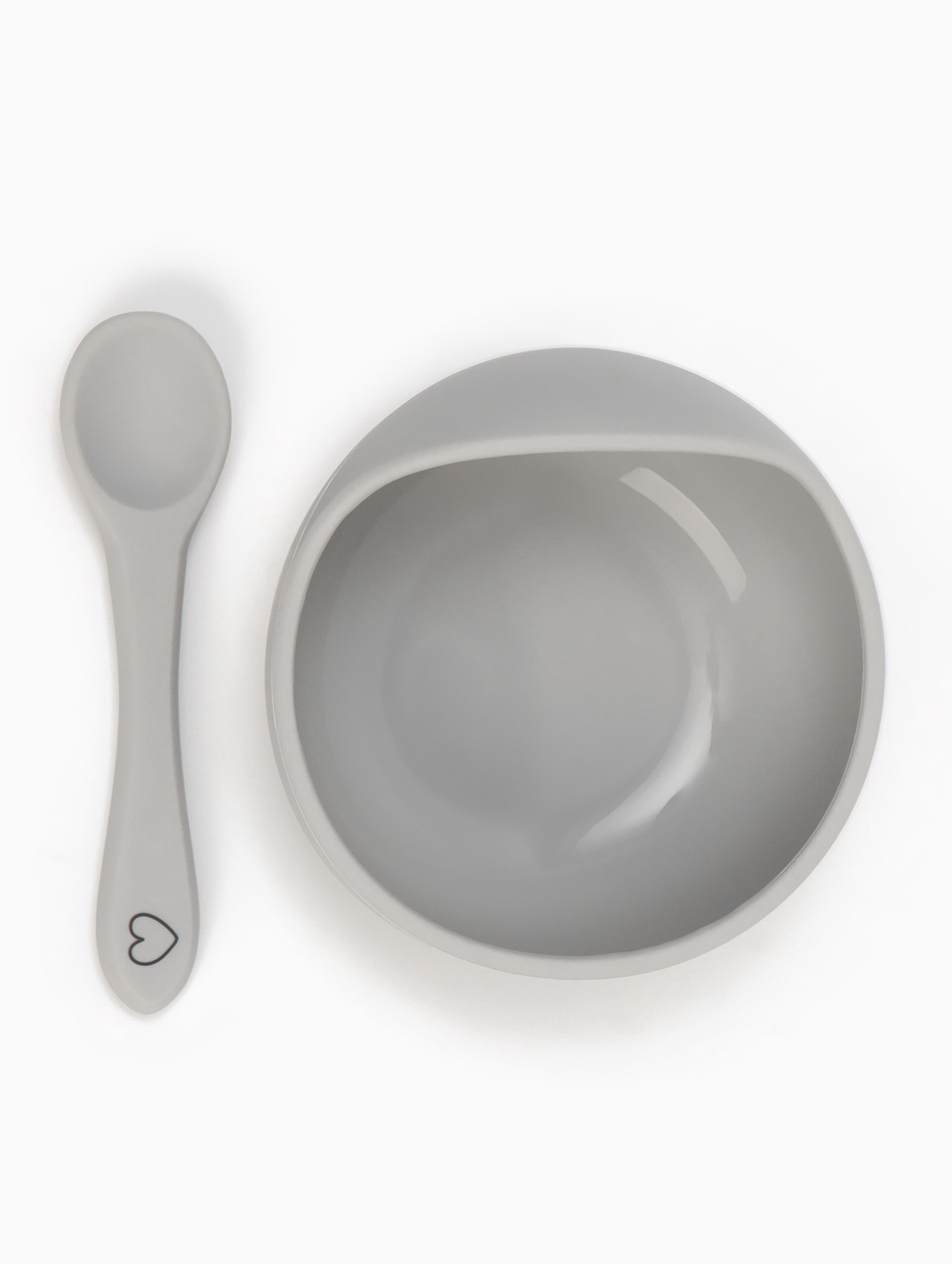 Тарелка детская на присоске и ложка, серый, 12х12х9 см., Mum&Baby, Китай