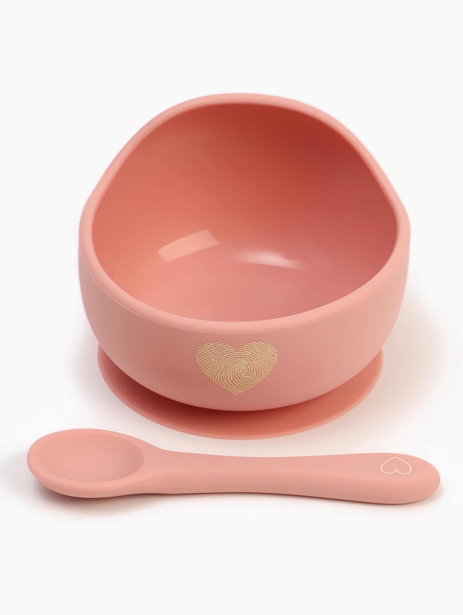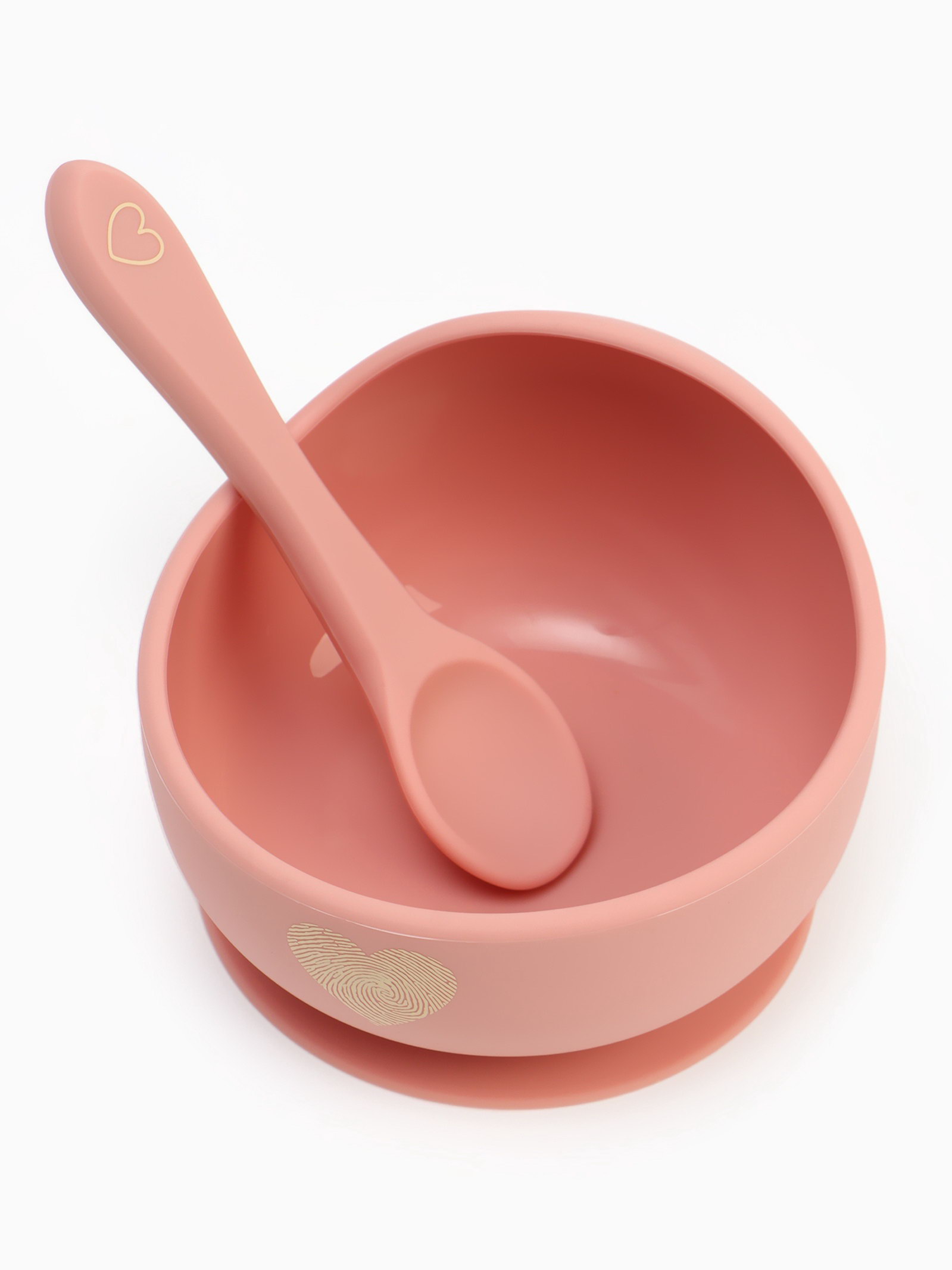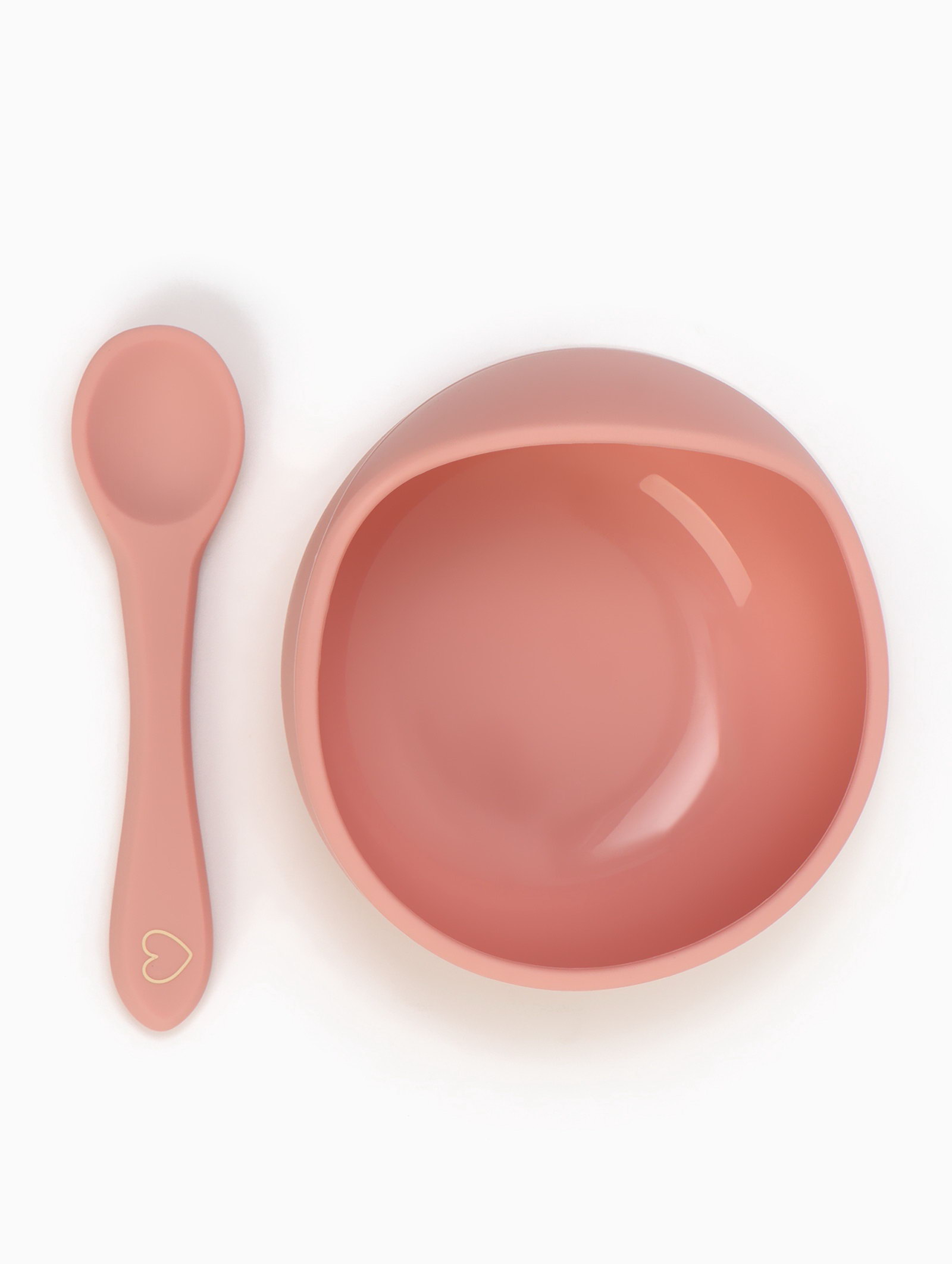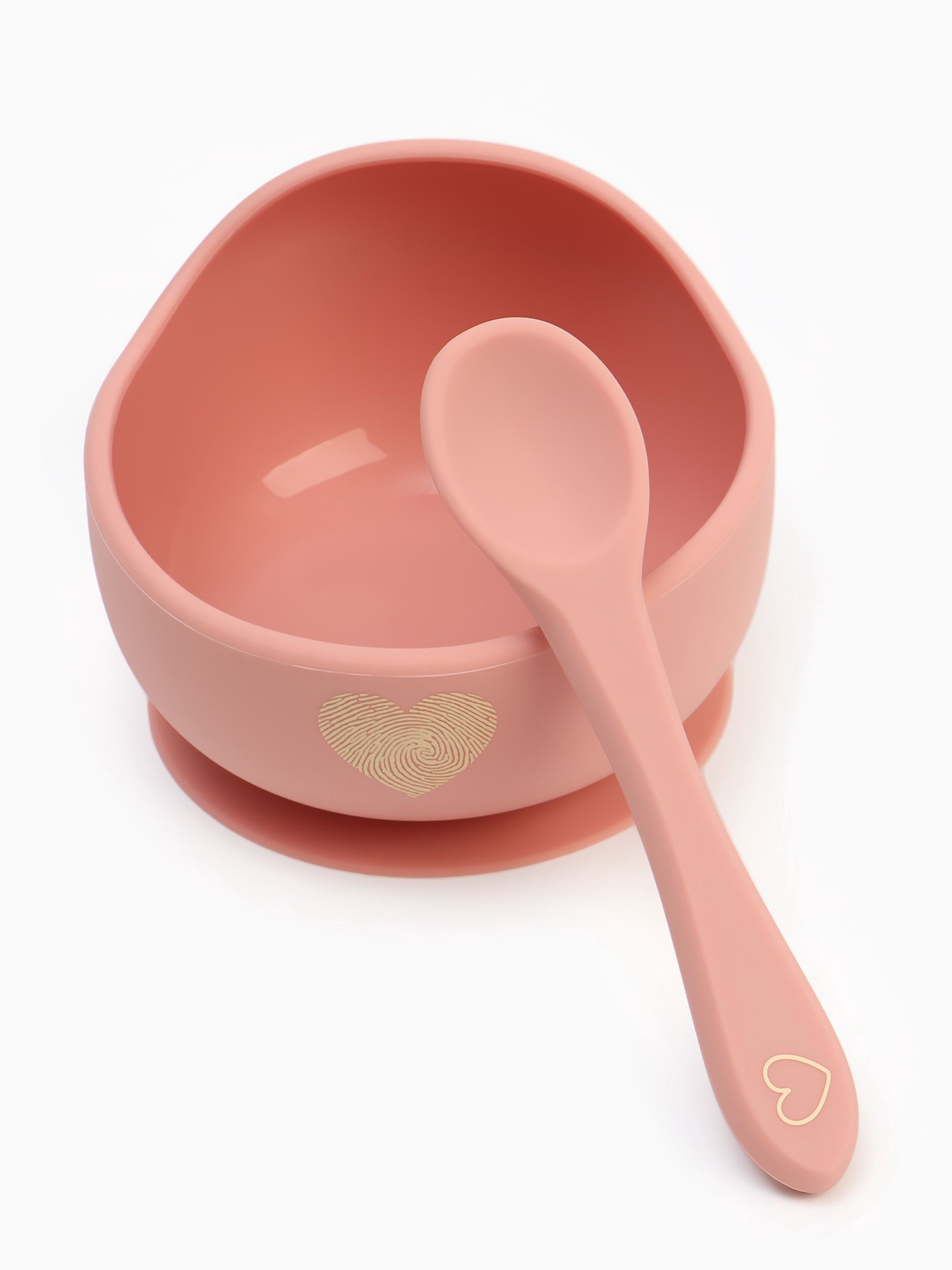 Тарелка детская на присоске и ложка, розовый, 12х12х9 см., Mum&Baby, Китай