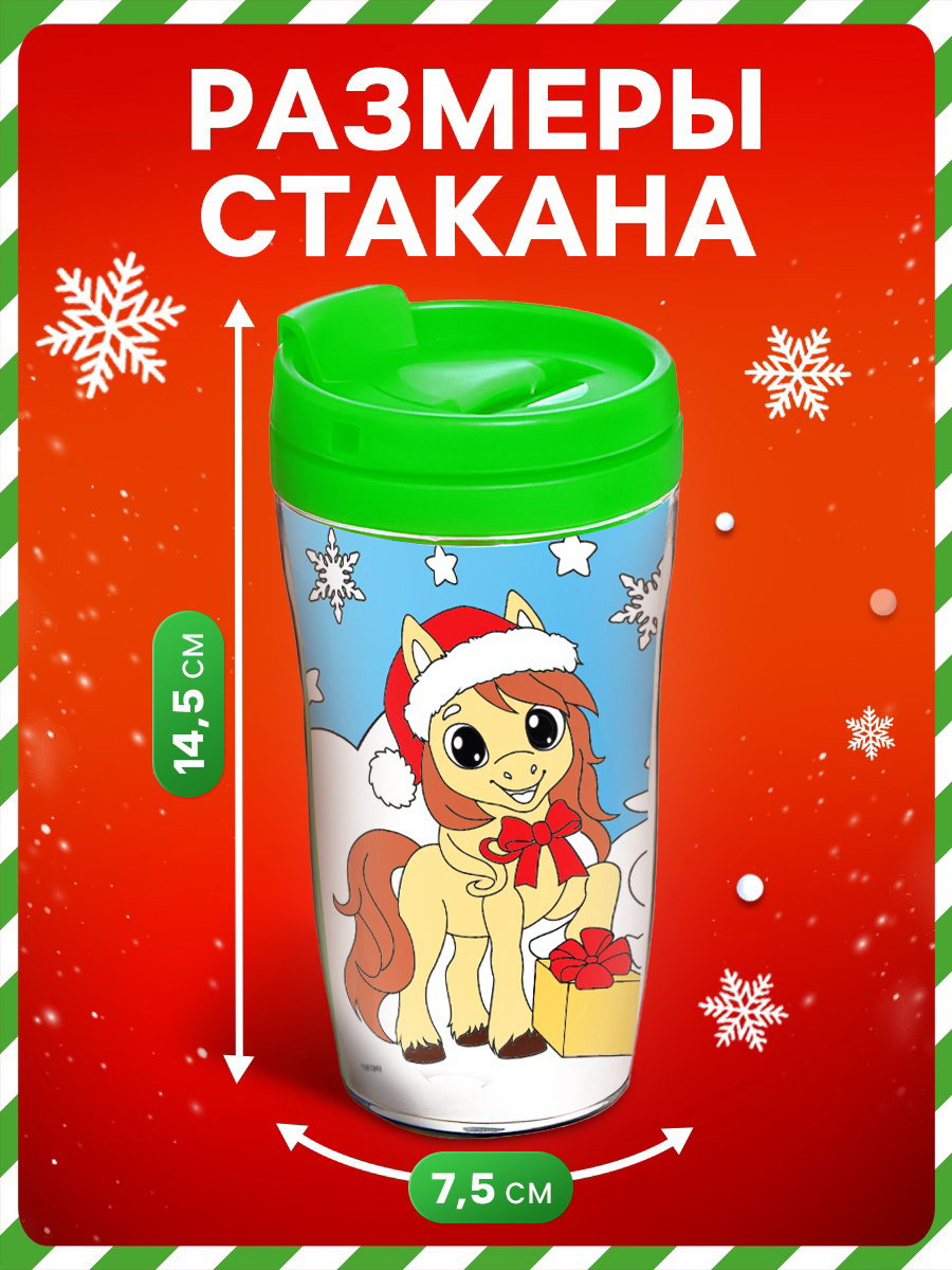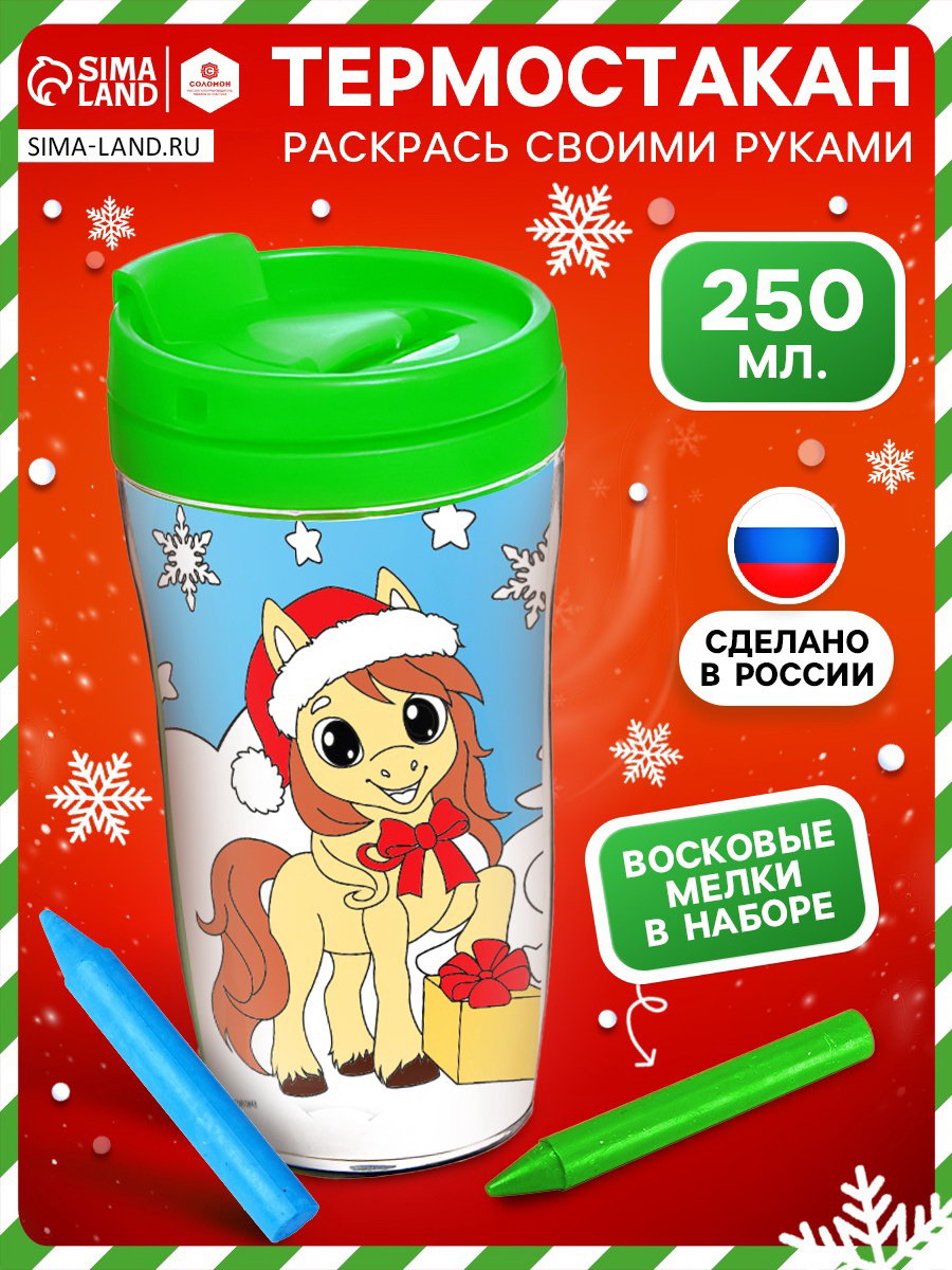 Термостакан-раскраска "С Новым годом! Лошадь", 250 мл, с мелками, цвет зелёный, 250 мл., Соломон, Россия