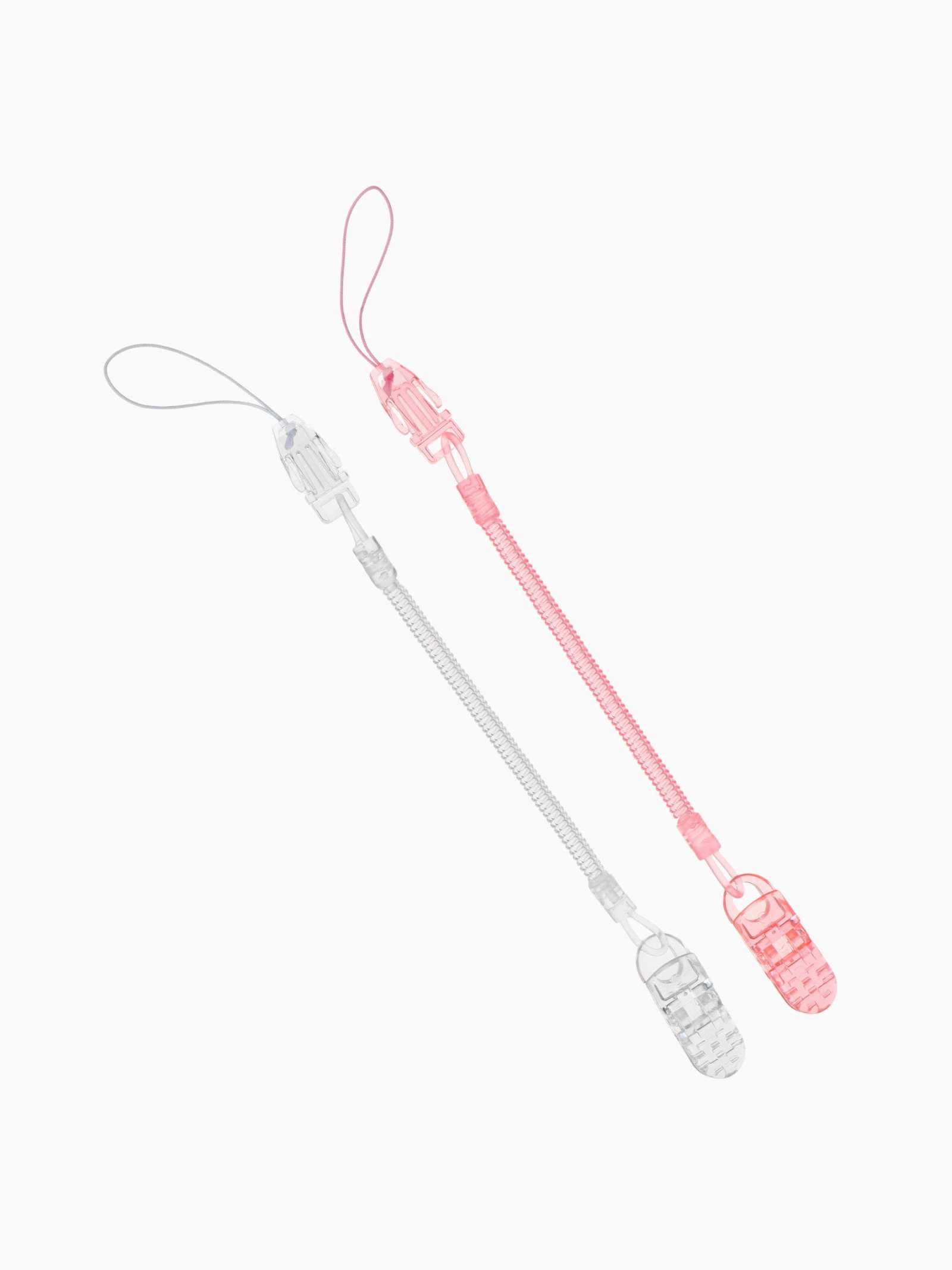 Держатель для пустышки, пружинка, 2 шт., цвет прозрачный/розовый, Крошка Я, Китай