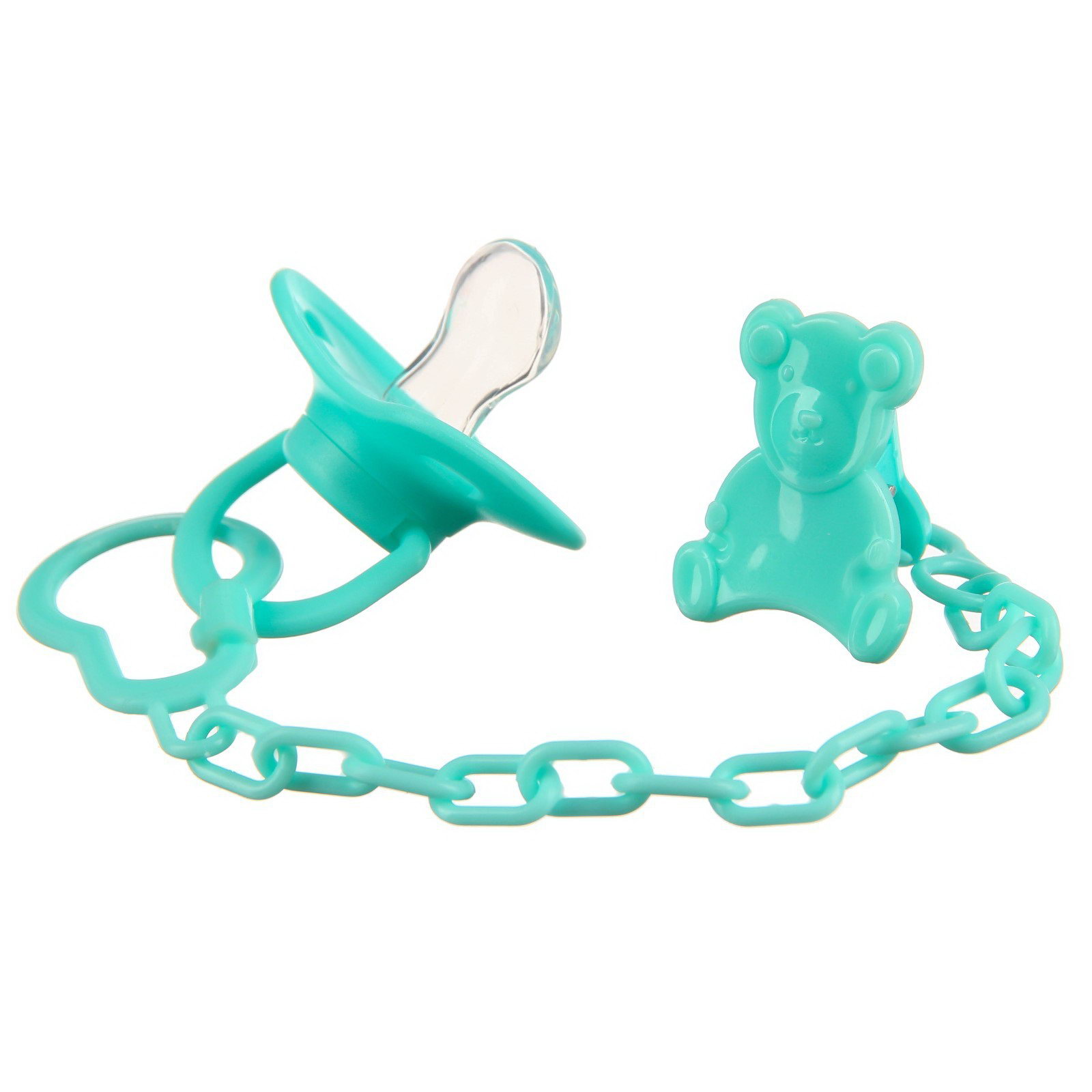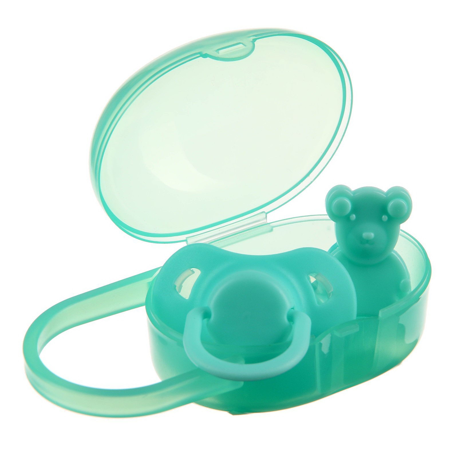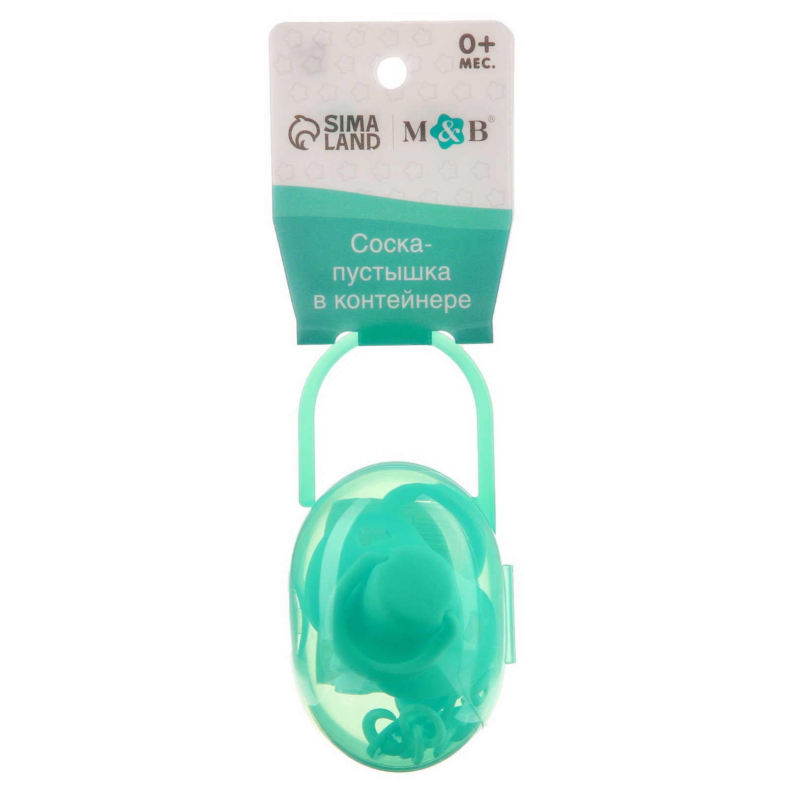 Пустышка классическая, с колпачком и держателем, в контейнере, от 0 мес., цвет бирюзовый, 5.5x3.5x11.5 см., Mum&Baby, Китай