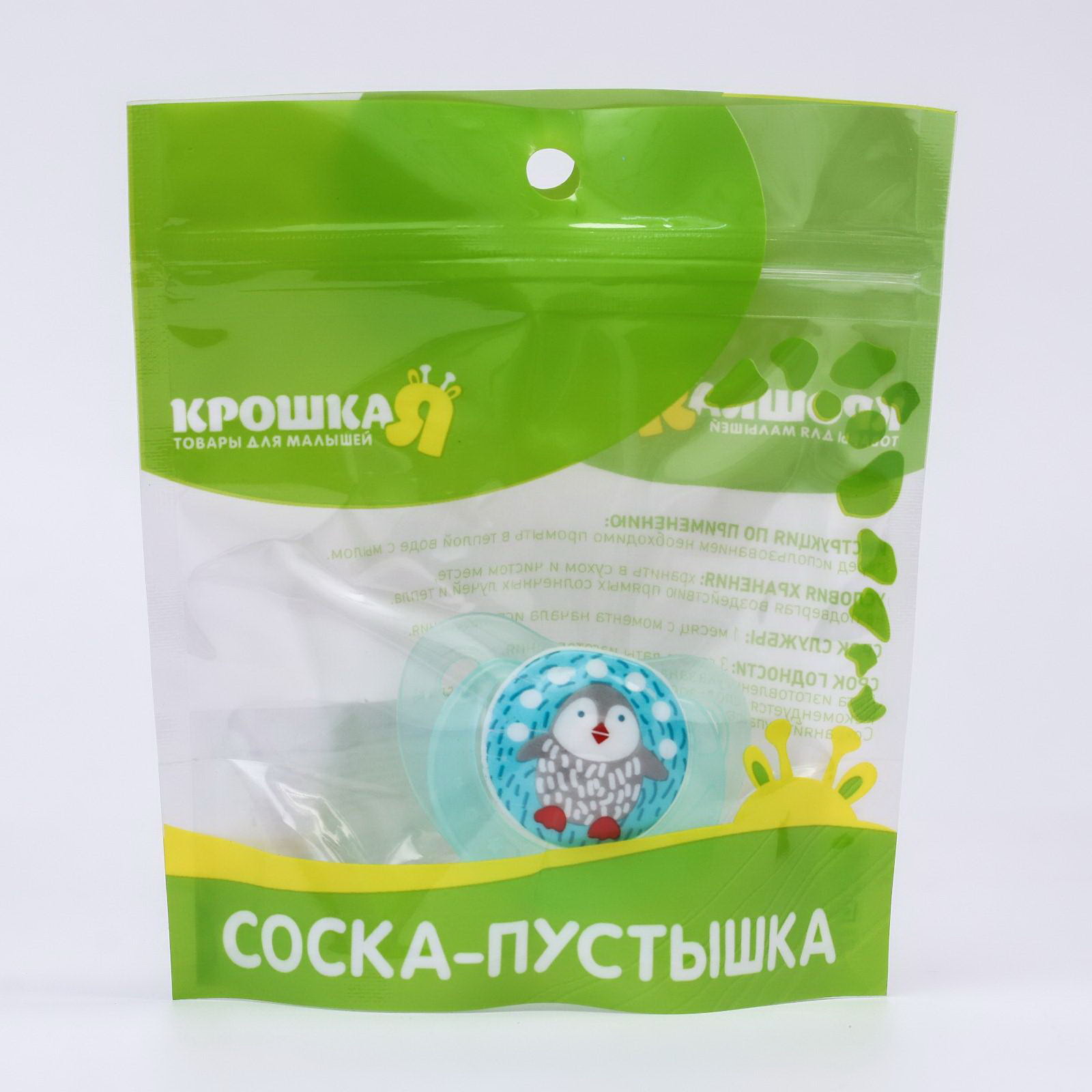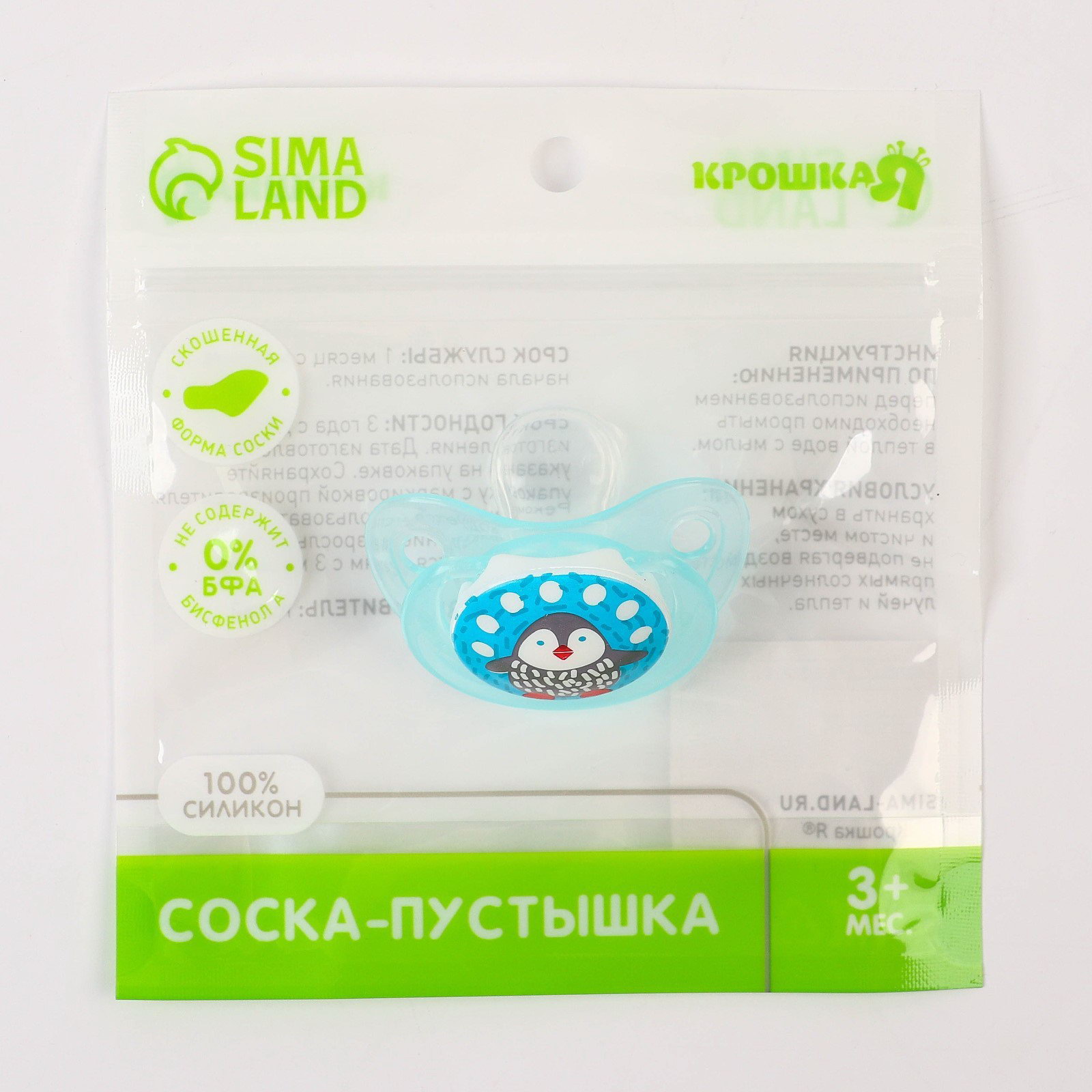 Соска - пустышка силиконовая ортодонтическая "Пигвинчик", от 3 мес., голубой, 6x3x4 см., Крошка Я, Китай
