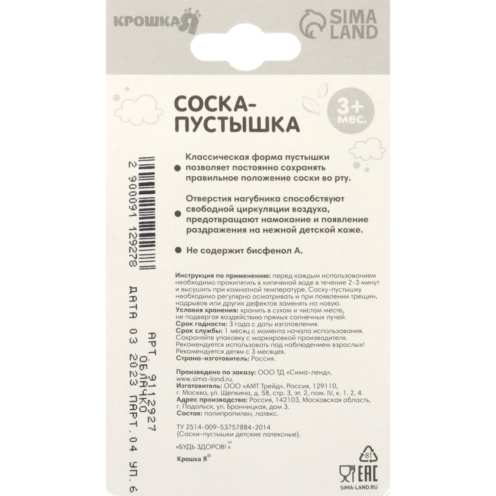 Для кого: Для девочки, Для мальчика, Унисекс Возраст: Детский, От 3 месяцев Размер упаковки: 8.5 x 4 x 15.5 см. Цвет: Зелёный Эксклюзивный дизайн: Да Длина баллона, см: 2.8 tnved: 3926909700 tnved: 3926909700 Особенность пустышки: Без особенностей Форма соски: Классическая Набор: Нет Температурное ограничение: Нет Материал соски: Латекс С держателем: Нет С колпачком: Нет Форма нагубника: Сердечко Для детей до 3 лет: Да Русская упаковка: Да Латексная пустышка сделана из натурального каучука, она мягкая и эластичная. Чаще всего принадлежности из этого материала рекомендуют использовать именно в первые месяцы жизни. Они лучше других подходят для детей, родившихся раньше срока. Классическая симметричная форма позволяет постоянно сохранять правильное положение соски во рту. Давать её малышу можно любой стороной. Отверстия нагубника обеспечивают свободную циркуляцию воздуха, предотвращают намокание и появление раздражения на нежной детской коже. Пустышку удобно держать в руках благодаря кольцу, которое прекрасно подходит для цепочки с прищепкой . Изделие не содержит бисфенол А. Рекомендовано для детей с рождения. | ||