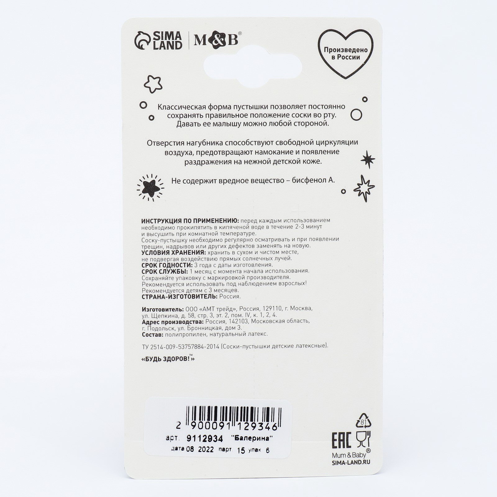 Соска - пустышка латексная классическая "Балерина", от 3 мес., розовый, Крошка Я, Россия