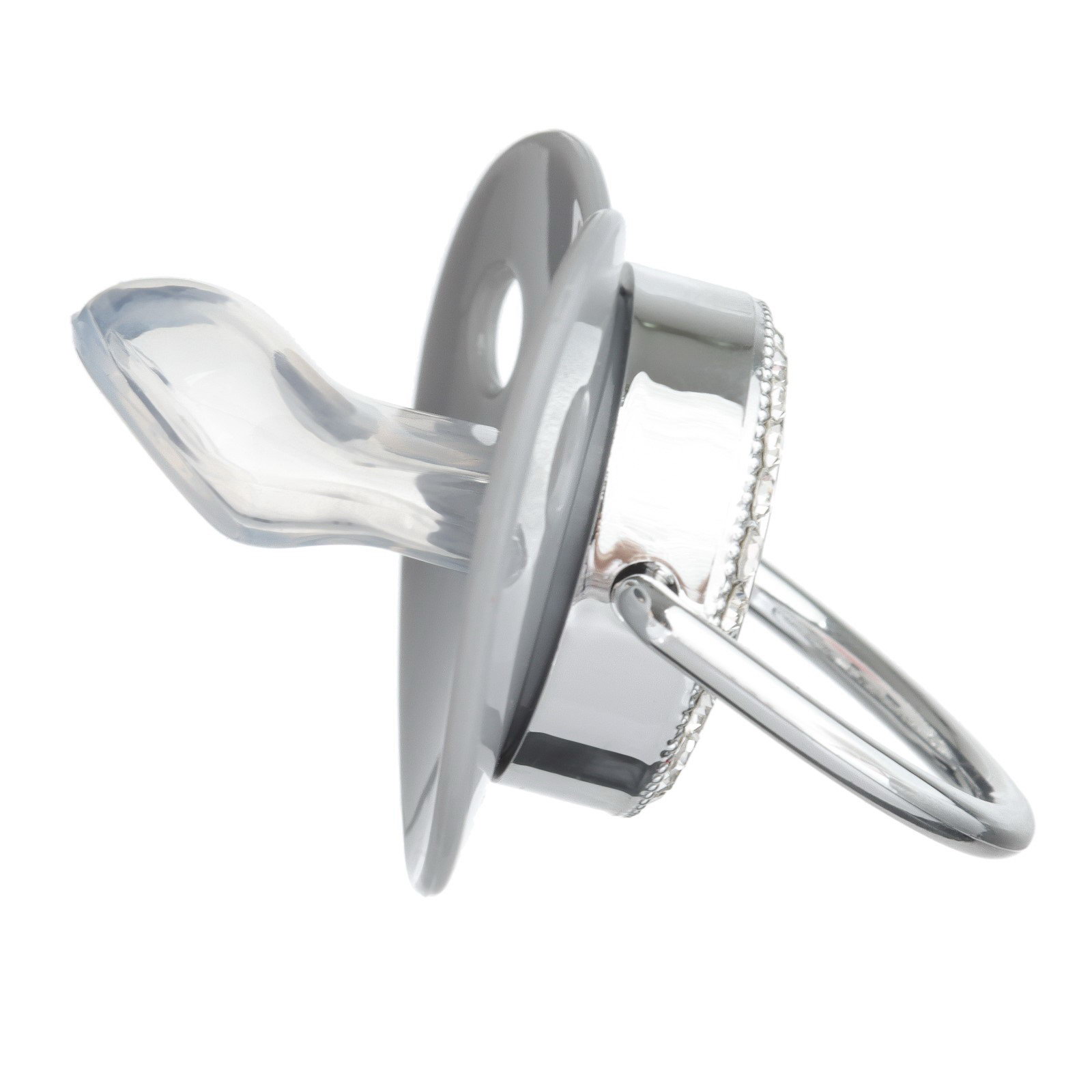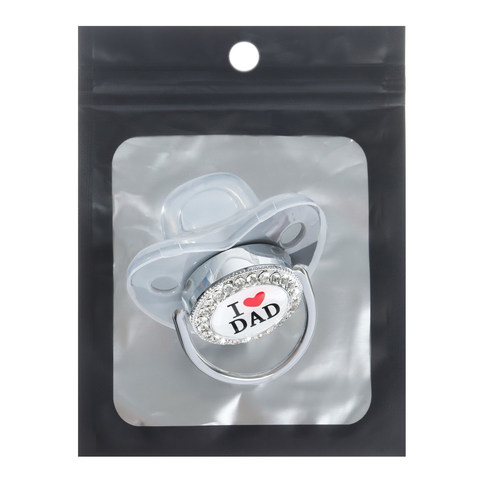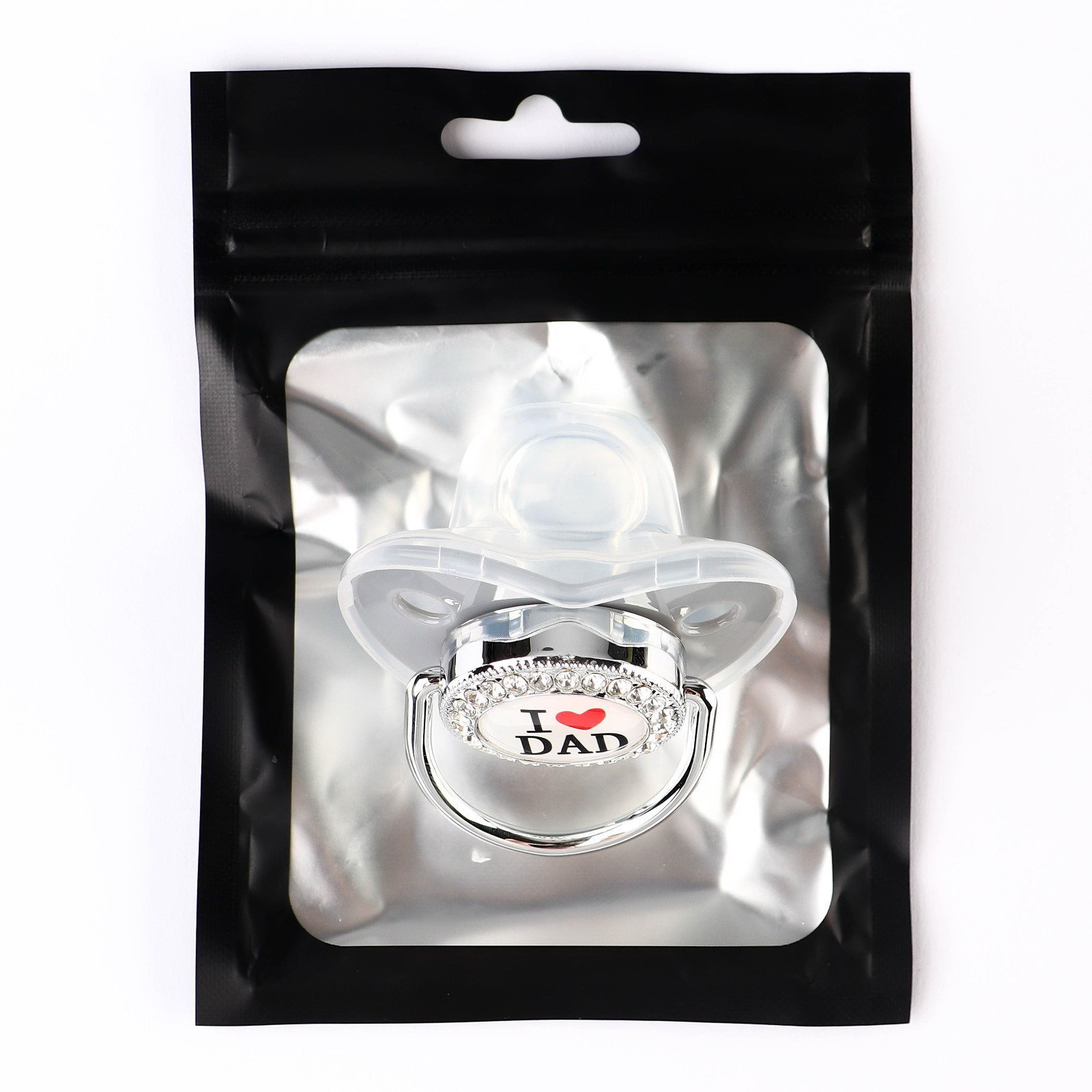 Соска - пустышка силиконовая ортодонтическая M&B "I LOVE DAD", от 6 мес., с колпачком, серый/серебро, стразы, 5x6x6 см., Mum&Baby, Китай