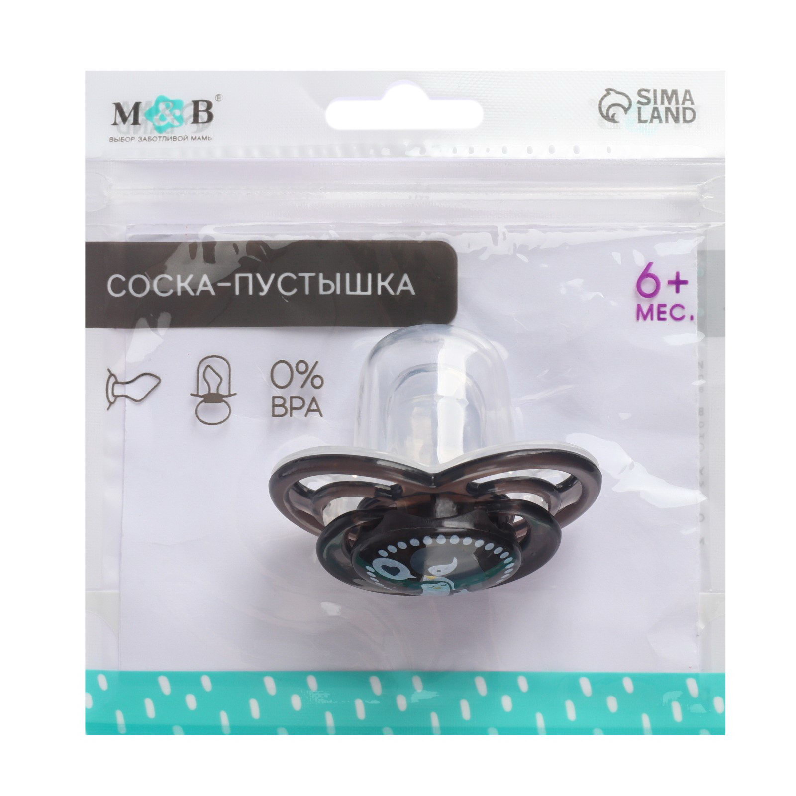 Соска - пустышка силиконовая ортодонтическая M&B "Пингвинчик", от 6 мес., с колпачком, черный, 4x7x5 см., Mum&Baby, Китай
