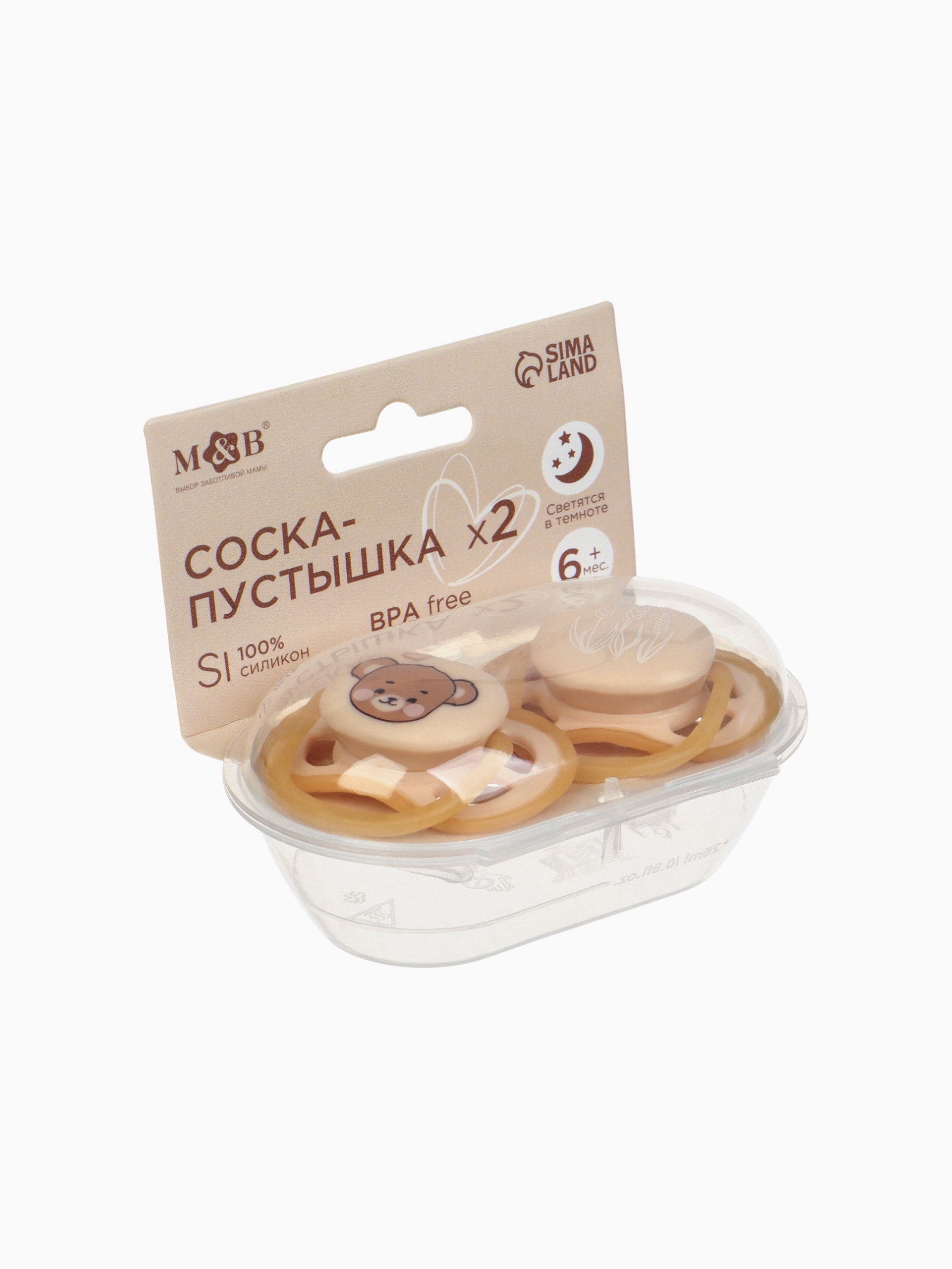 Соска-пустышка светящиеся, набор из 2 шт., силикон, +6 мес., в контейнере "Dream", 13x13x5 см., Mum&Baby, Китай