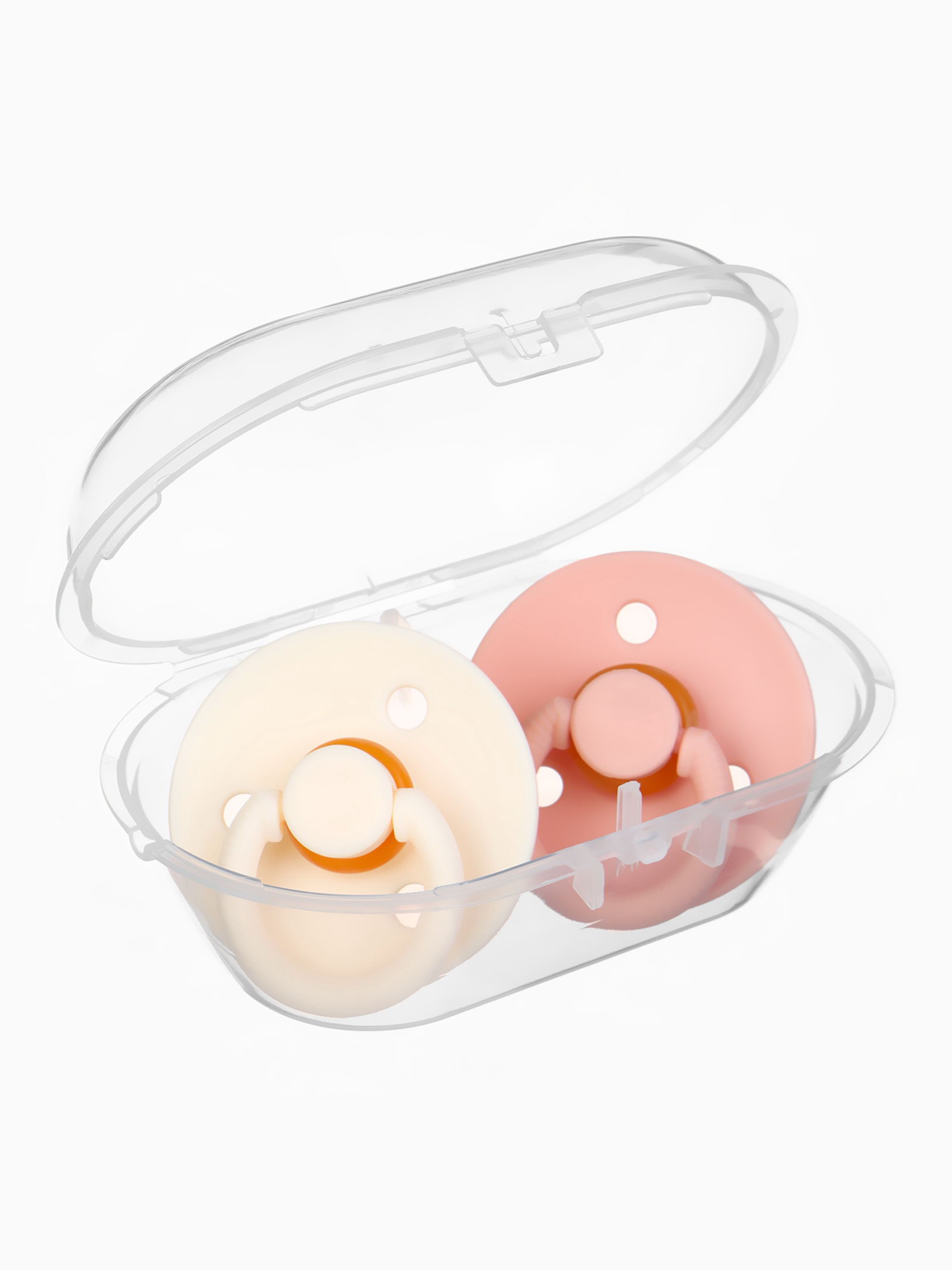 Соски-пустышки, от 0 мес., латекс, классические, в контейнере, набор из 2 шт., персиковый/айвори, M&B, 4.7x10.5x12.5 см., Mum&Baby, Китай