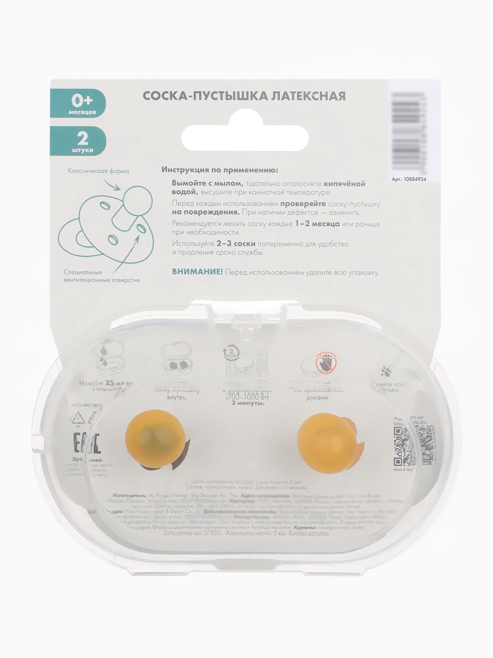 Соски-пустышки, от 0 мес., латекс, классические, в контейнере, набор из 2 шт., айвори/серо-зелёный, M&B, 4.7x10.5x12.5 см., Mum&Baby, Китай