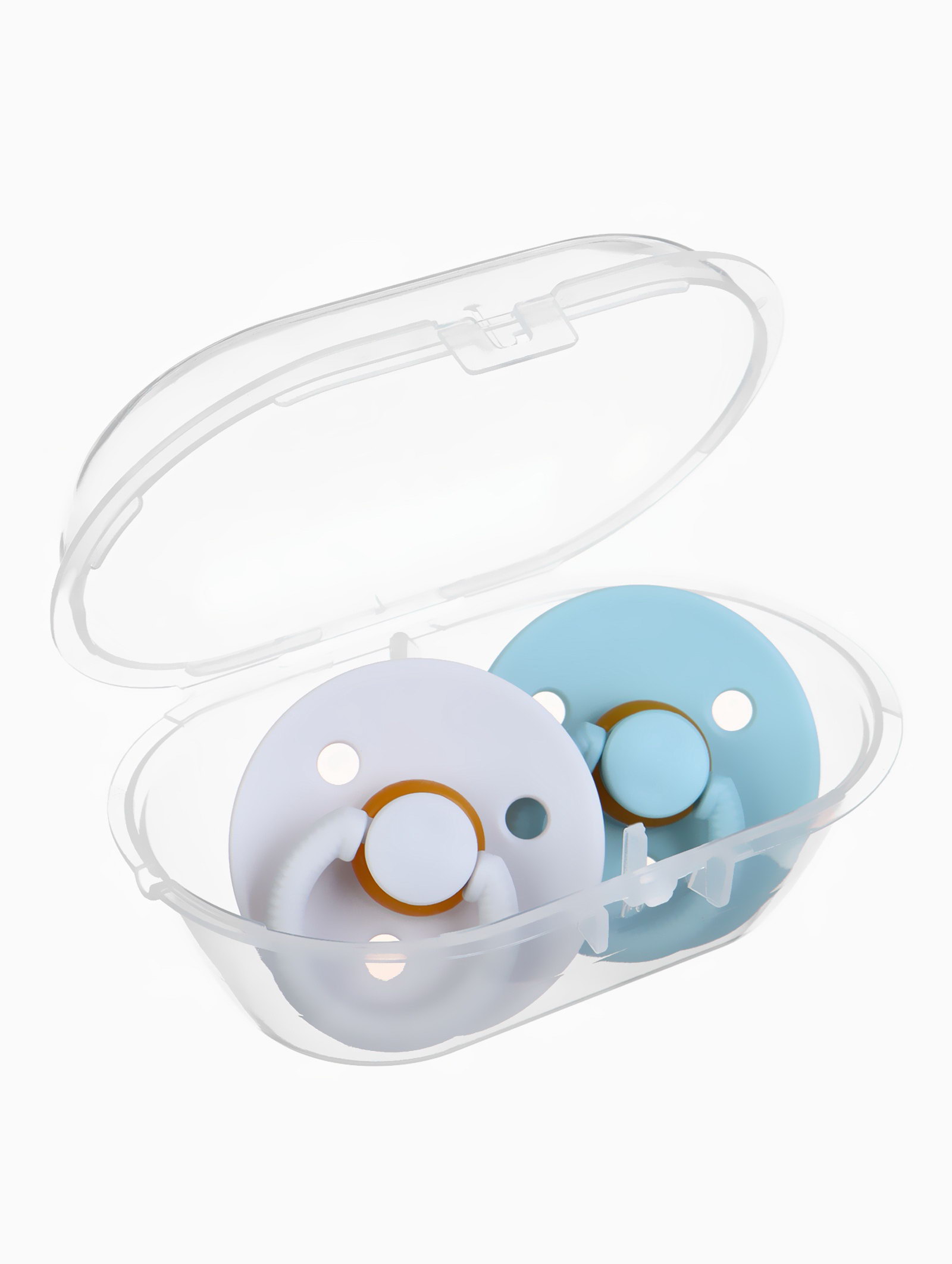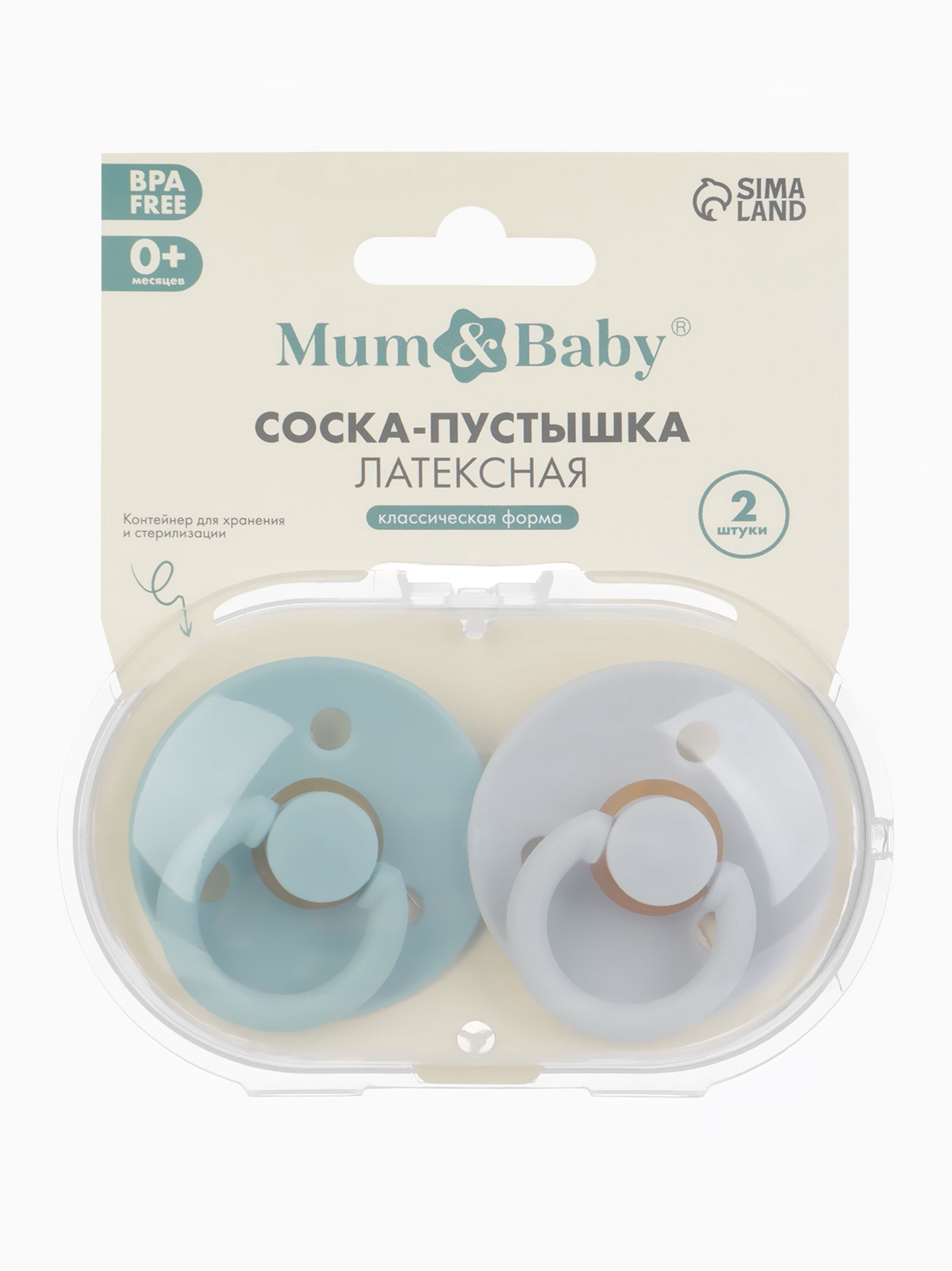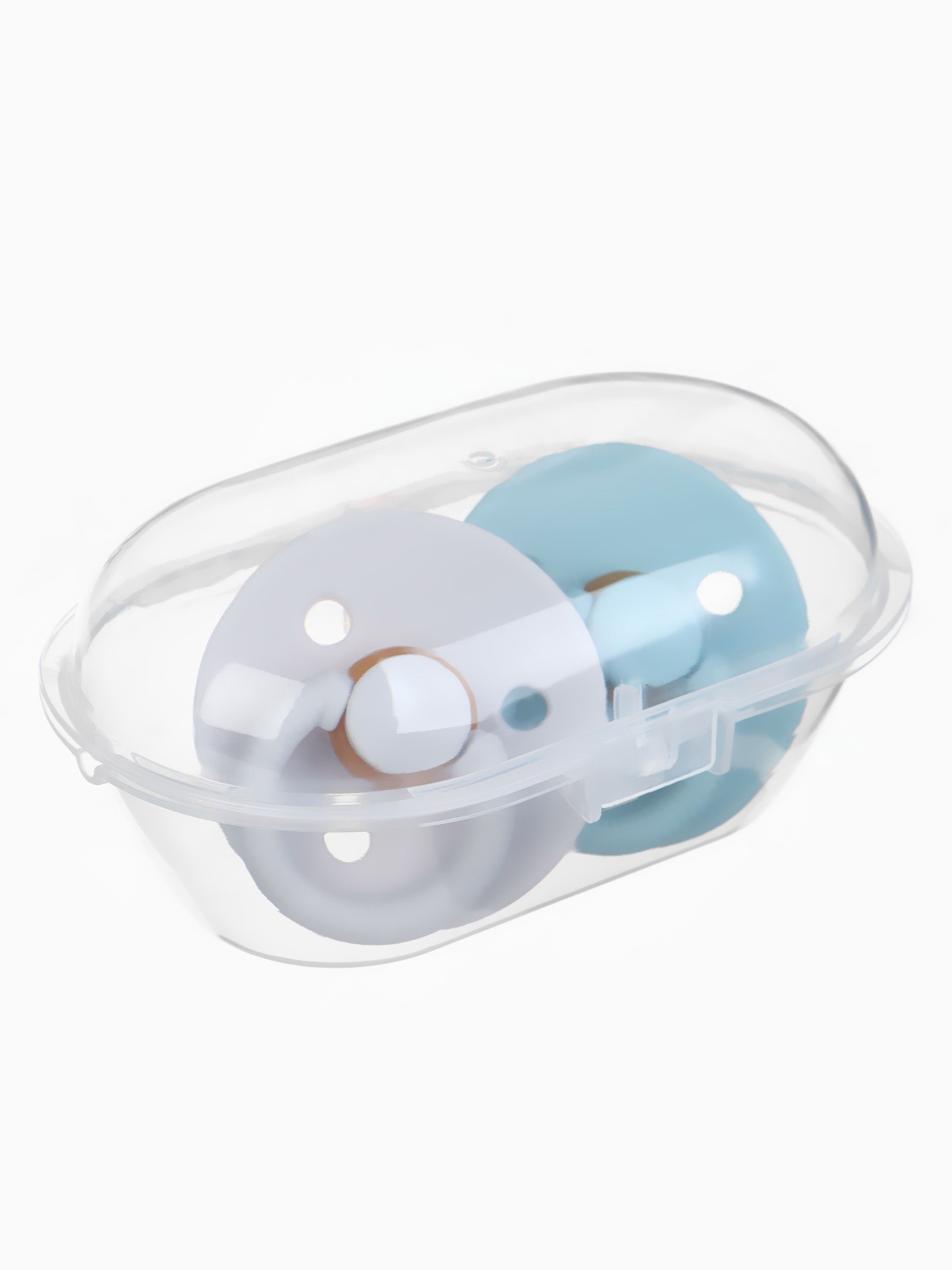 Соски-пустышки, от 0 мес., латекс, классические, в контейнере, набор из 2 шт., серо-синий/серый, M&B, 4.7x10.5x12.5 см., Mum&Baby, Китай