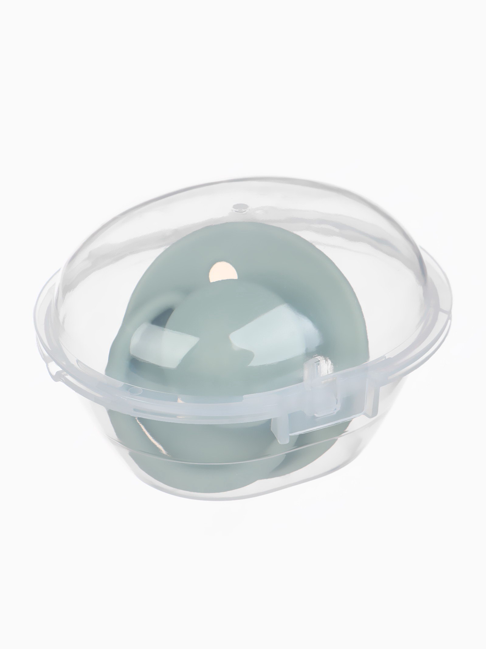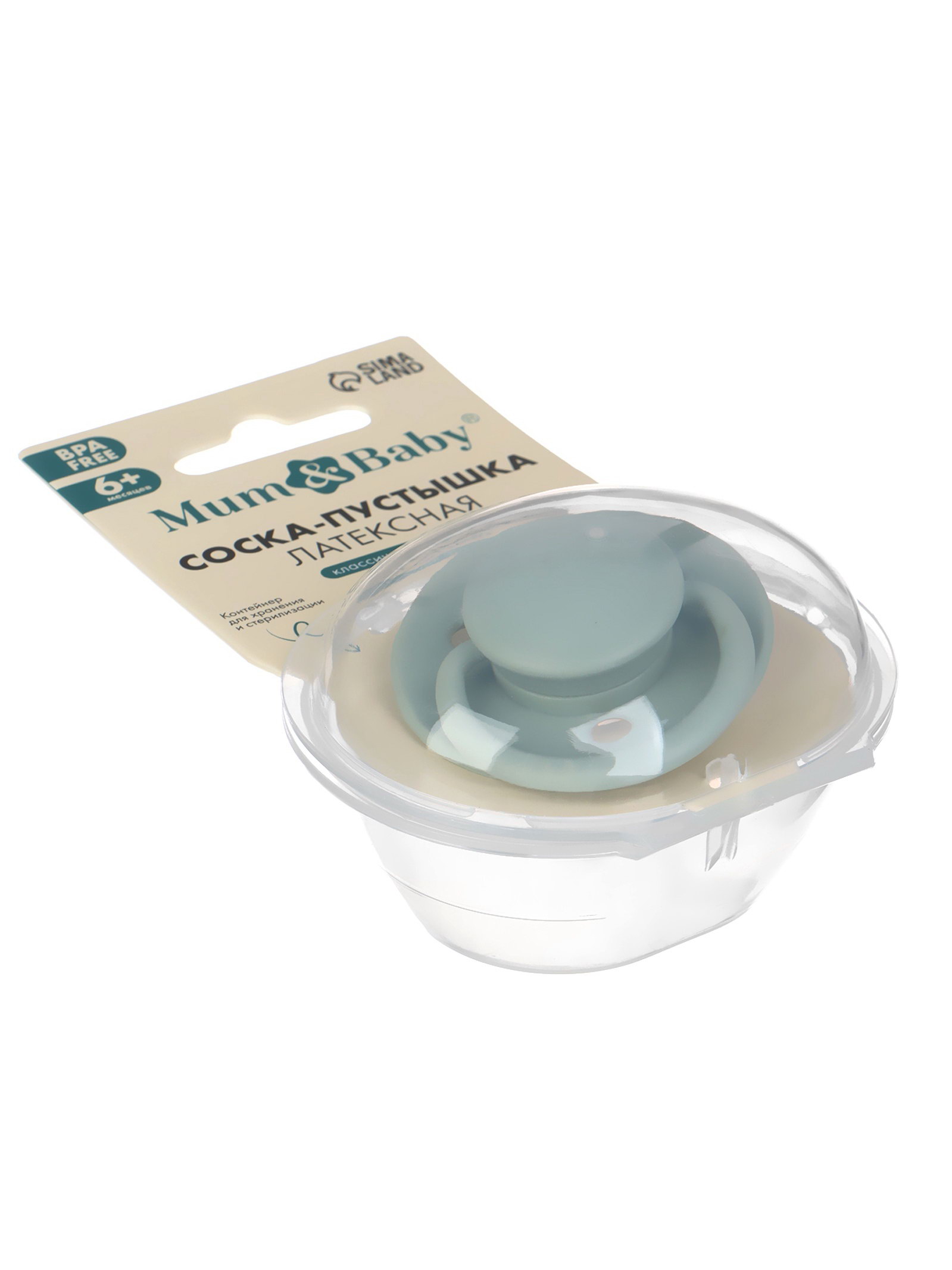 Соска-пустышка, от 6 мес., латекс, классическая, в контейнере, серо-зелёная, M&B, 4.7x8.5x12.5 см., Mum&Baby, Китай