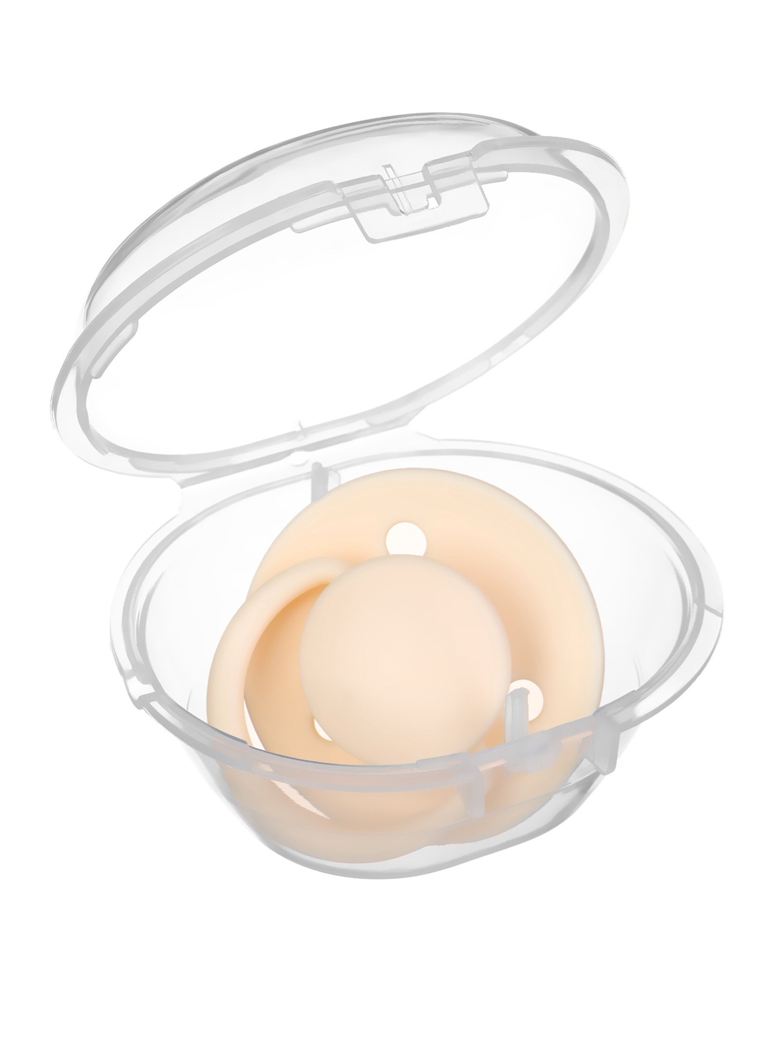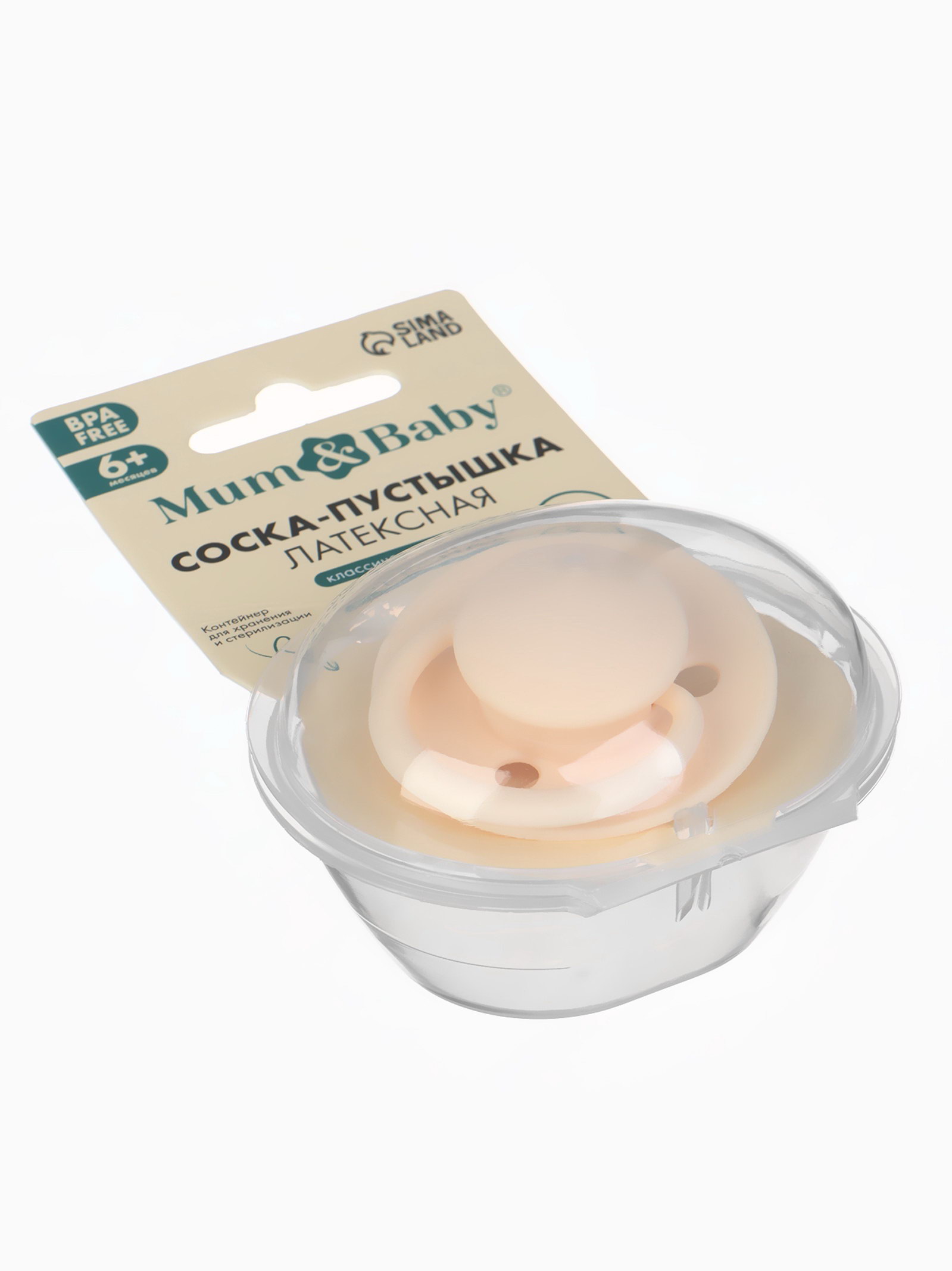 Соска-пустышка, от 6 мес., латекс, классическая, в контейнере, айвори, M&B, 4.7x8.5x12.5 см., Mum&Baby, Китай