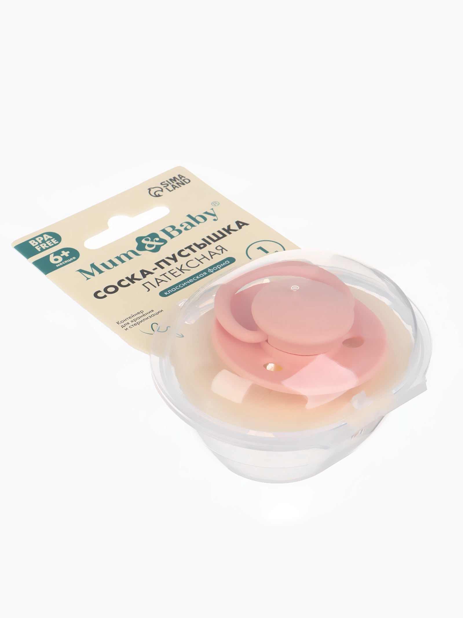 Соска-пустышка, от 6 мес., латекс, классическая, в контейнере, персиковый, M&B, 4.7x8.5x12.5 см., Mum&Baby, Китай
