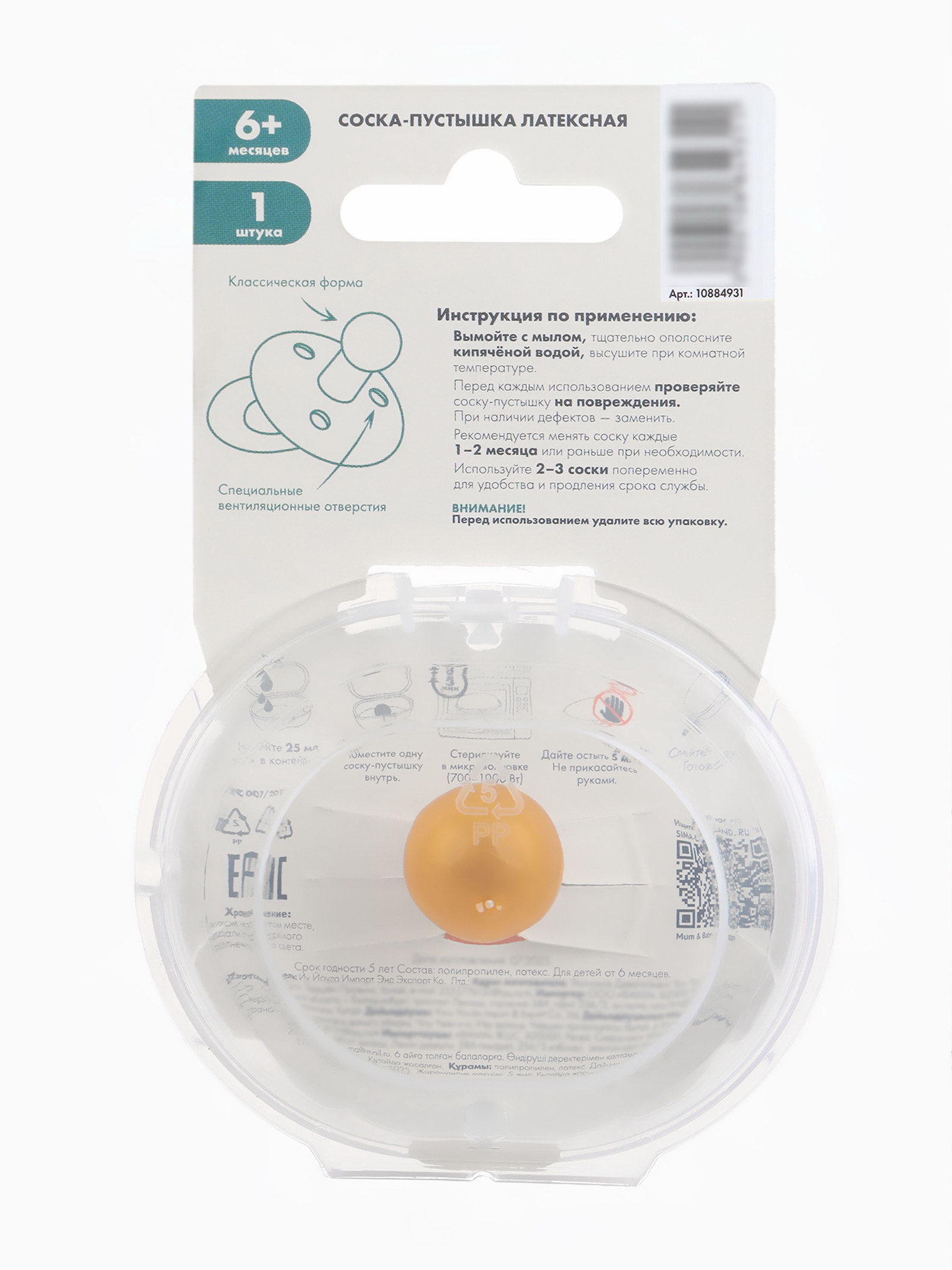 Возраст: Детский, От 0 месяцев Размер упаковки: 8 x 5 x 13 см. tnved: 3926909700 Материал соски: Латекс Набор: Нет Цвет: Бежевый С держателем: Да Форма соски: Классическая С колпачком: Нет Особенность пустышки: Без особенностей Форма нагубника: Круглый Обеспечьте комфорт и безопасность своему малышу с современной соской-пустышкой, которая сочетает удобство, гигиену и функциональность. Уникальная конструкция включает прозрачный индивидуальный контейнер, идеально подходящий для хранения и стерилизации: он защитит пустышку от загрязнений и обеспечит гигиеничное использование в дороге или путешествиях. Преимущества: