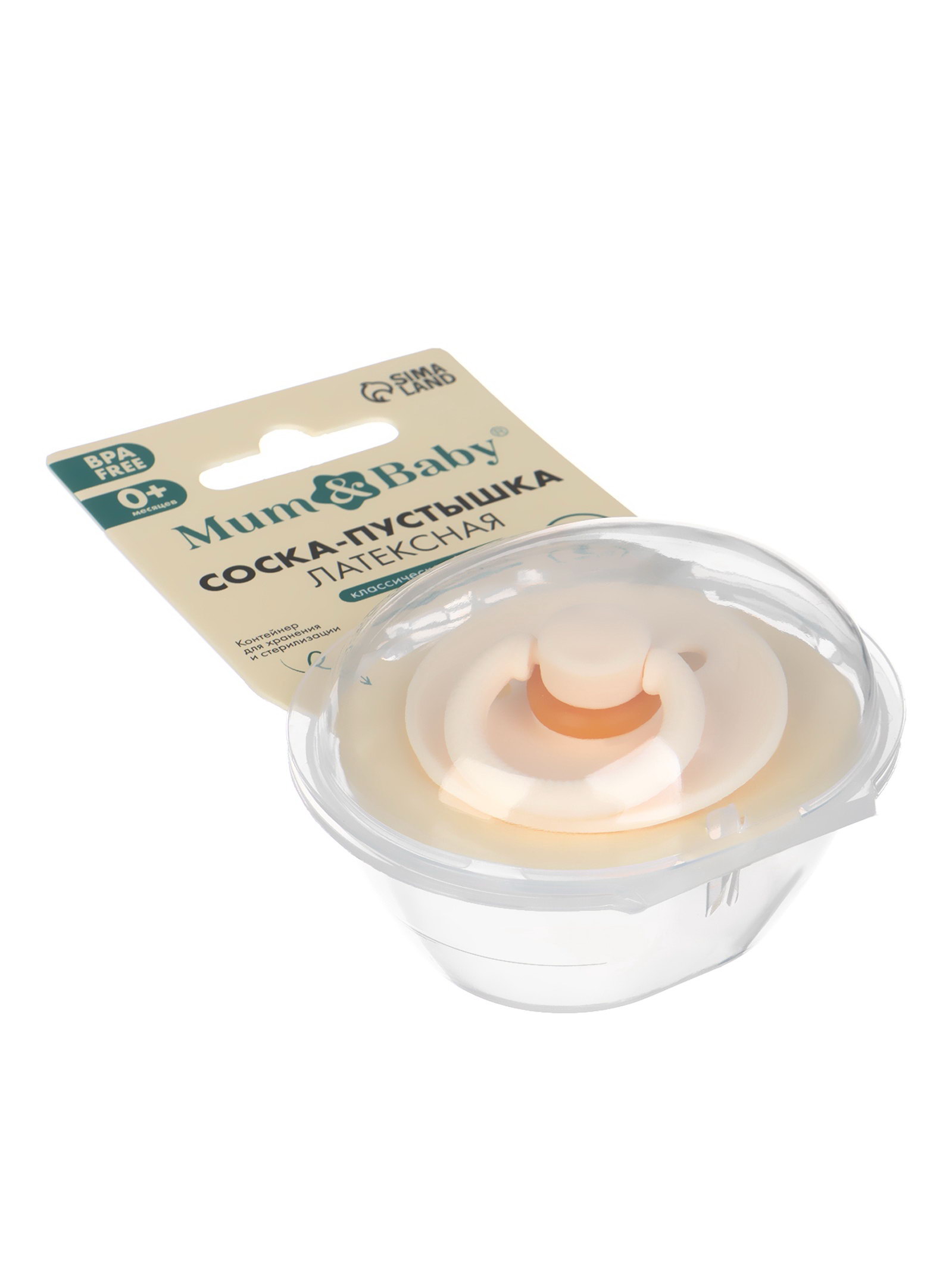 Соска-пустышка, от 0 мес., латекс, классическая, в контейнере, айвори, M&B, 4.7x8.5x12.5 см., Mum&Baby, Китай
