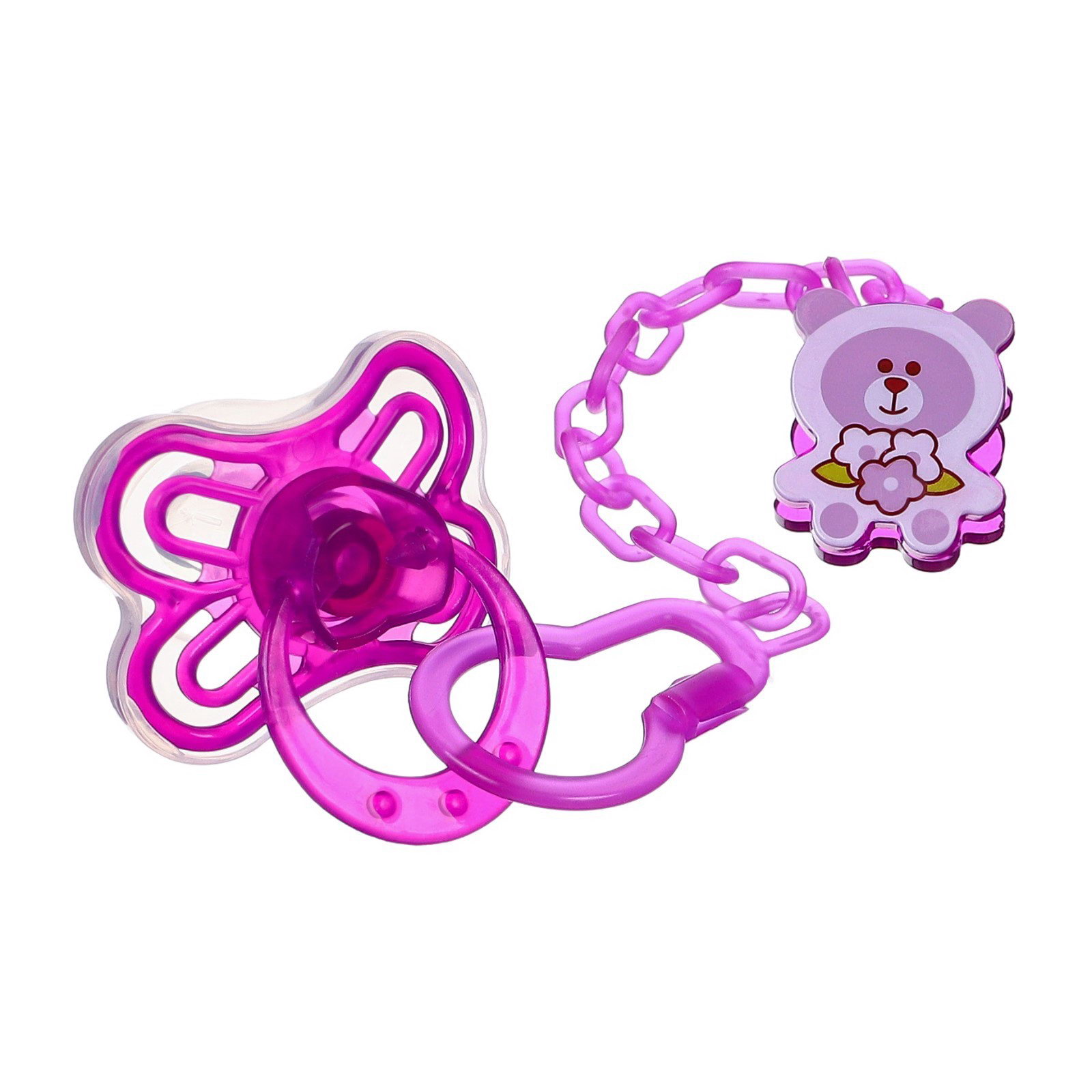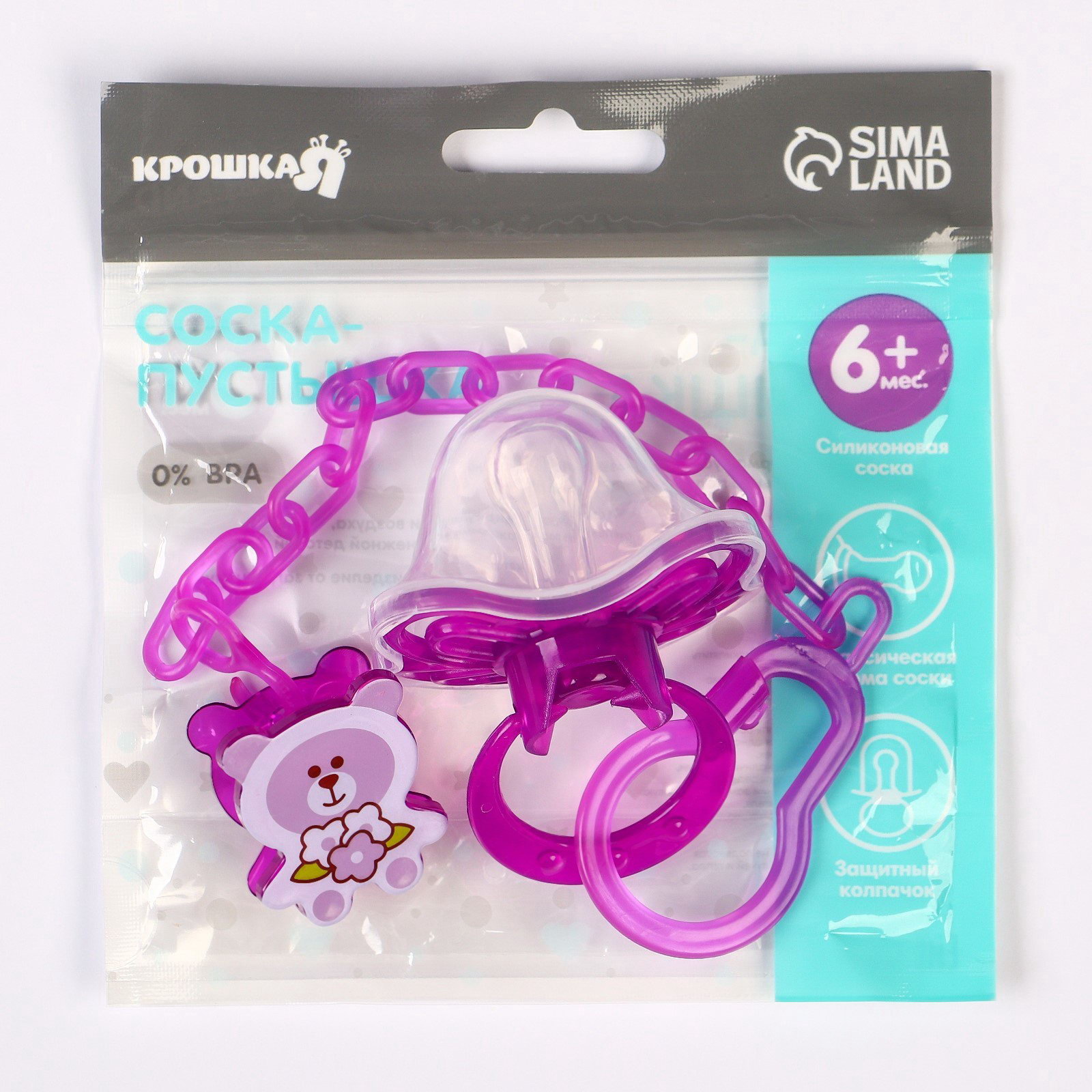 Набор Соска - пустышка с держателем, SL, КЛ +6 мес., с колпачком "Бабочка", фиолетовый, Крошка Я, Китай