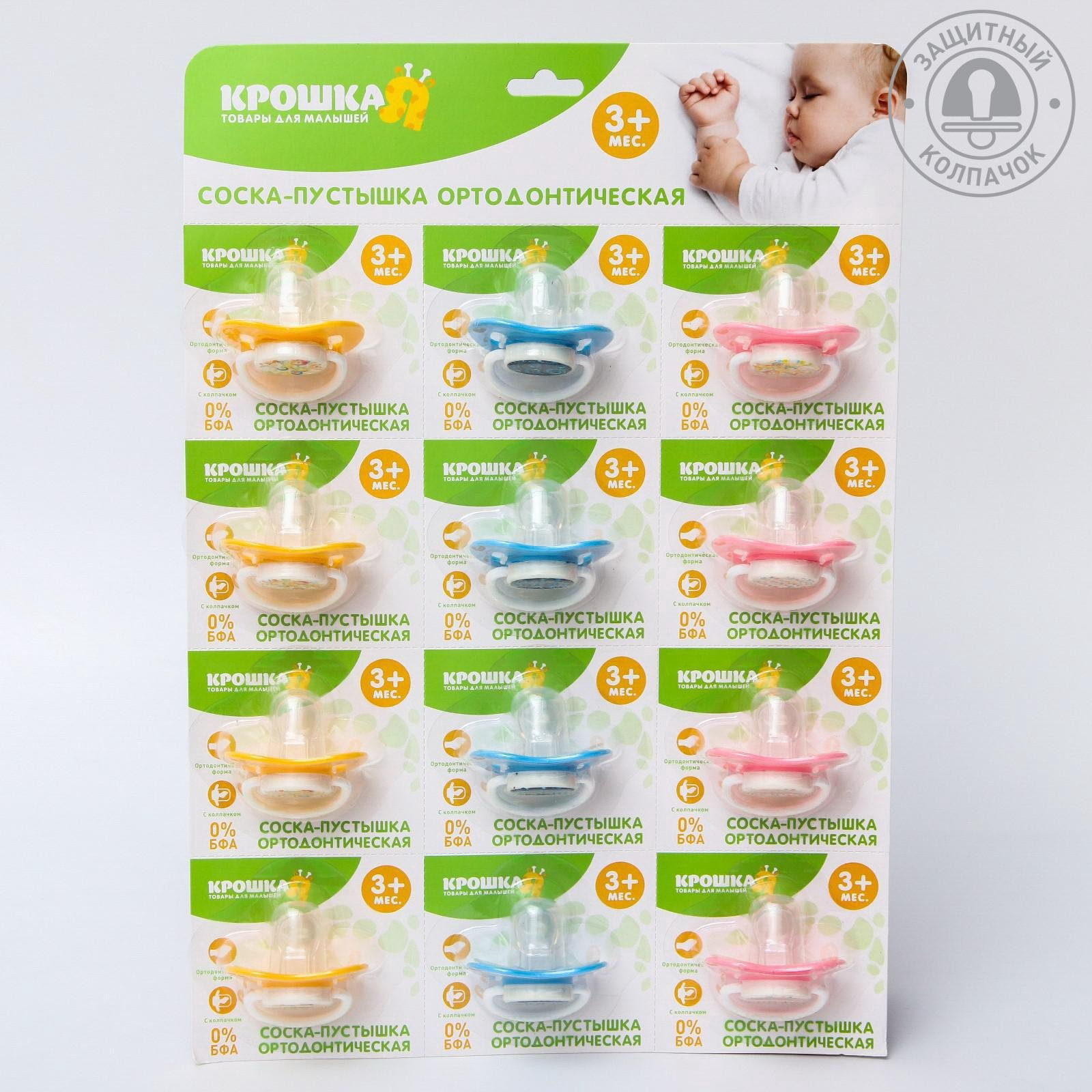 Пустышка ортодонтическая, с колпачком, от 3 мес., цвет МИКС, Крошка Я, Китай