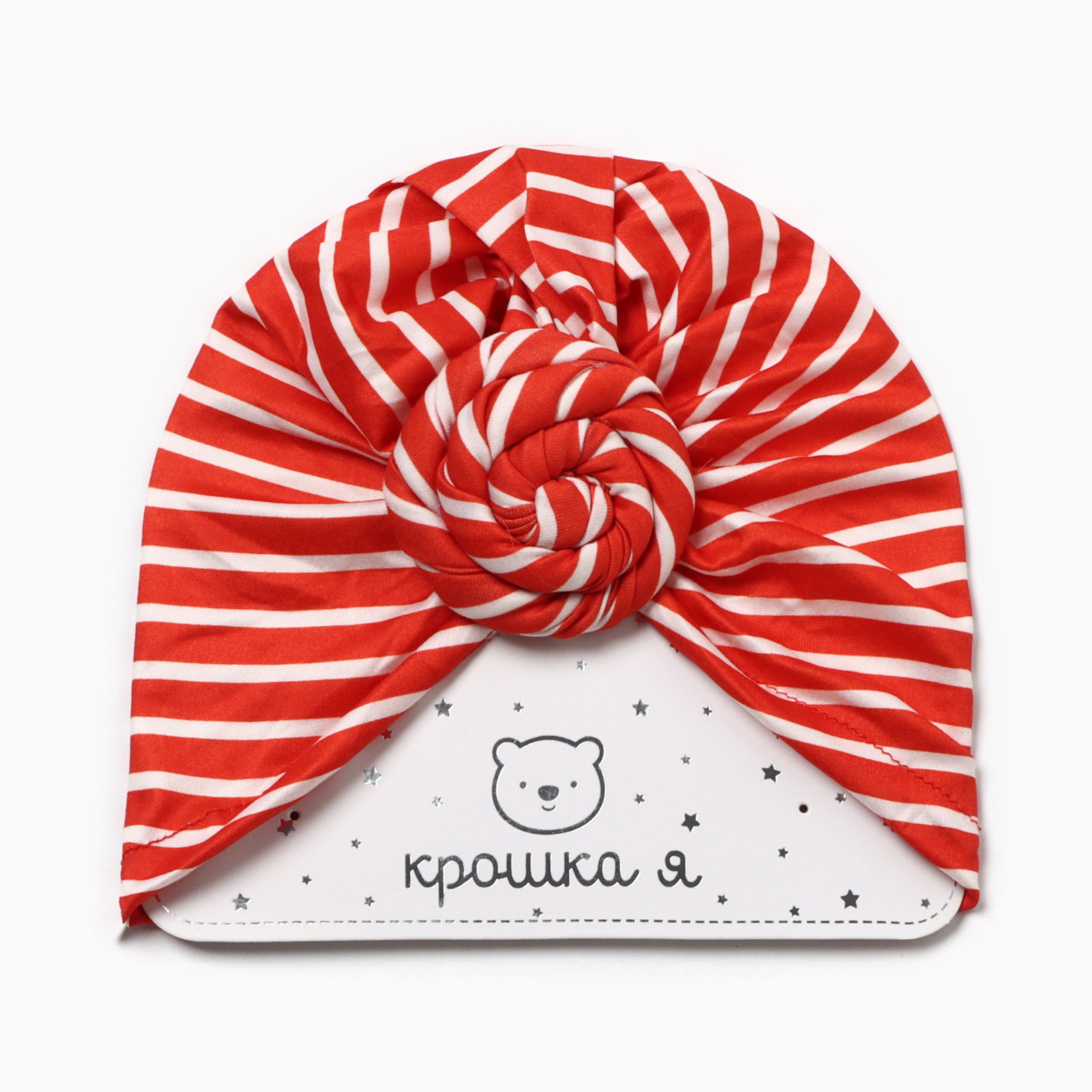 Шапка для девочки"Крошка Я. Полоска", размер 48, красная, 17x18x2 см., Крошка Я, Китай