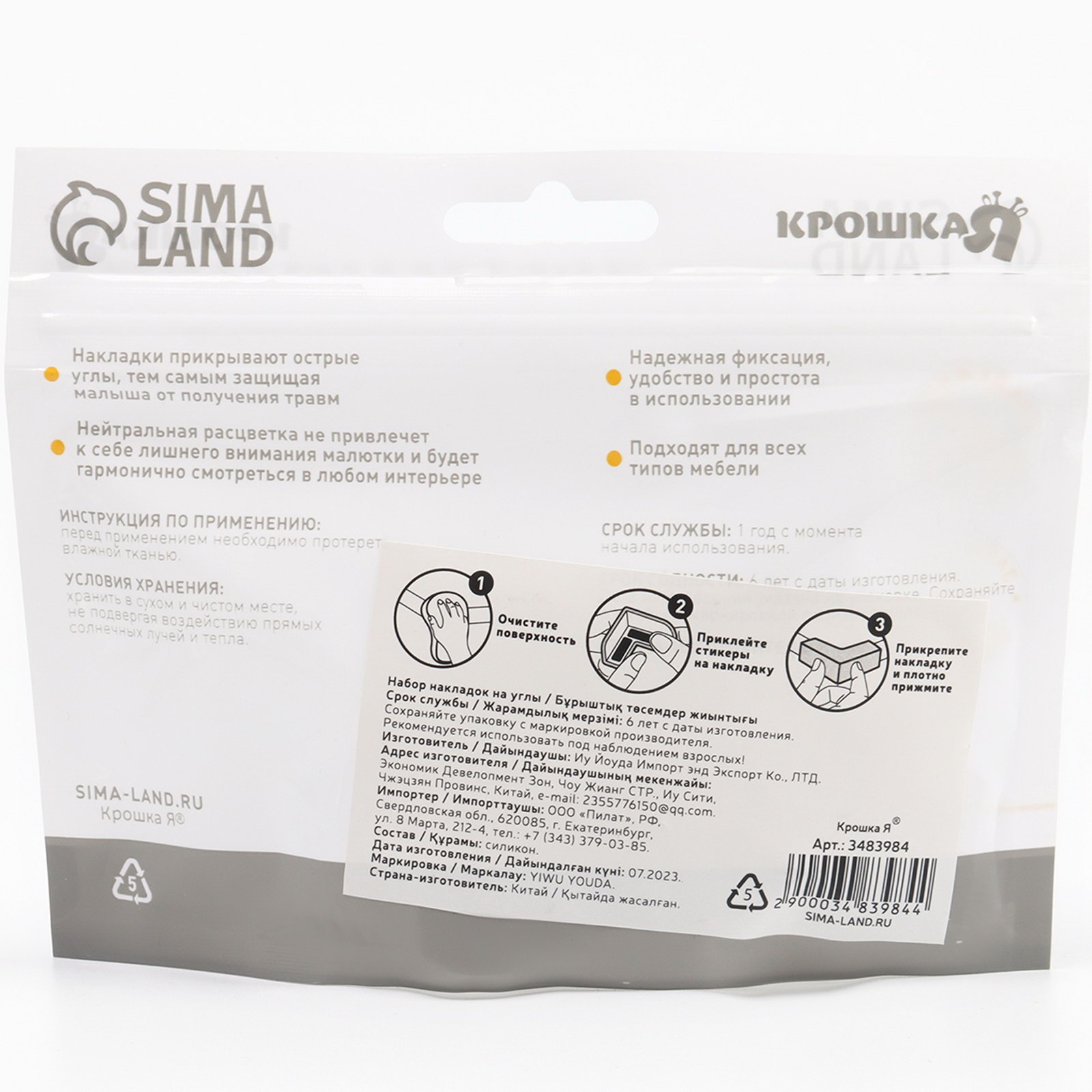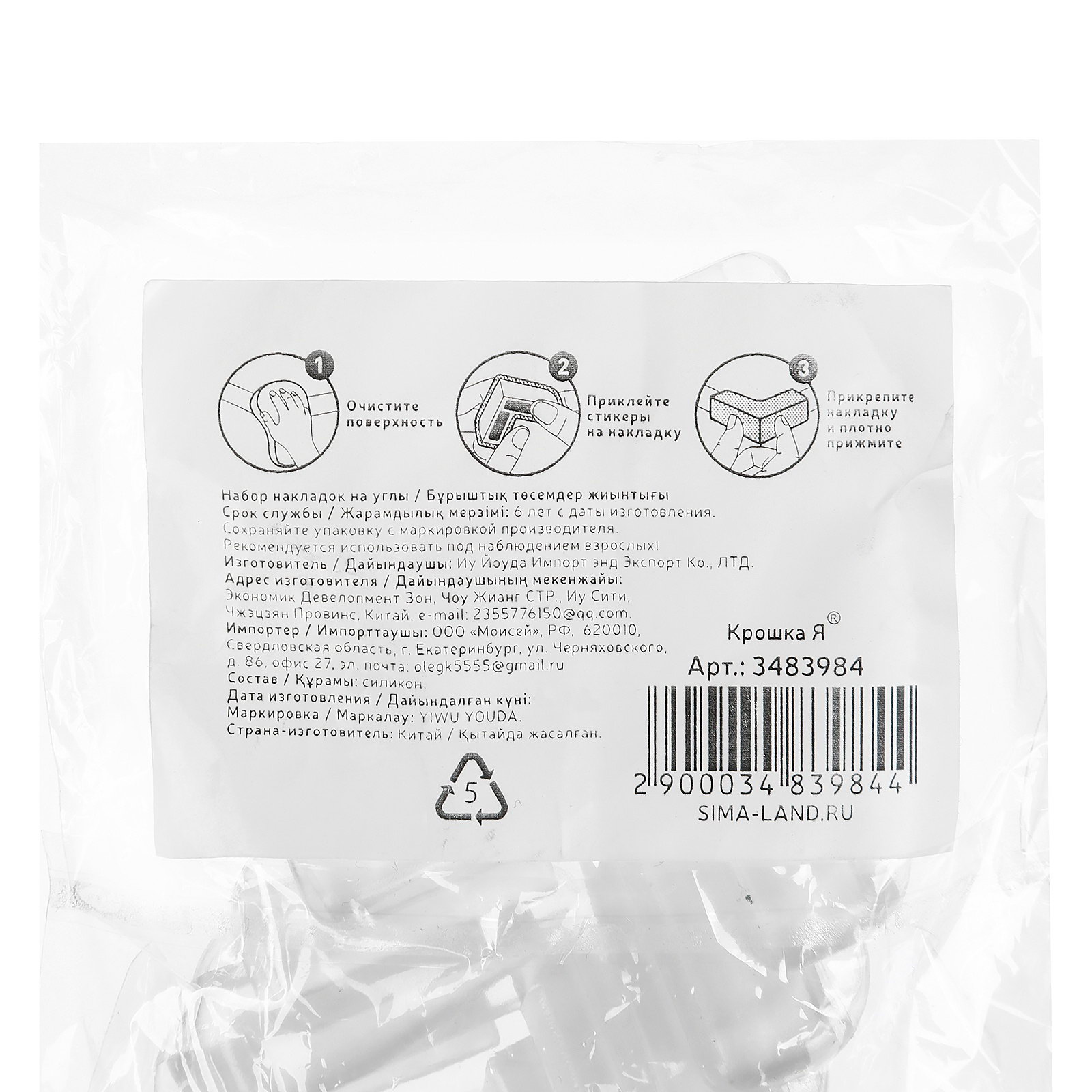 Защитные накладки на углы, набор 6 шт., 2.5x15x12 см., Крошка Я, Китай