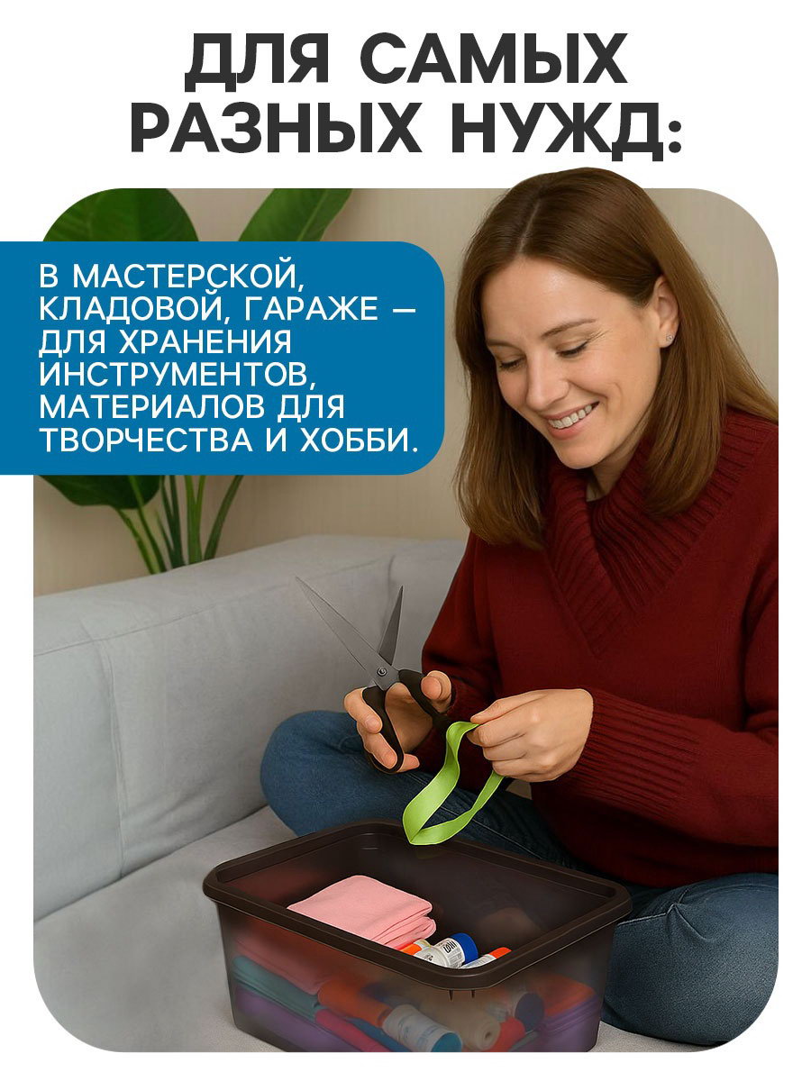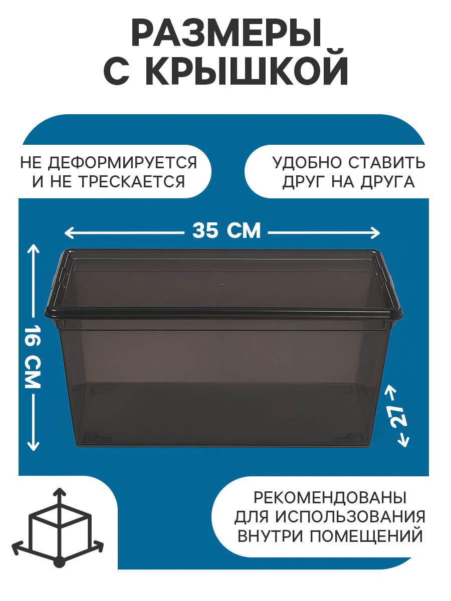 Ящик пластиковый для хранения, с крышкой, объём 10 л, прозрачно-чёрный, 10000 мл., Соломон, Россия