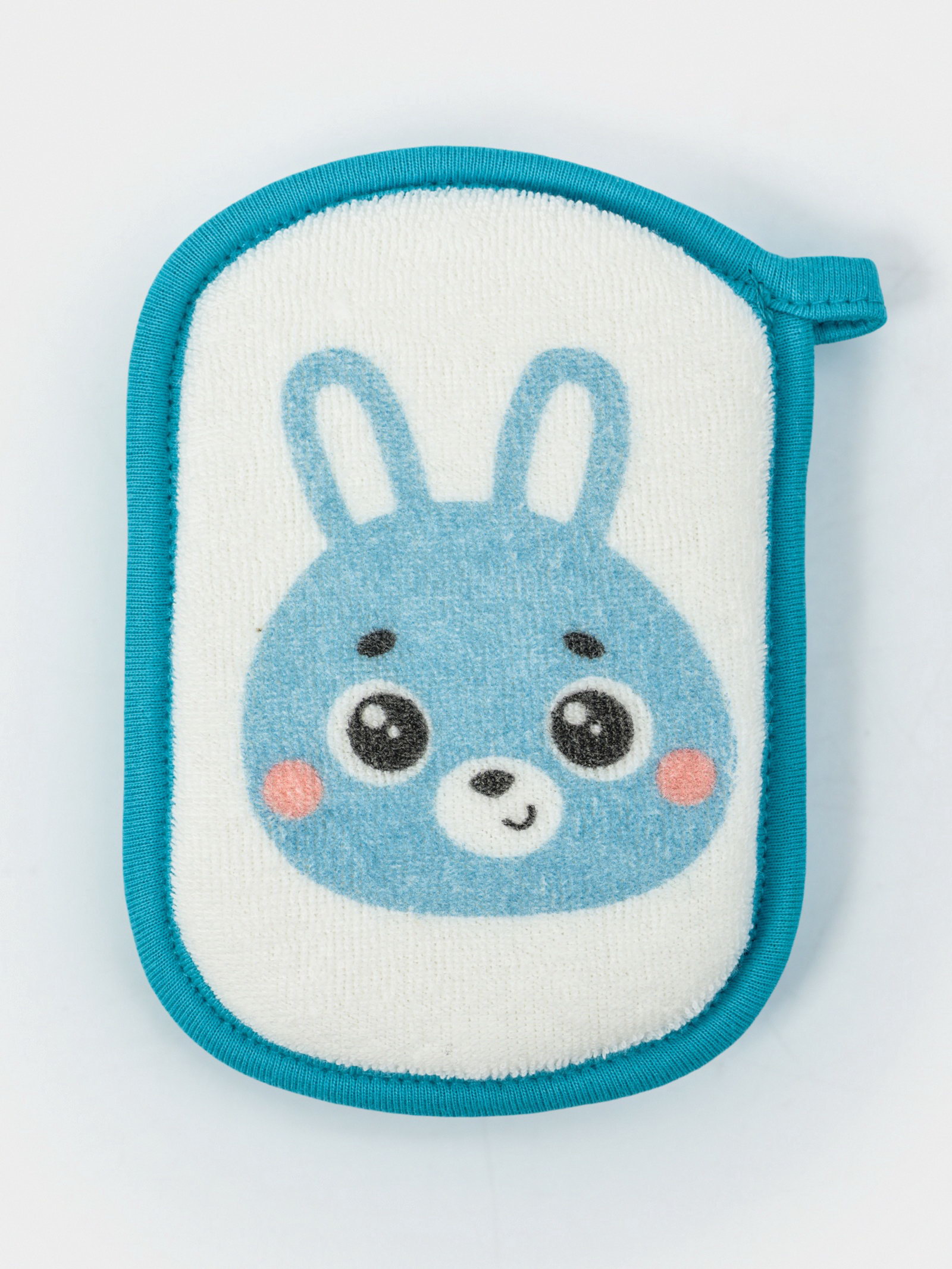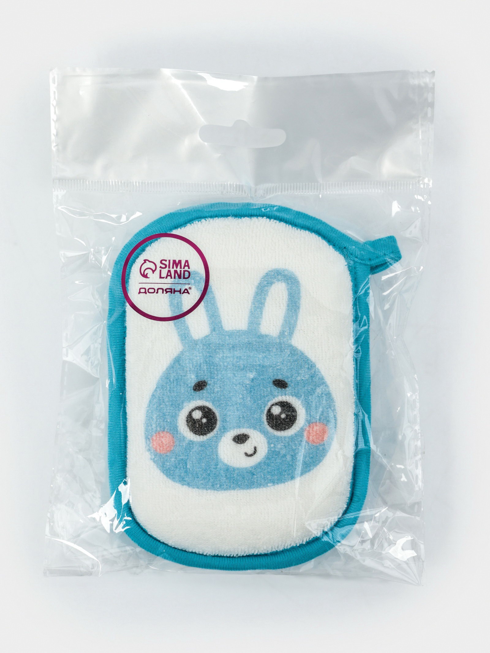Мочалка детская для купания "Зайчик", 12x8 см, голубая, 8x11x1 см., Доляна, Китай