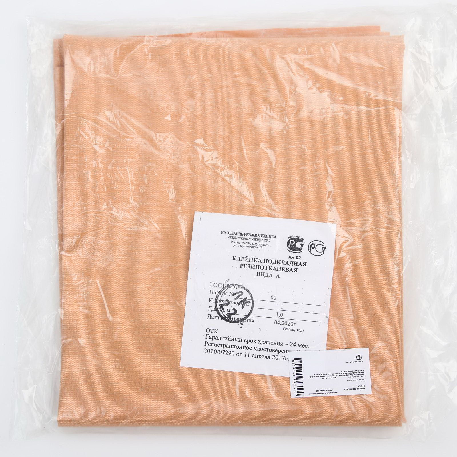 Клеенка подкладная 80х100см., резинотканевая, Россия