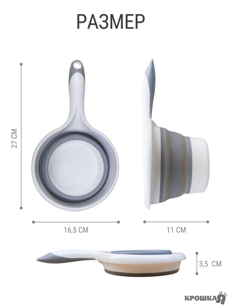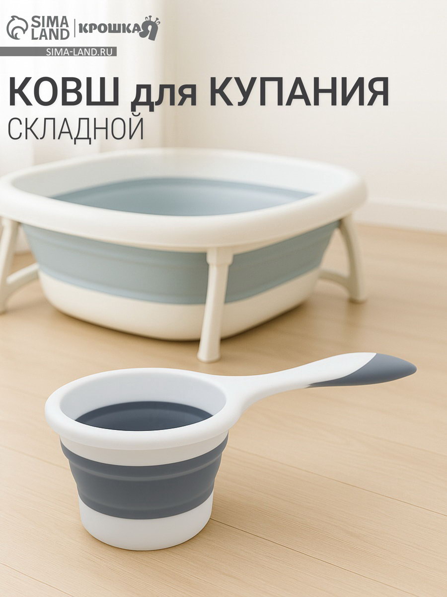 Ковшик для купания детский, складной, 1 л, цв. белый/серый, 16.5x27x11 см., Крошка Я, Китай