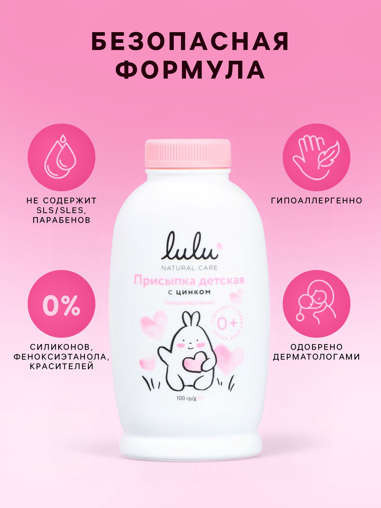 Присыпка детская с цинком, 100 г, lulu, Россия