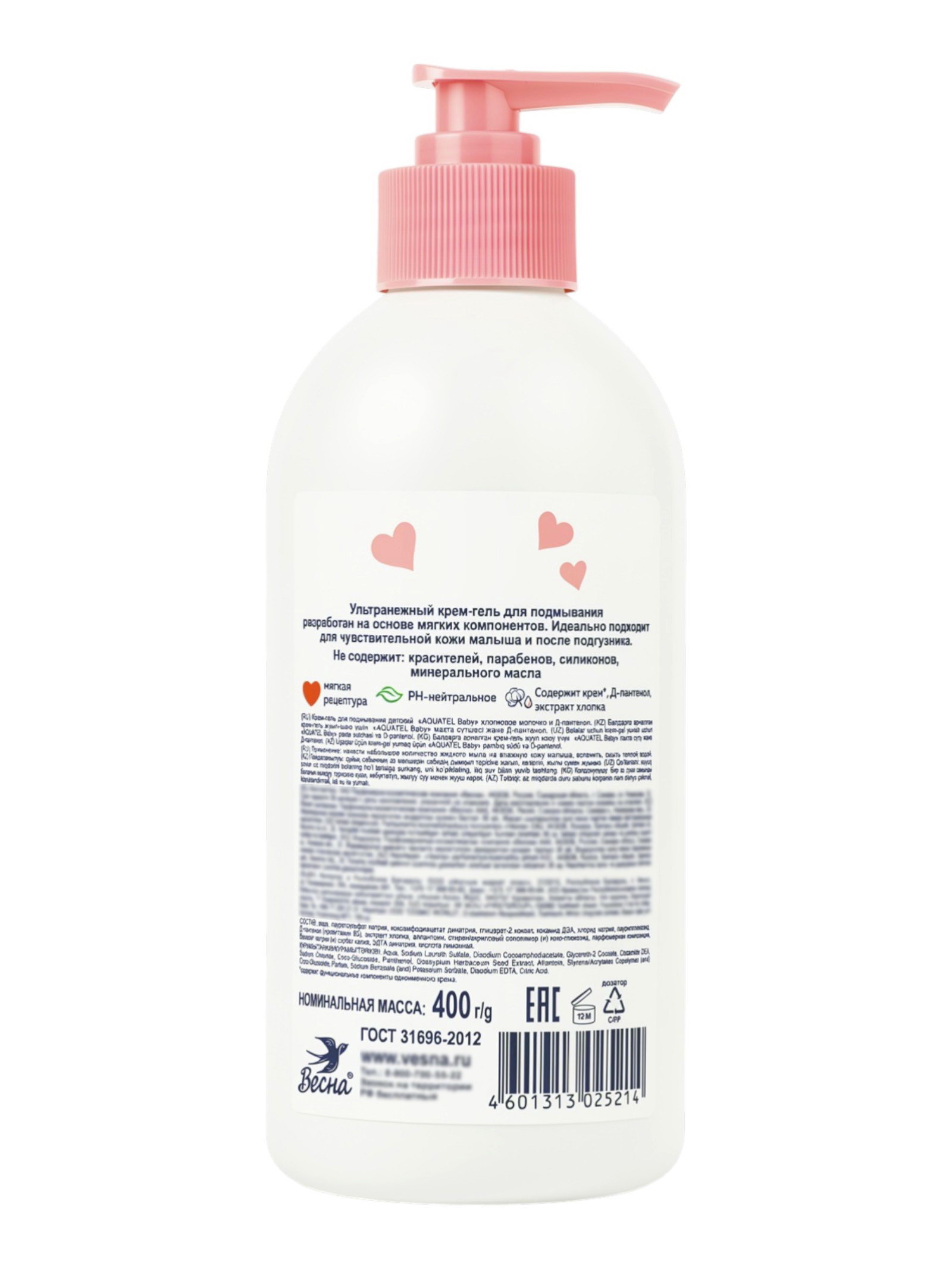 Крем-гель для подмывания Baby хлопковое молочко и пантенол, 400 мл, 400 мл., Aquatel, Россия