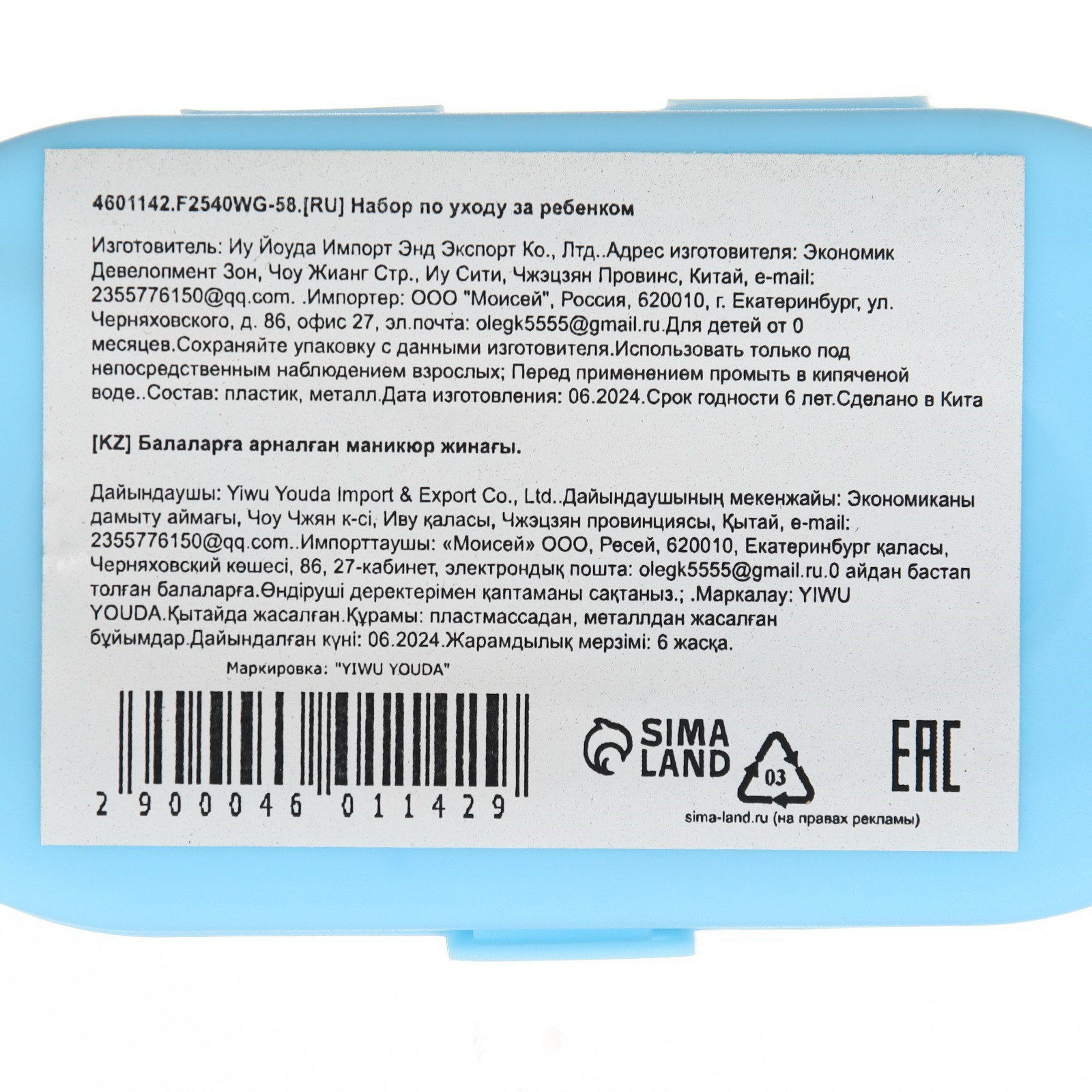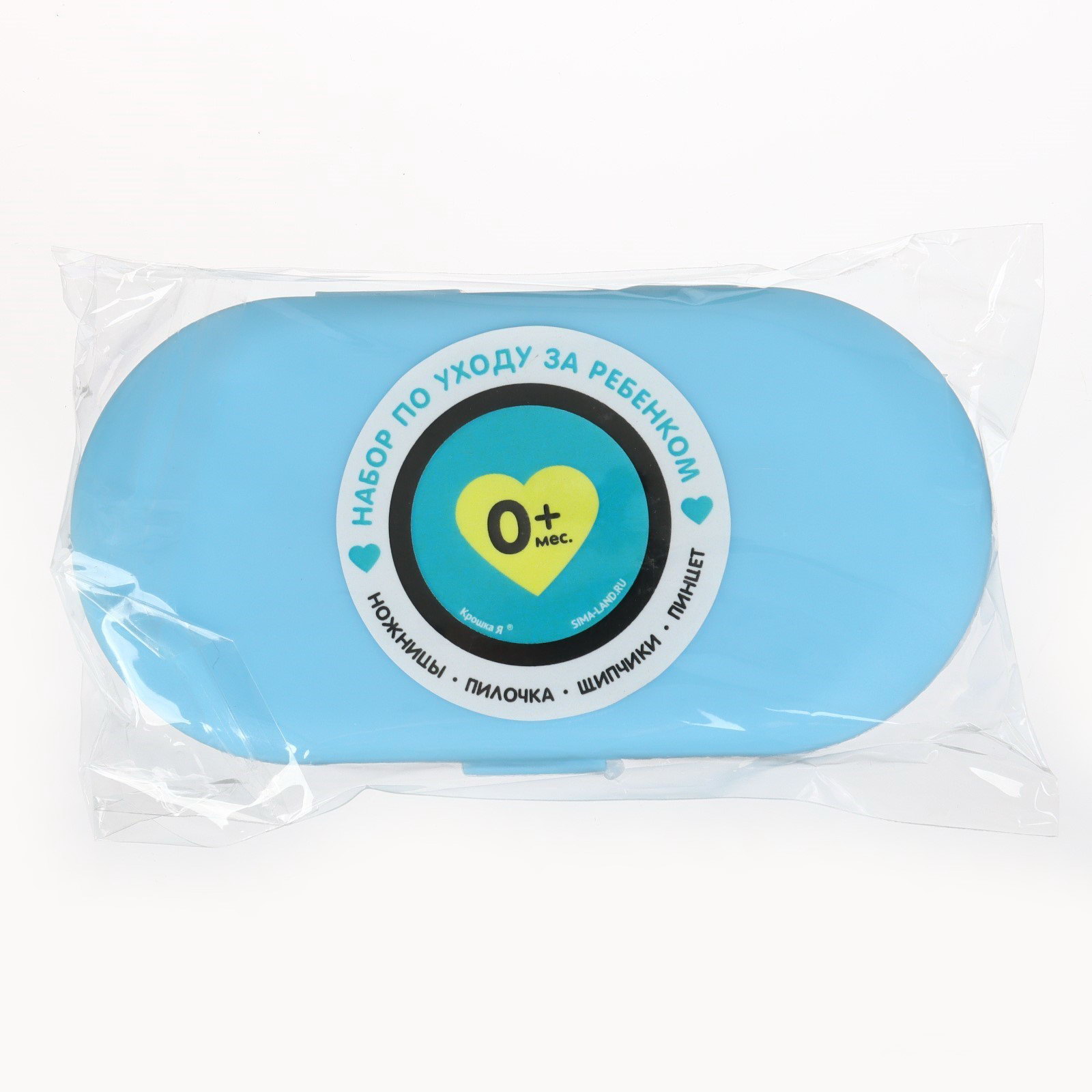 Детский маникюрный набор: ножницы, книпсер, пилка, пинцет, голубой, 6x12x2 см., Крошка Я, Китай