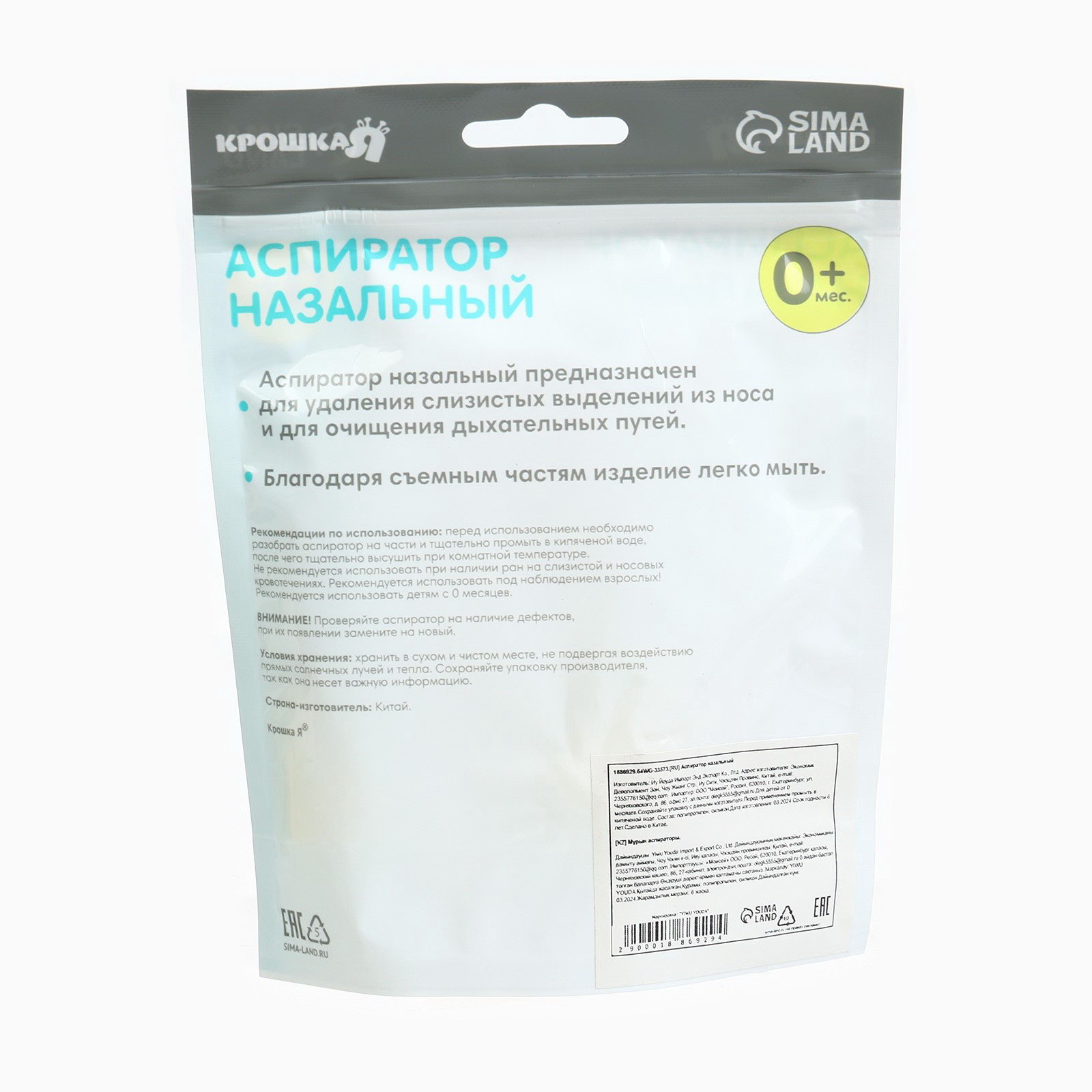 Детский назальный аспиратор, с отводной трубкой, желтый, 3x26x3 см., Крошка Я, Китай
