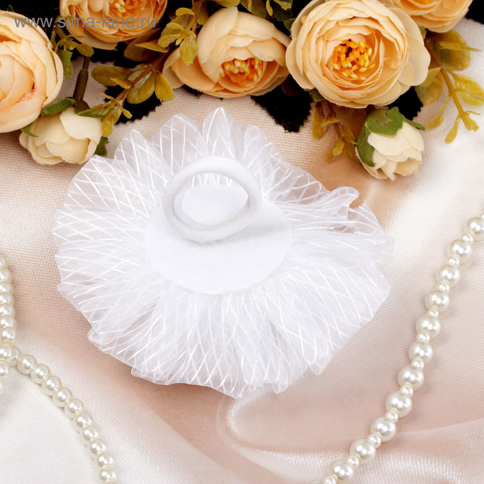 Бант для волос на резинке "Школьница", полосатик серединка, d=9 см, белый, 9 см., Китай