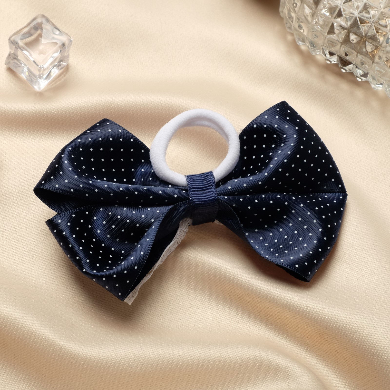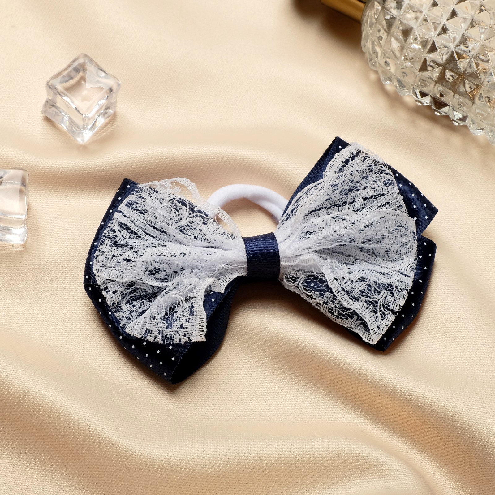 Бант для волос на резинке "Школьница", синий с кружевами, 5 см, синий, 5 см., Китай