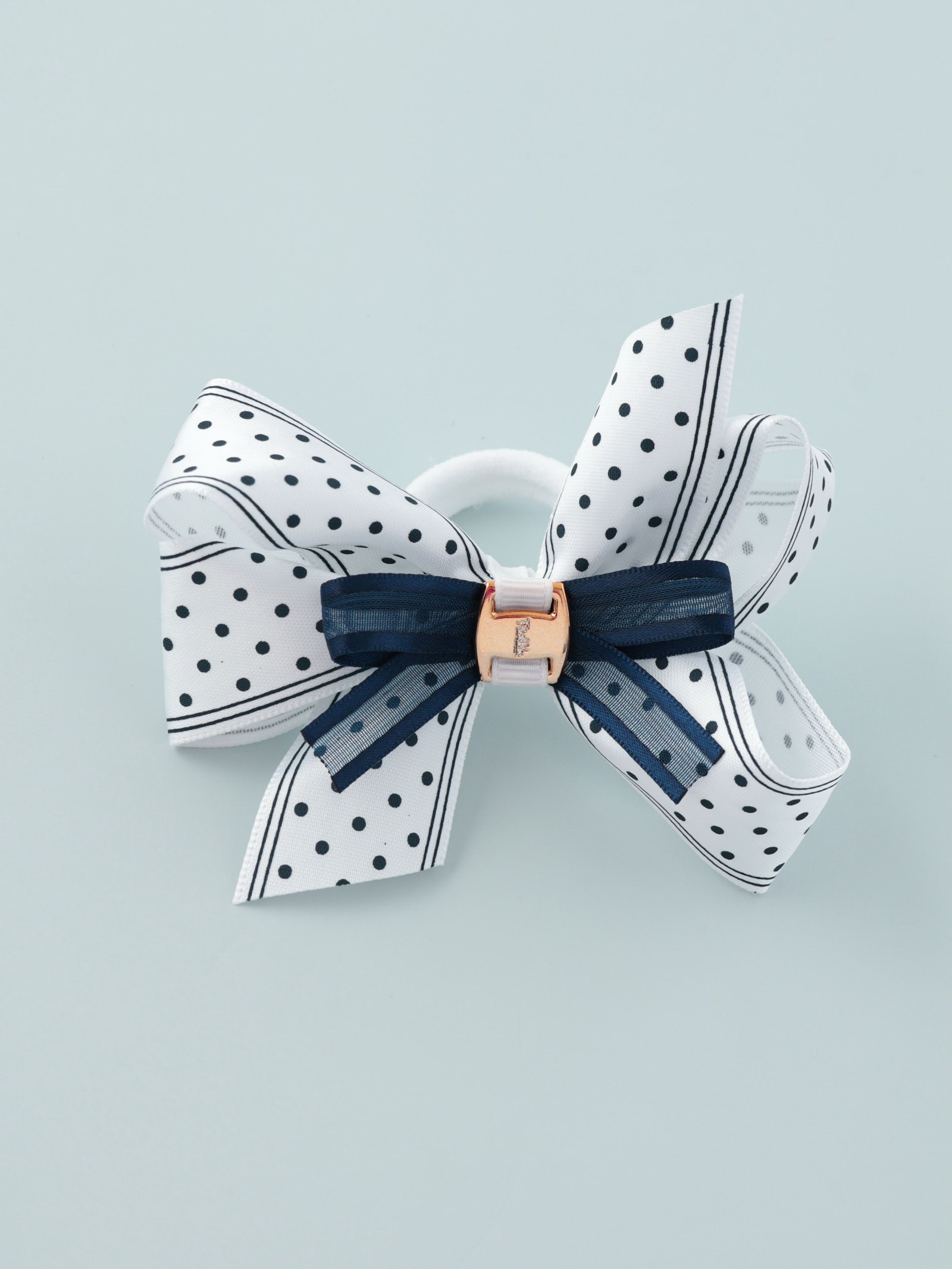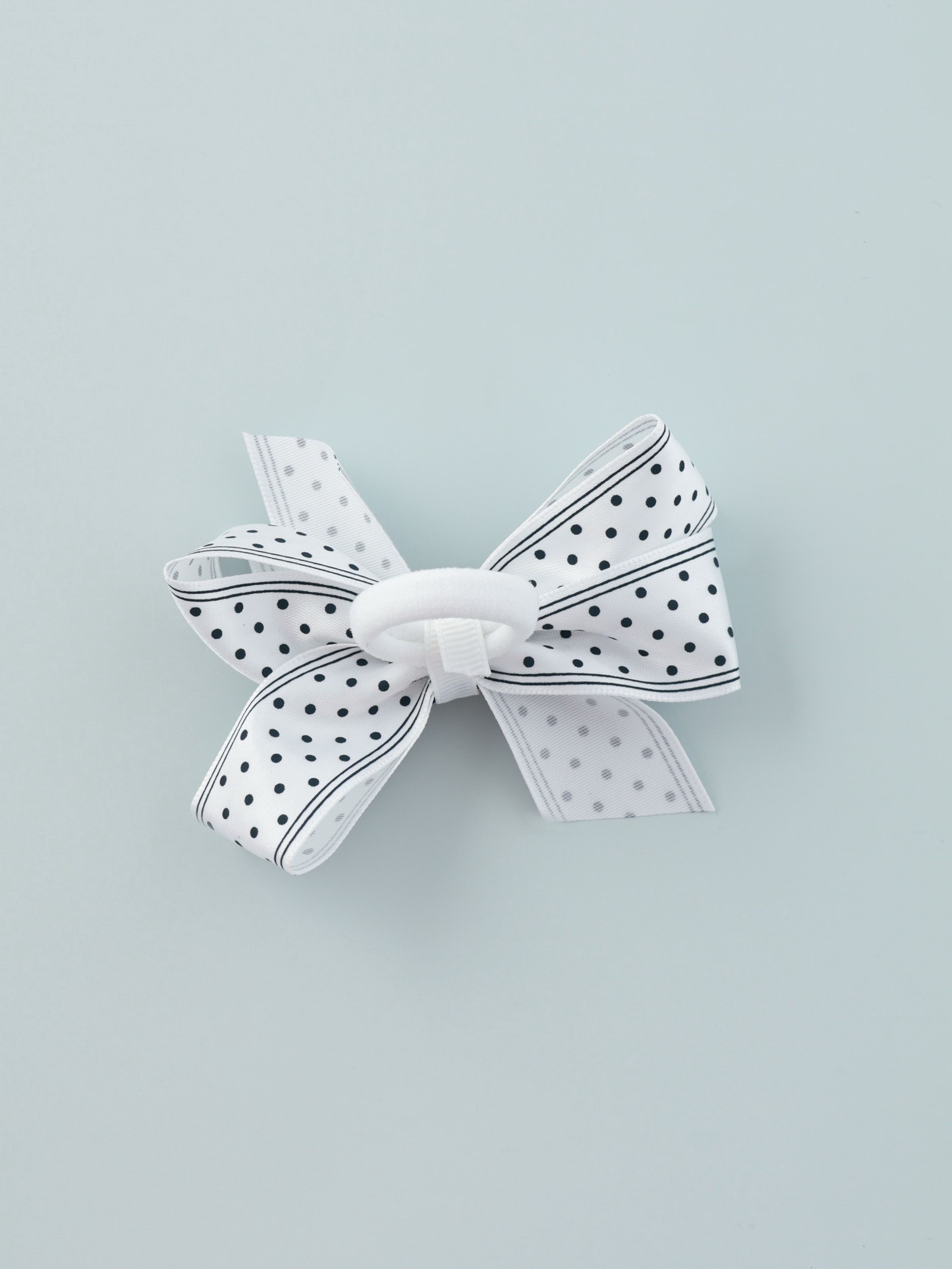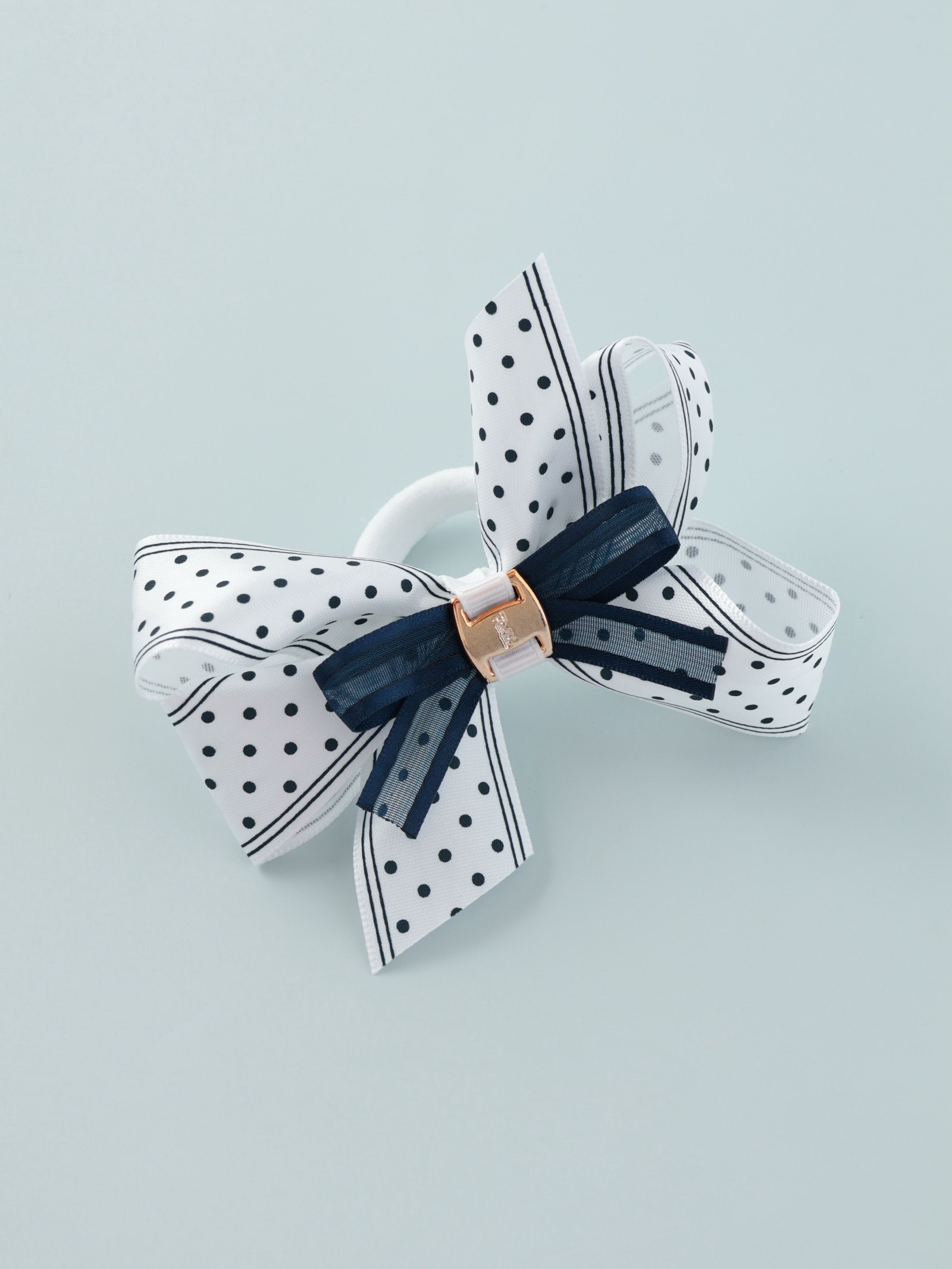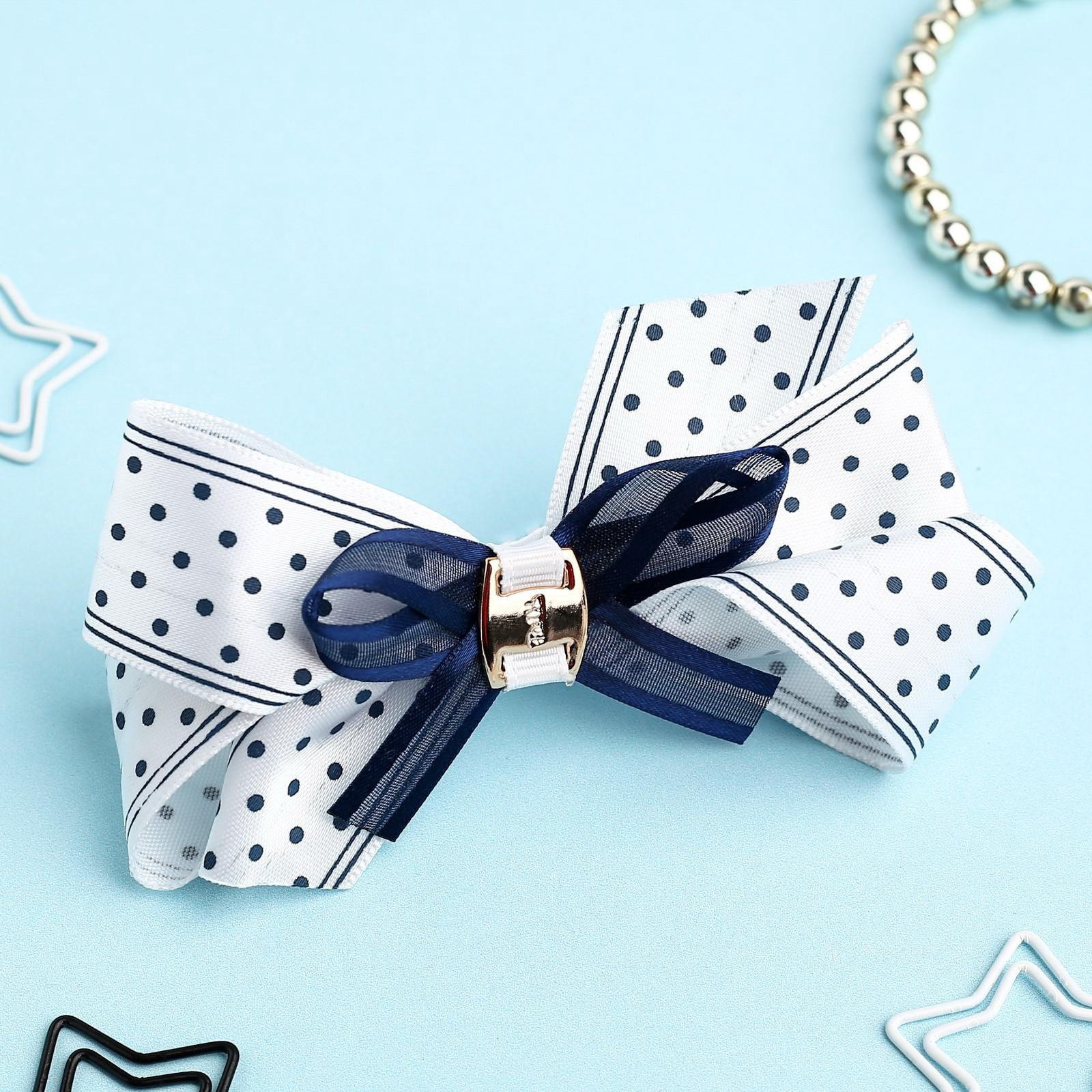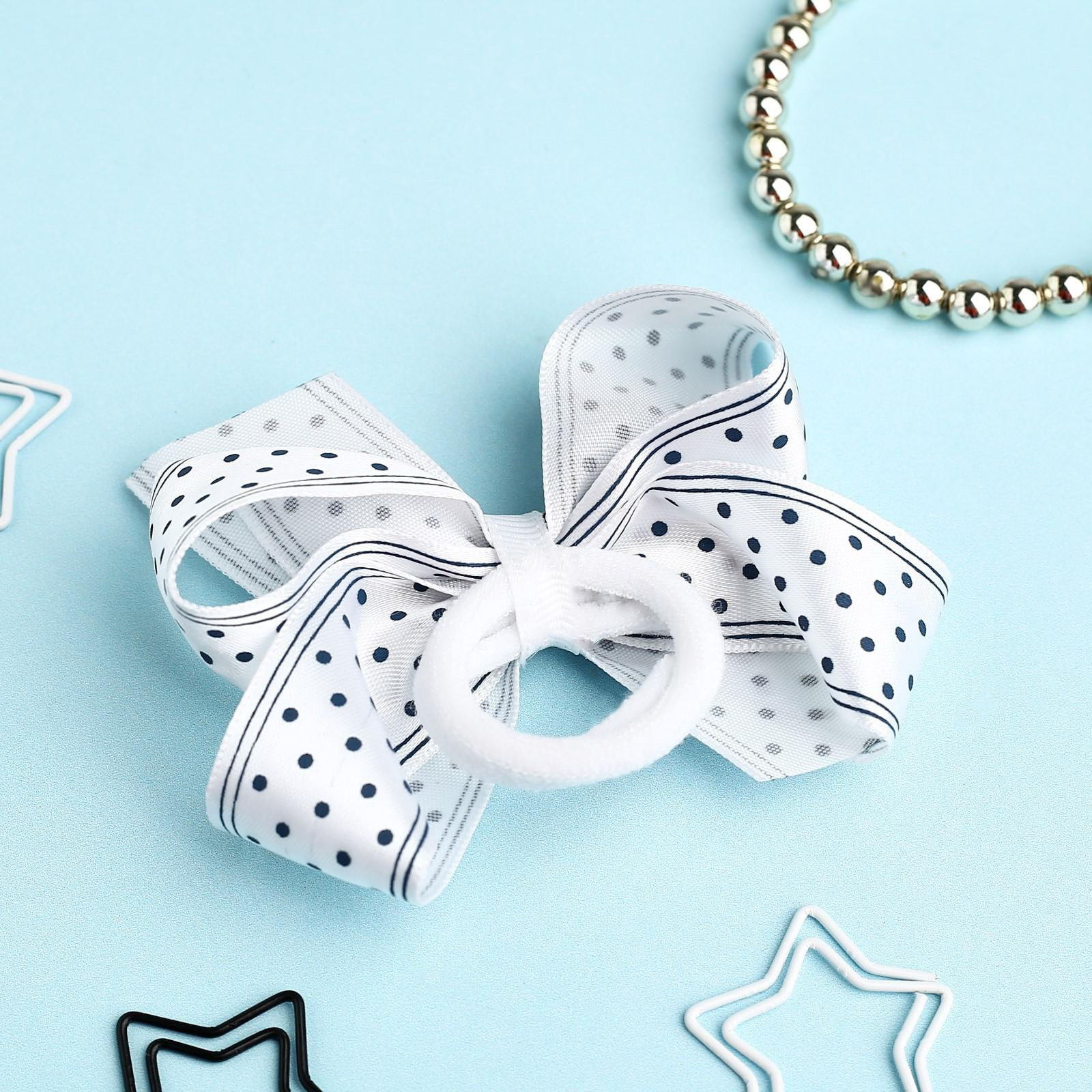 Бант для волос на резинке "Школьница", полоски горох, 8 см, бело-синий, 5 см., Китай