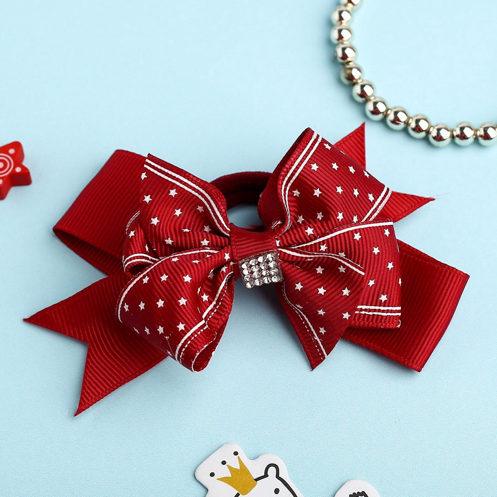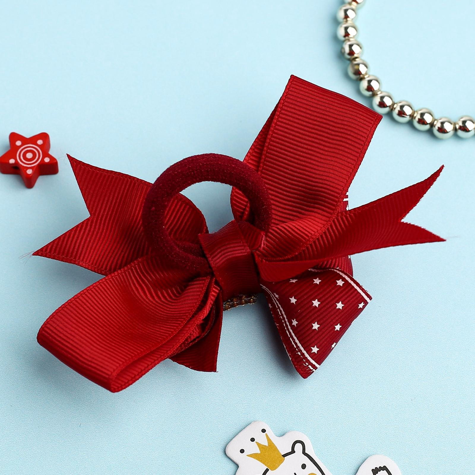 Бант для волос на резинке "Школьница", звезда, 12 см, красный, 5 см., Китай
