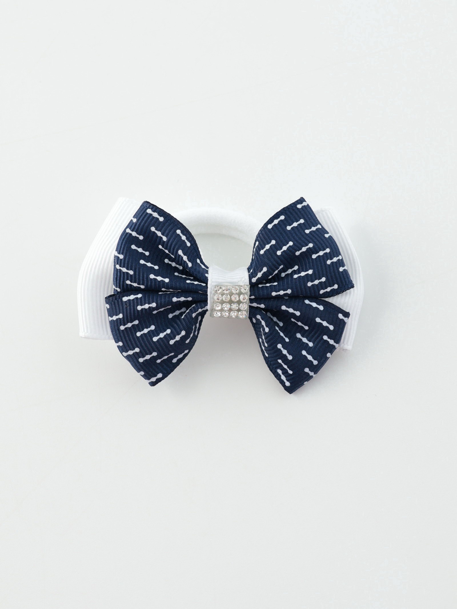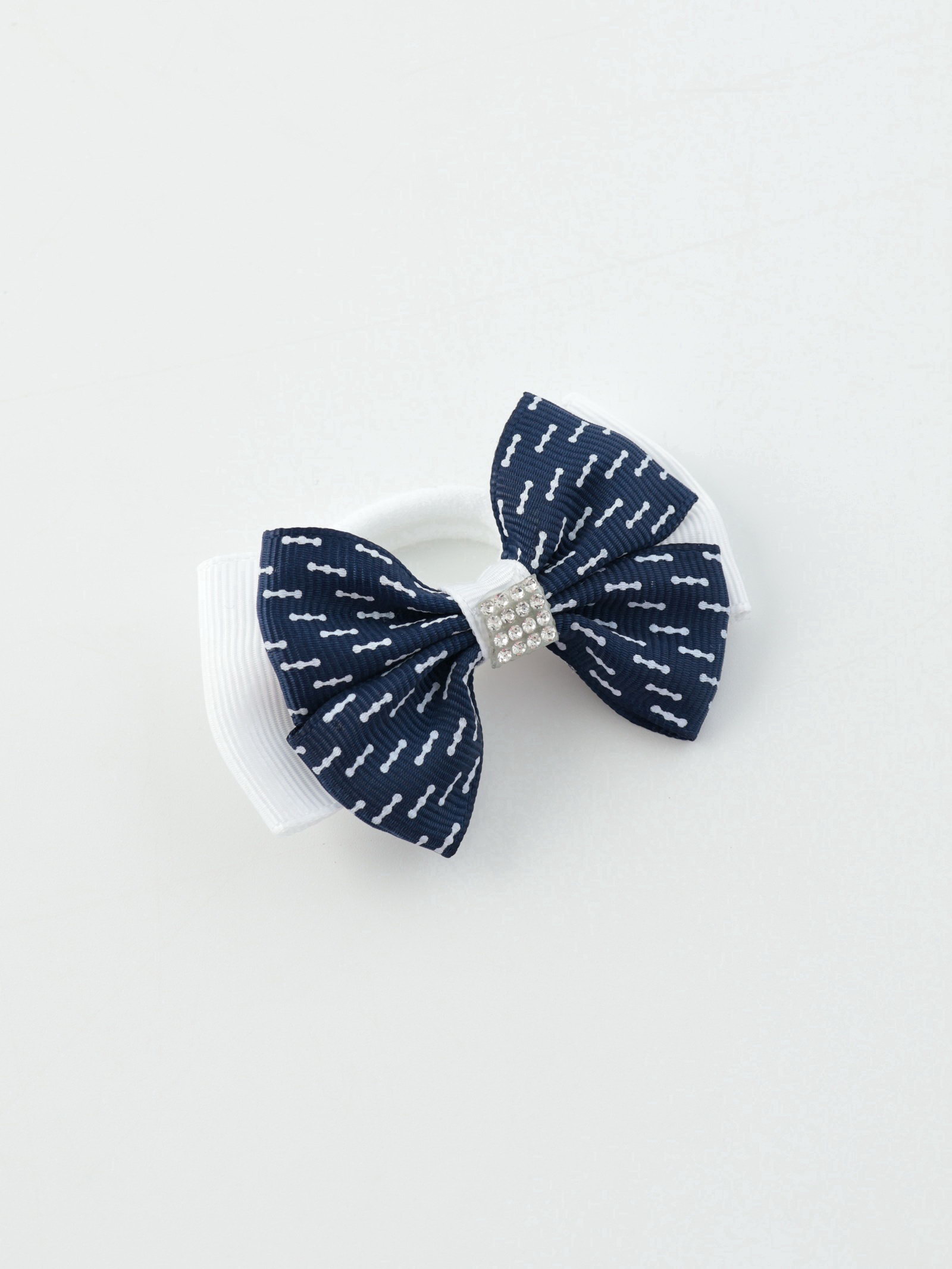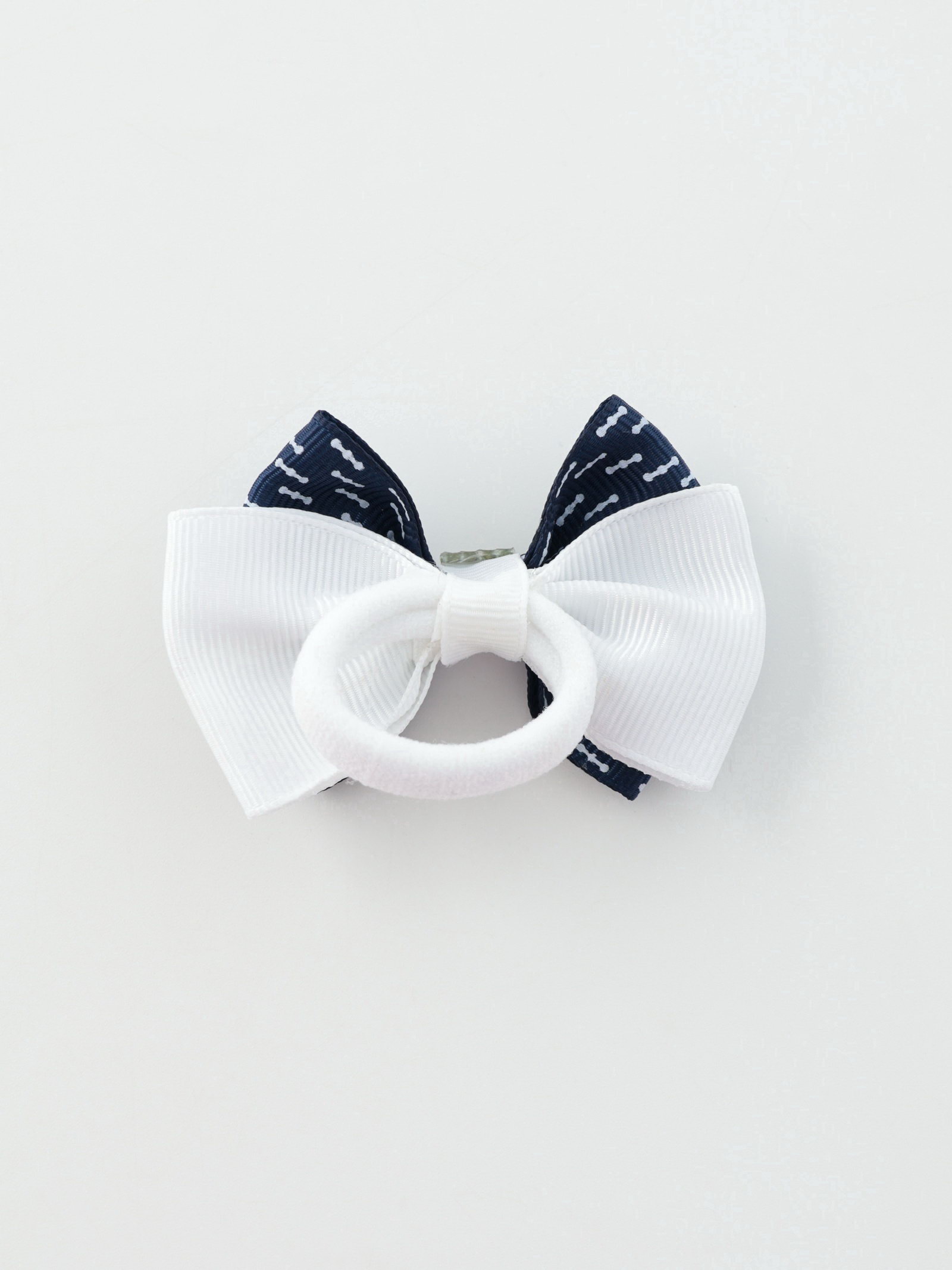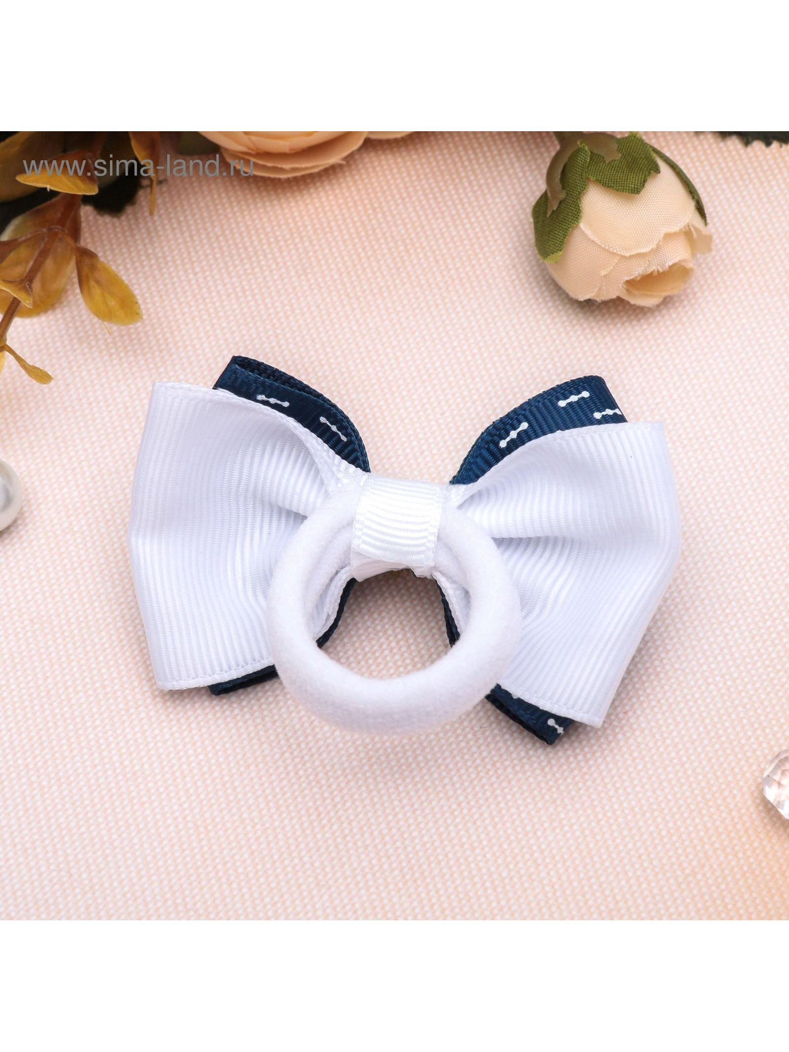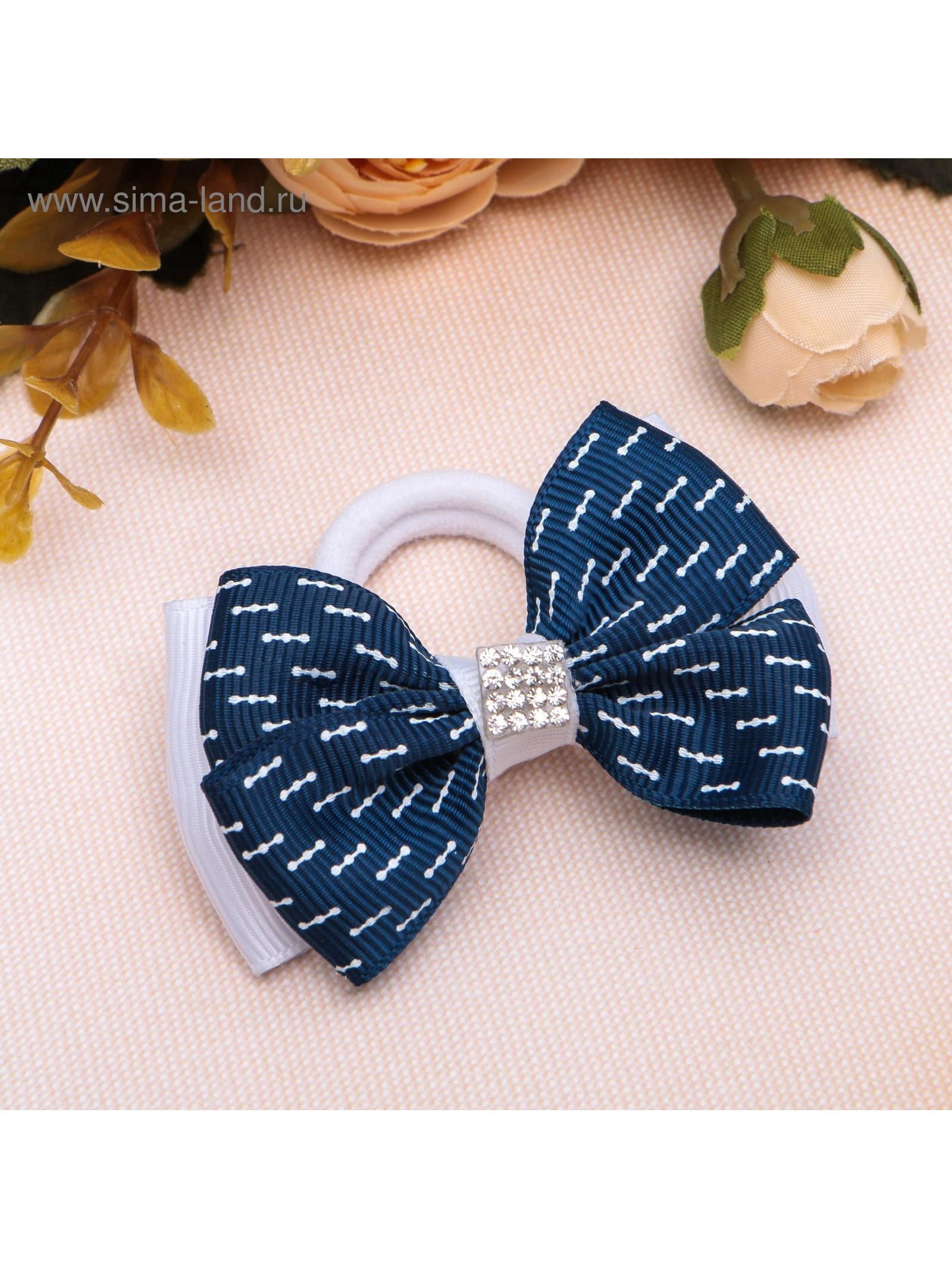Бант для волос на резинке "Школьница", штрихи, 6.5 см, сине-белый, 5 см., Китай