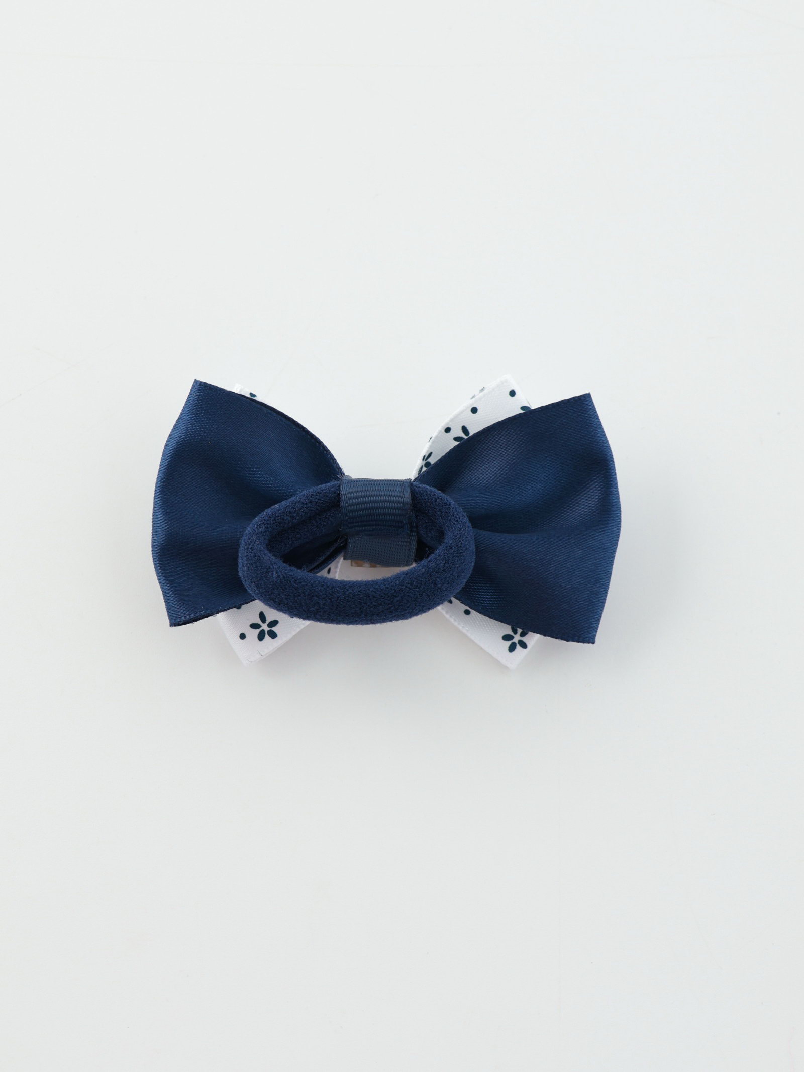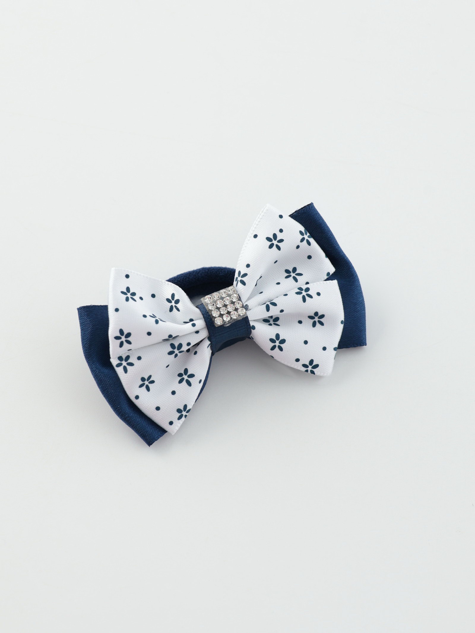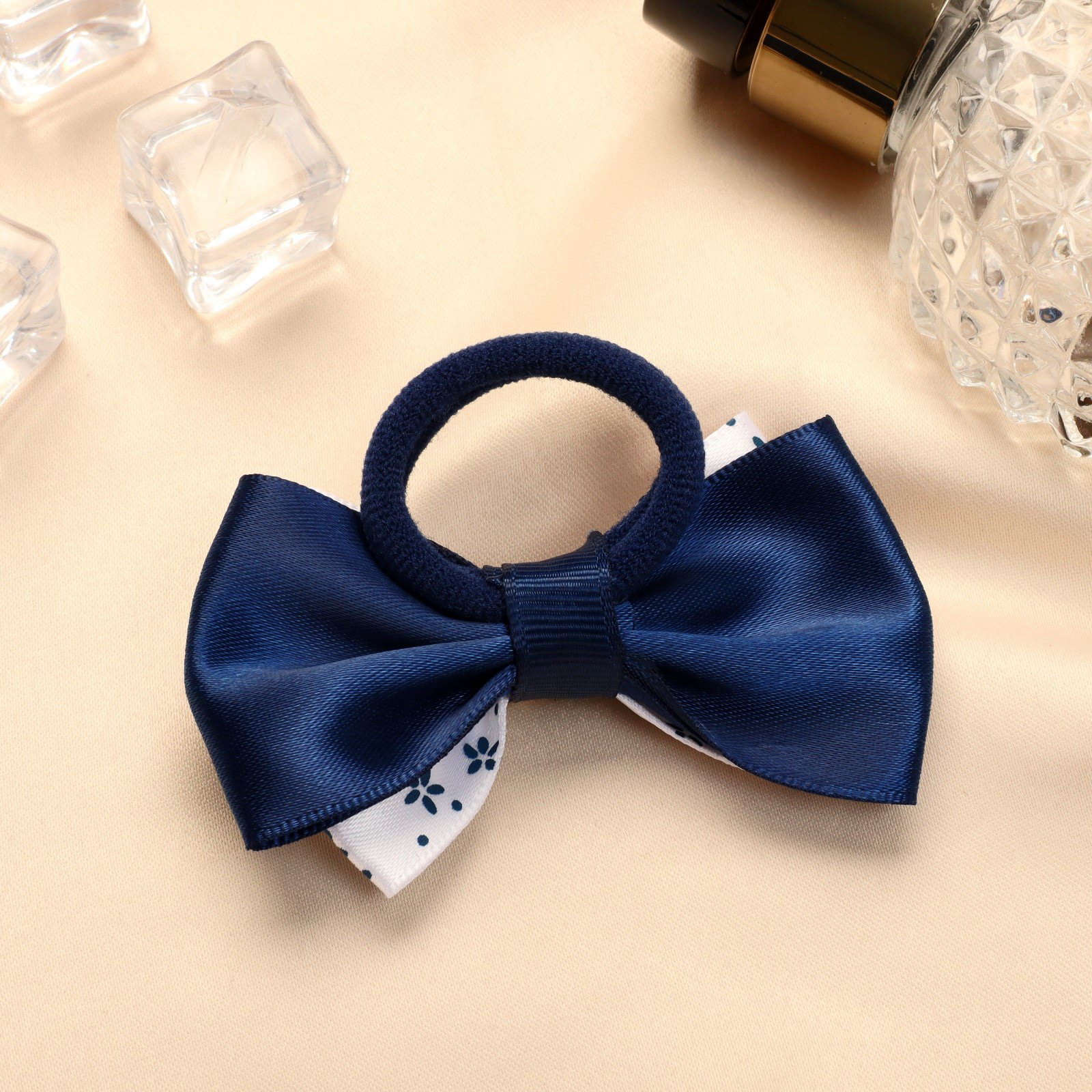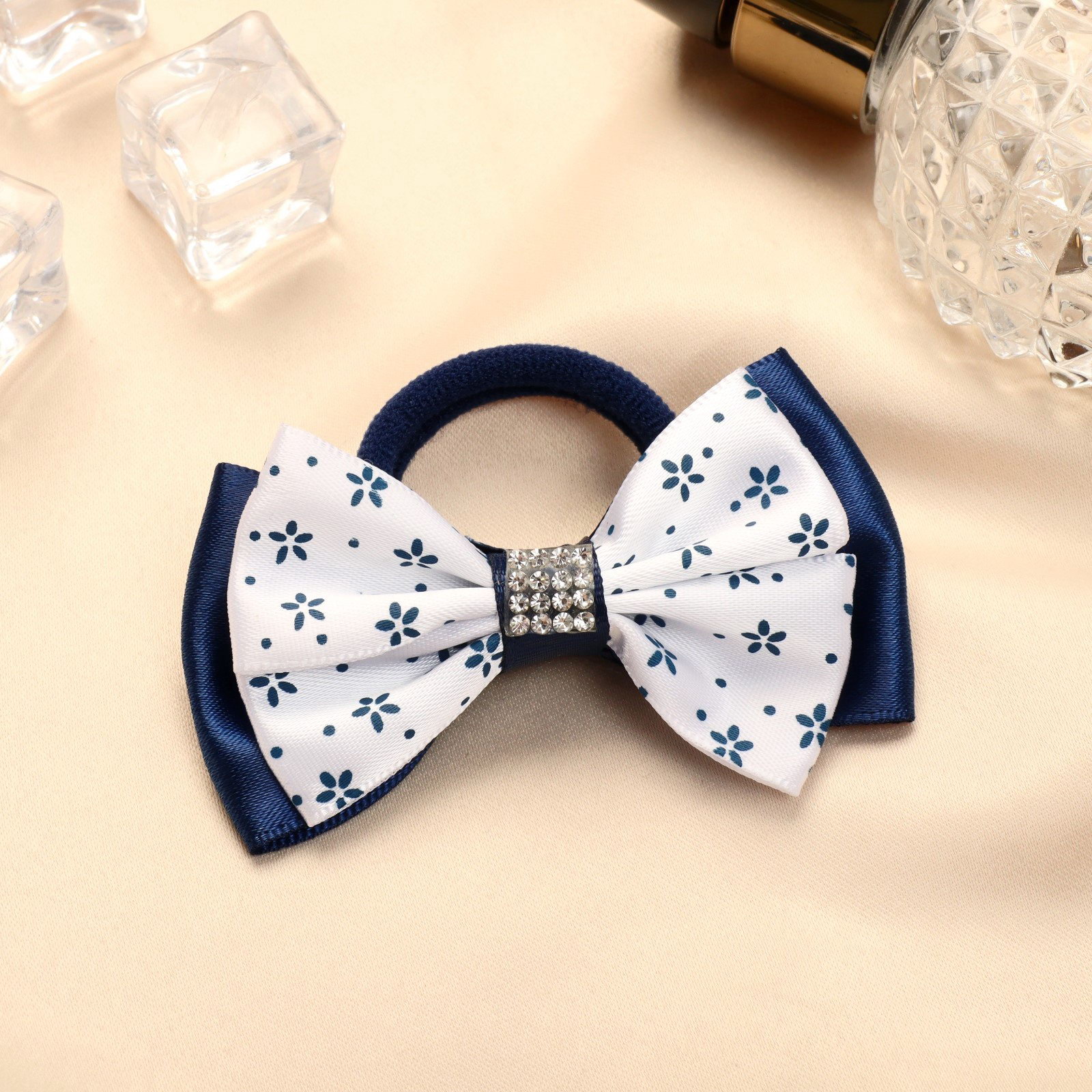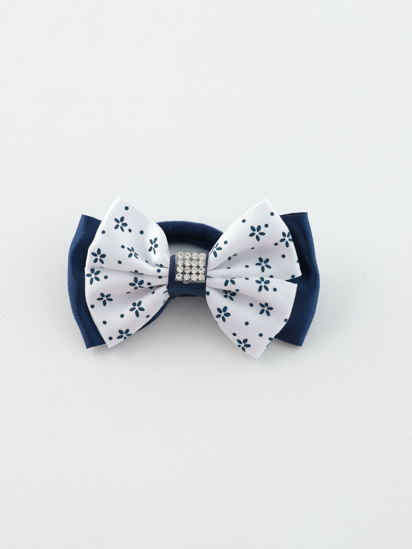Бант для волос на резинке "Школьница", цветочки, 6.5 см, бело-синий, 5 см., Китай