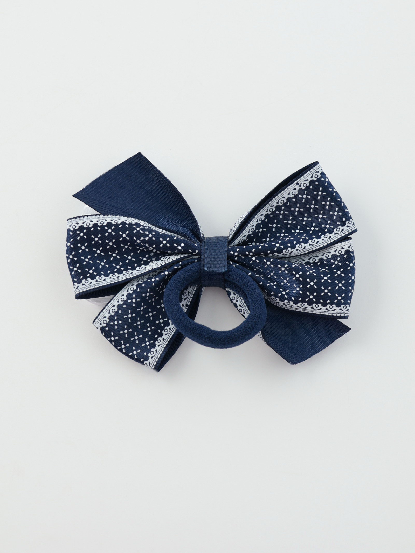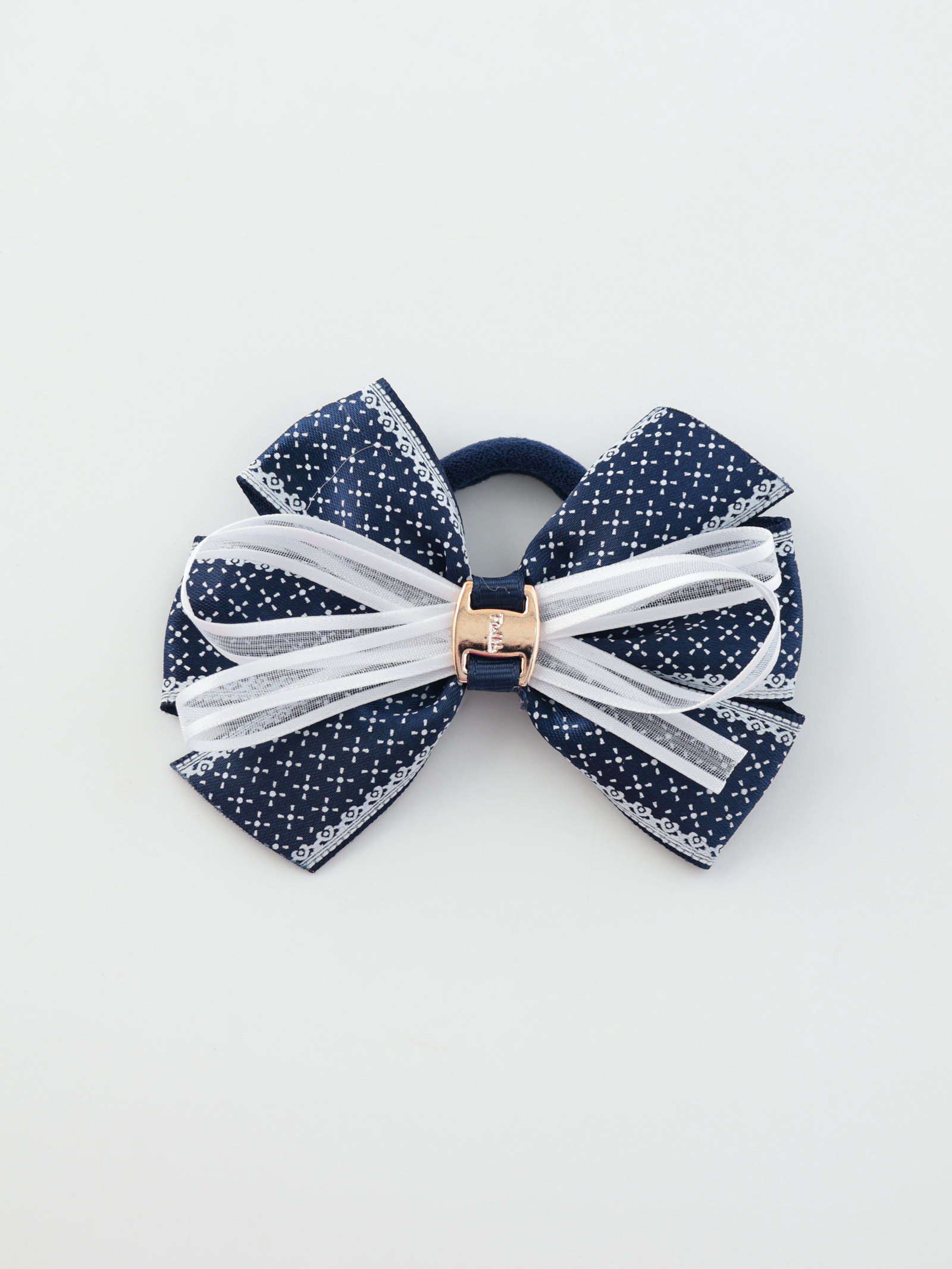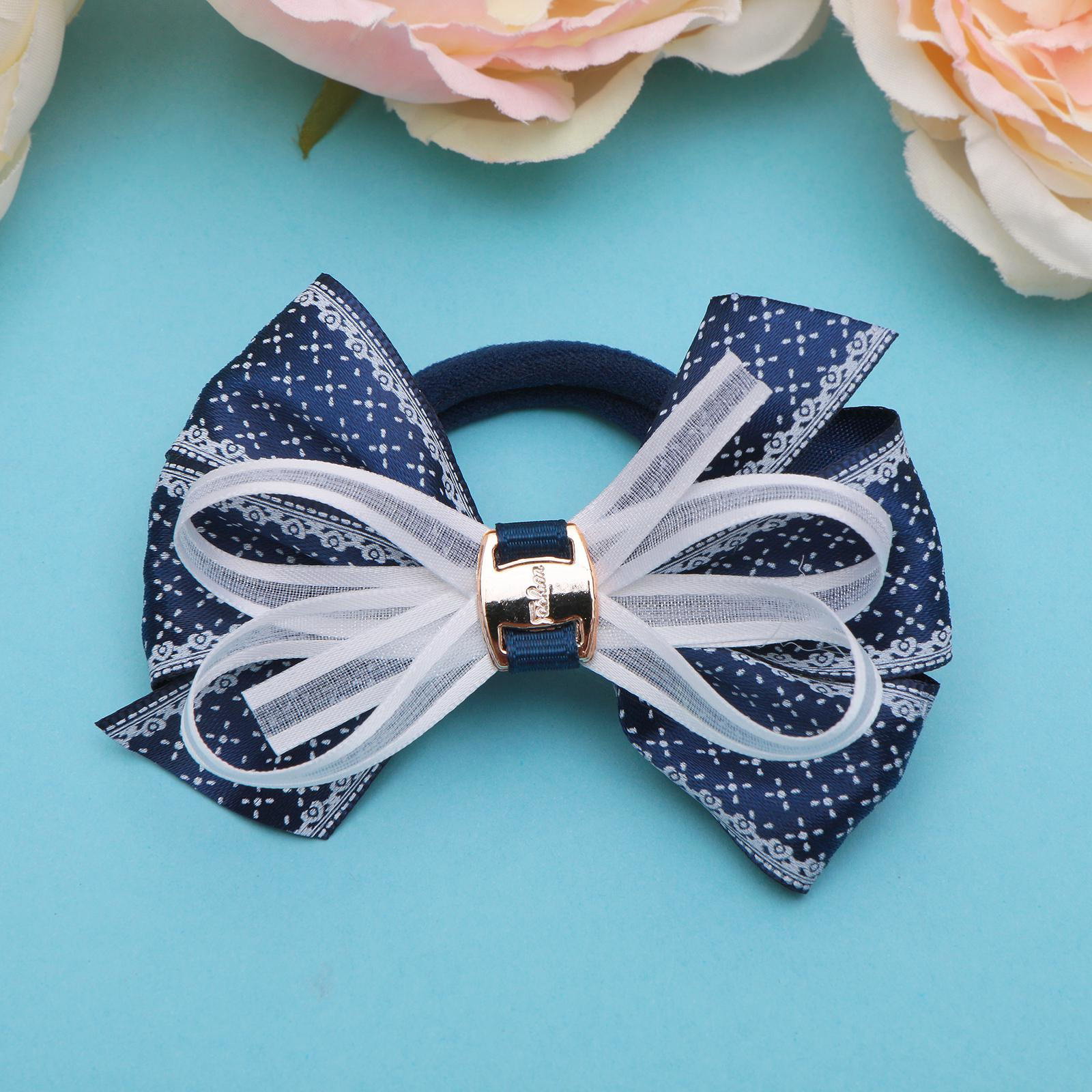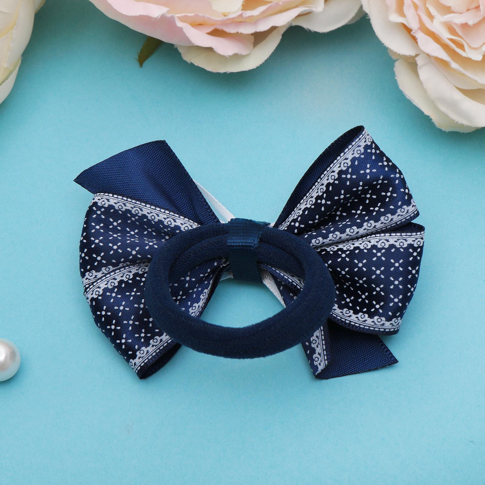 Бант для волос на резинке "Школьница", мелкий узор, 8 см, бело-синий, 5 см., Китай