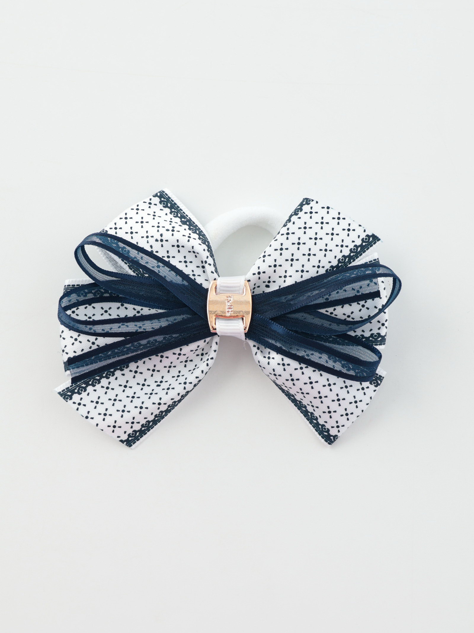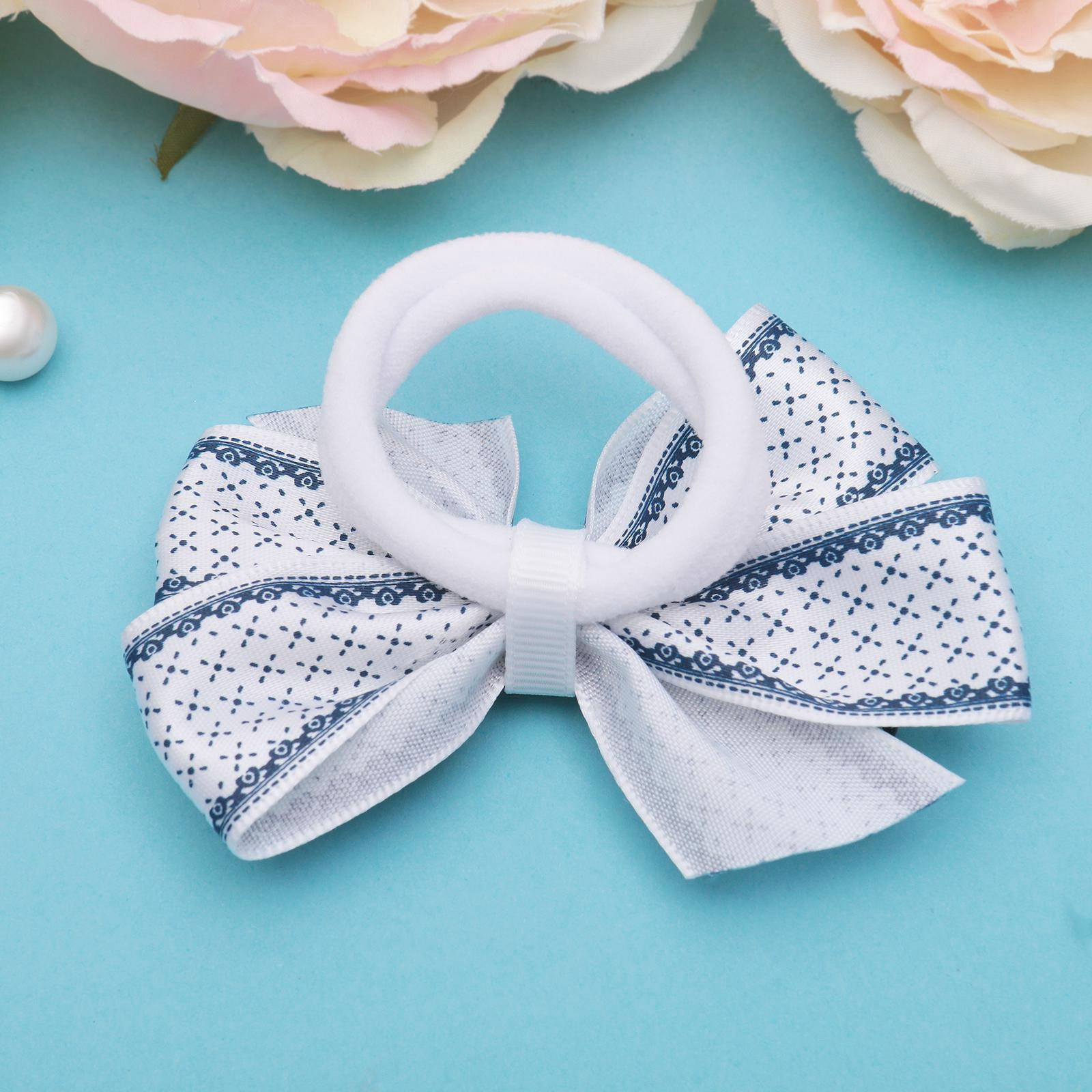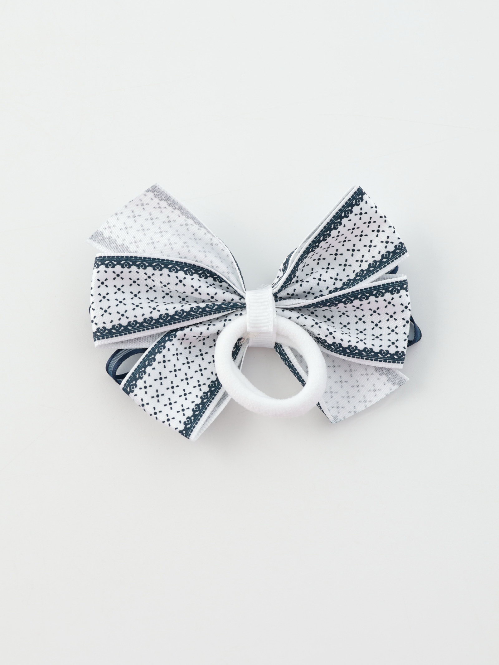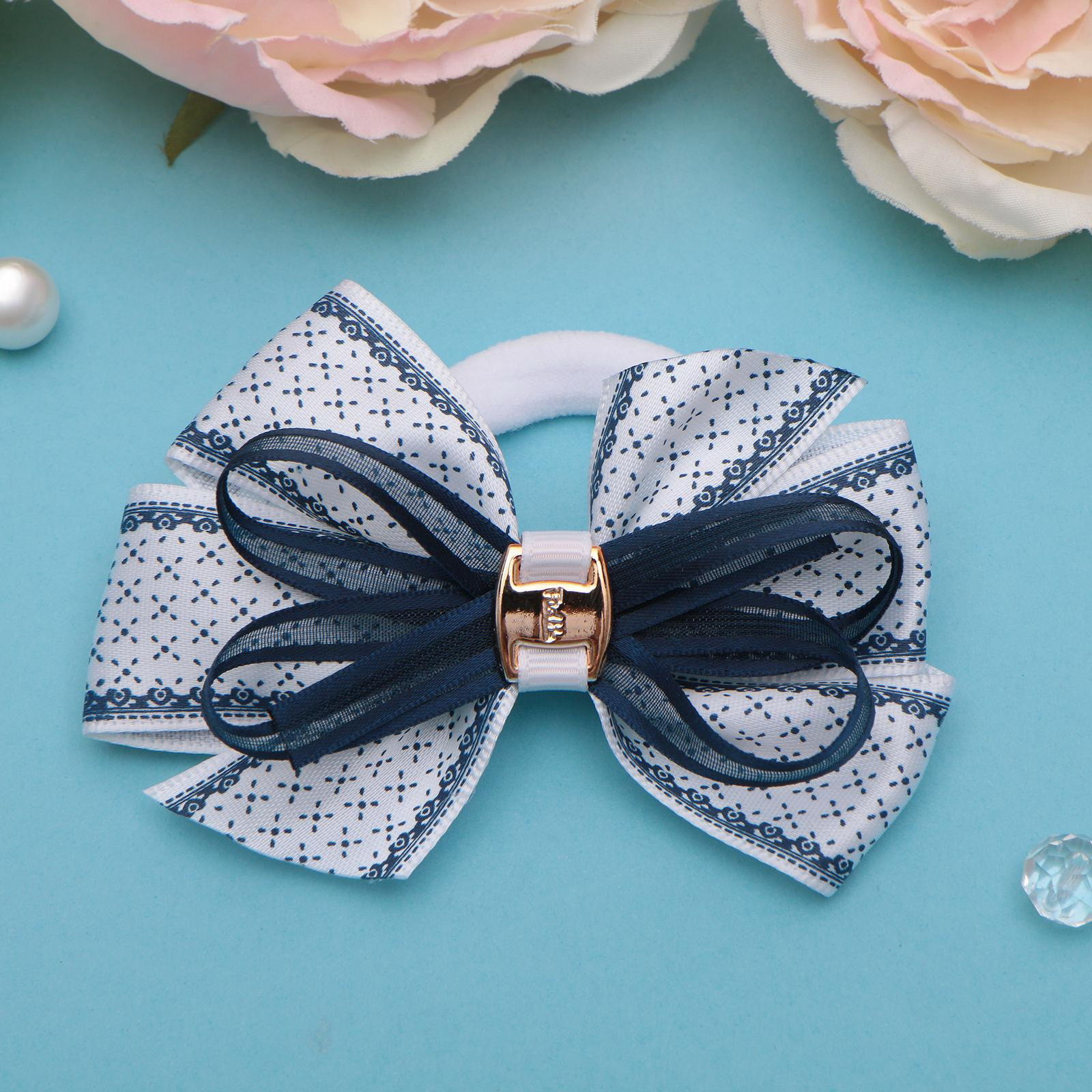 Бант для волос на резинке "Школьница", мелкий узор, 8 см, бело-синий, 5 см., Китай