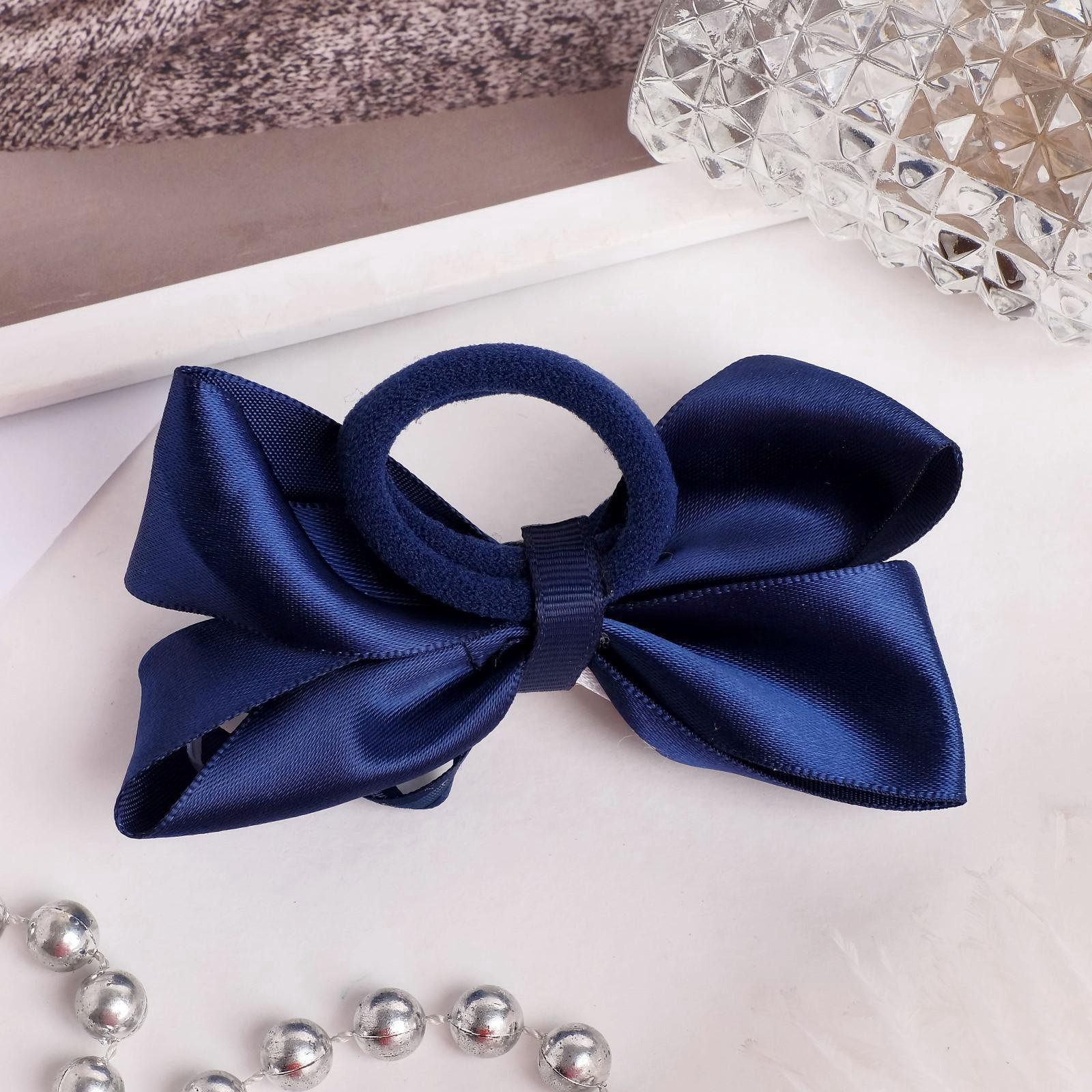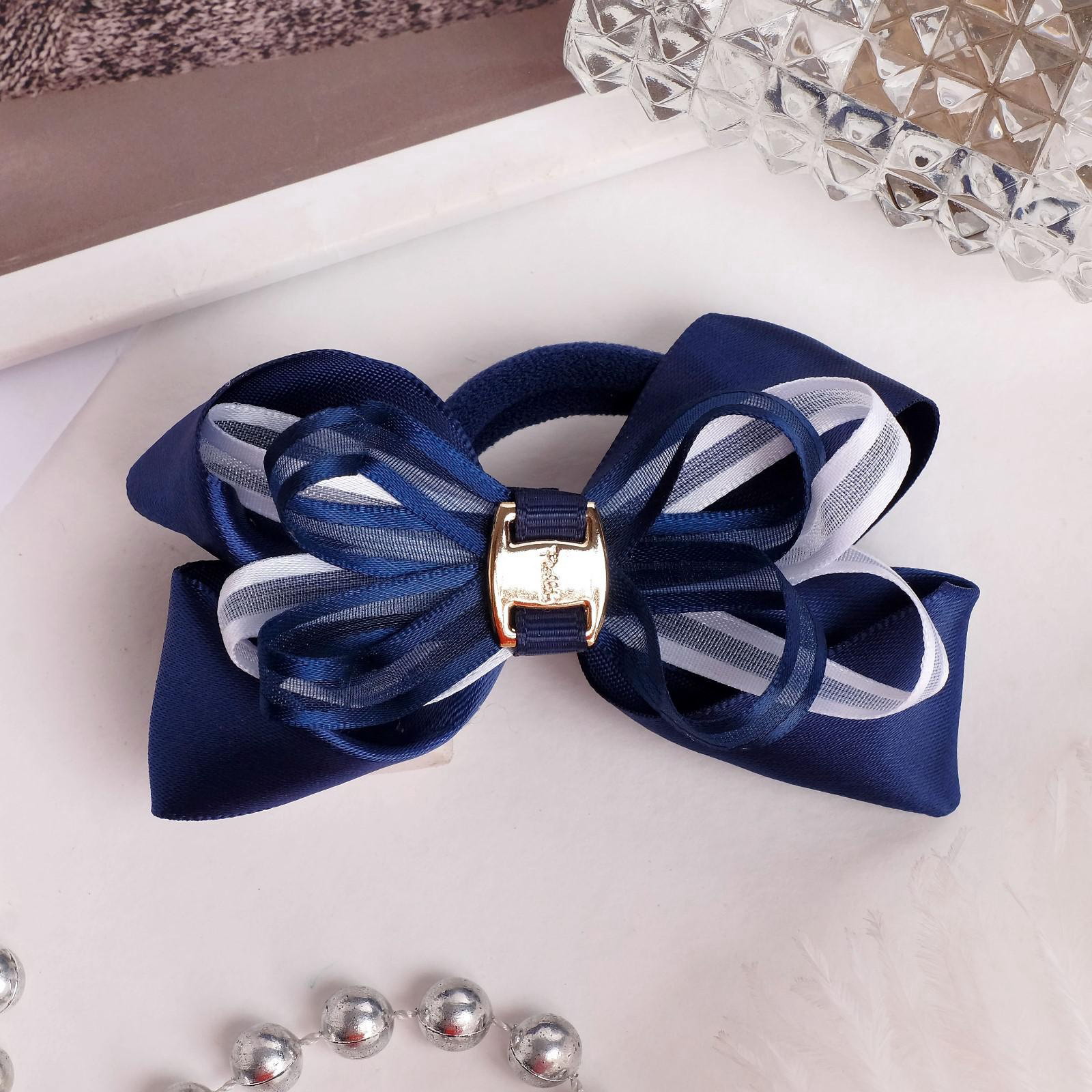 Резинка для волос "Школьница", бант полоски, 8 см, сине-белая, 5 см., Китай