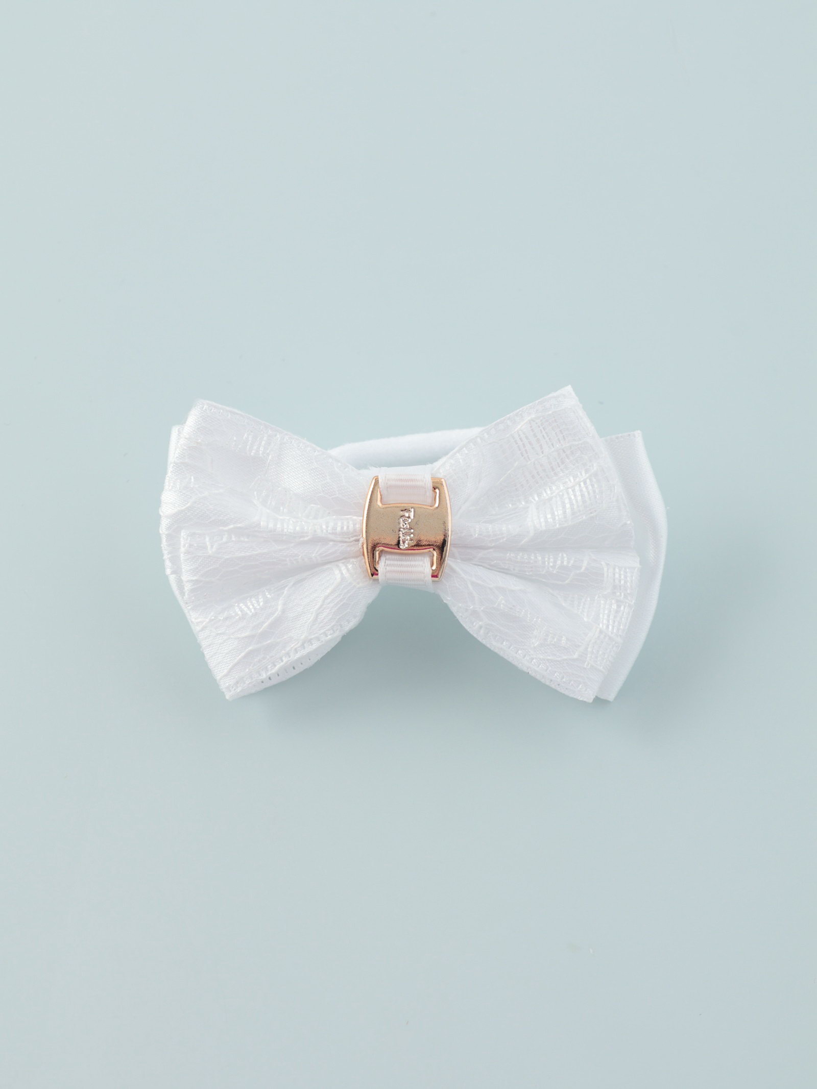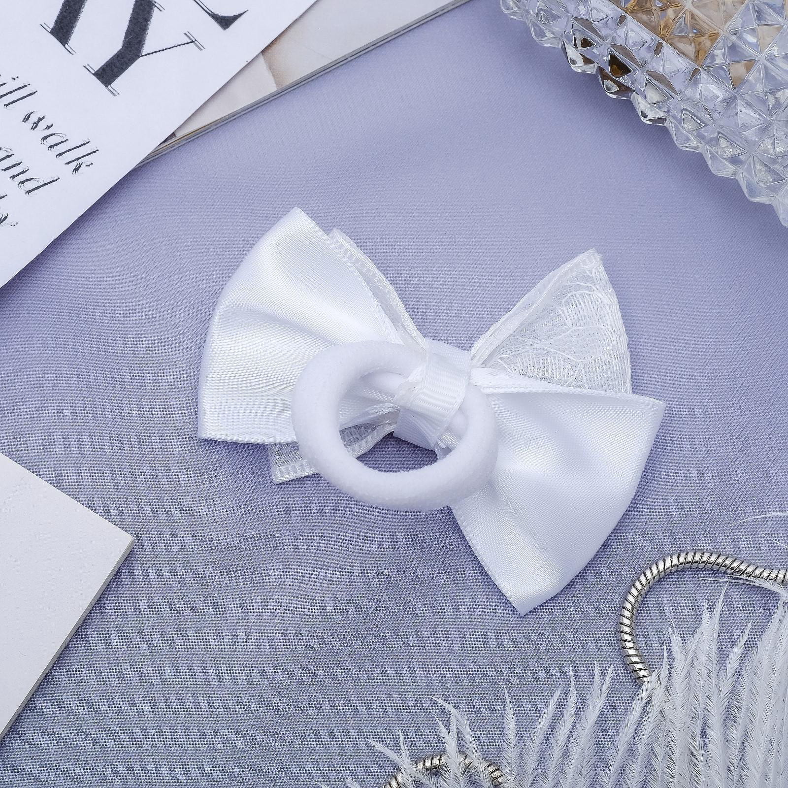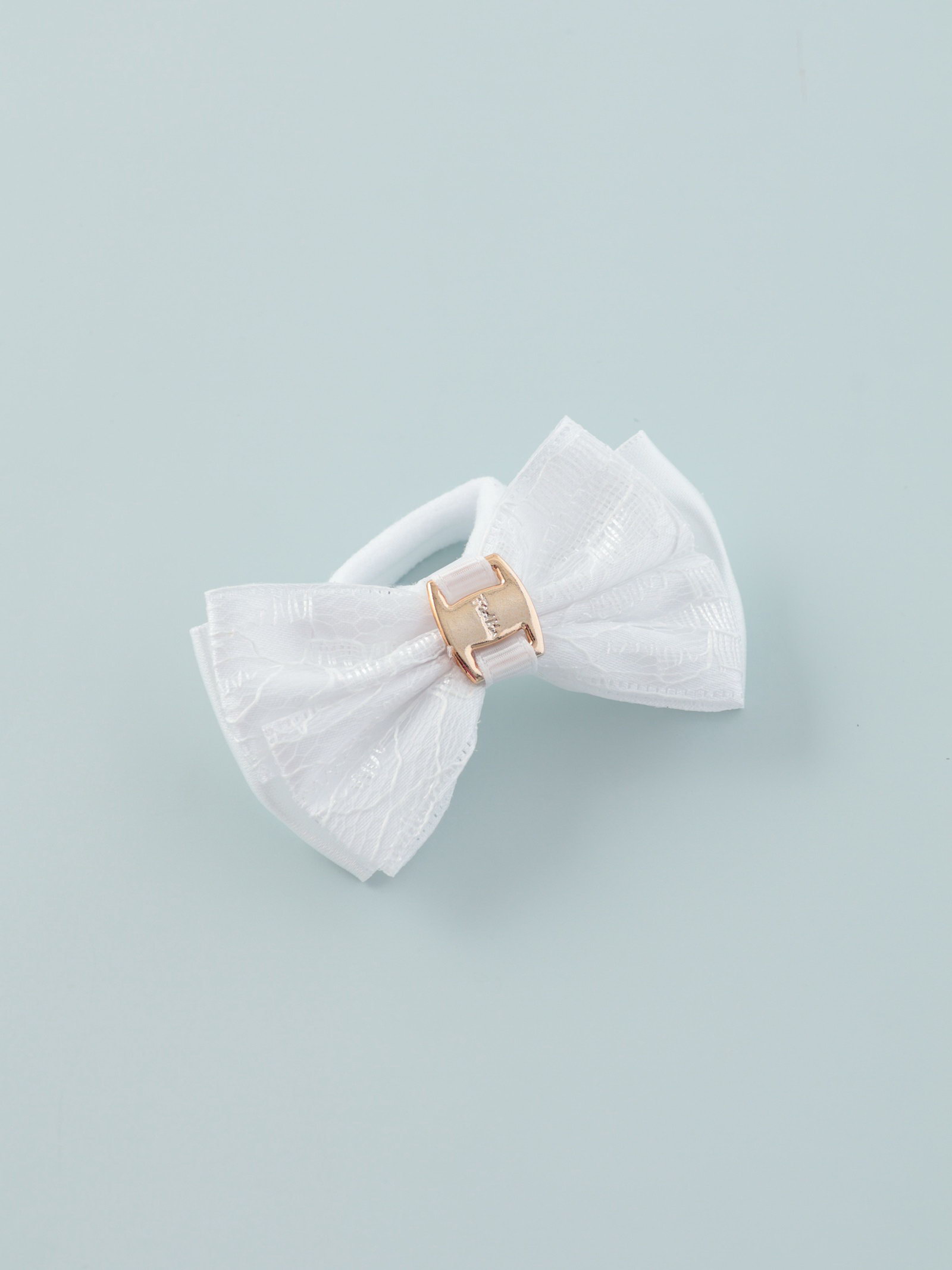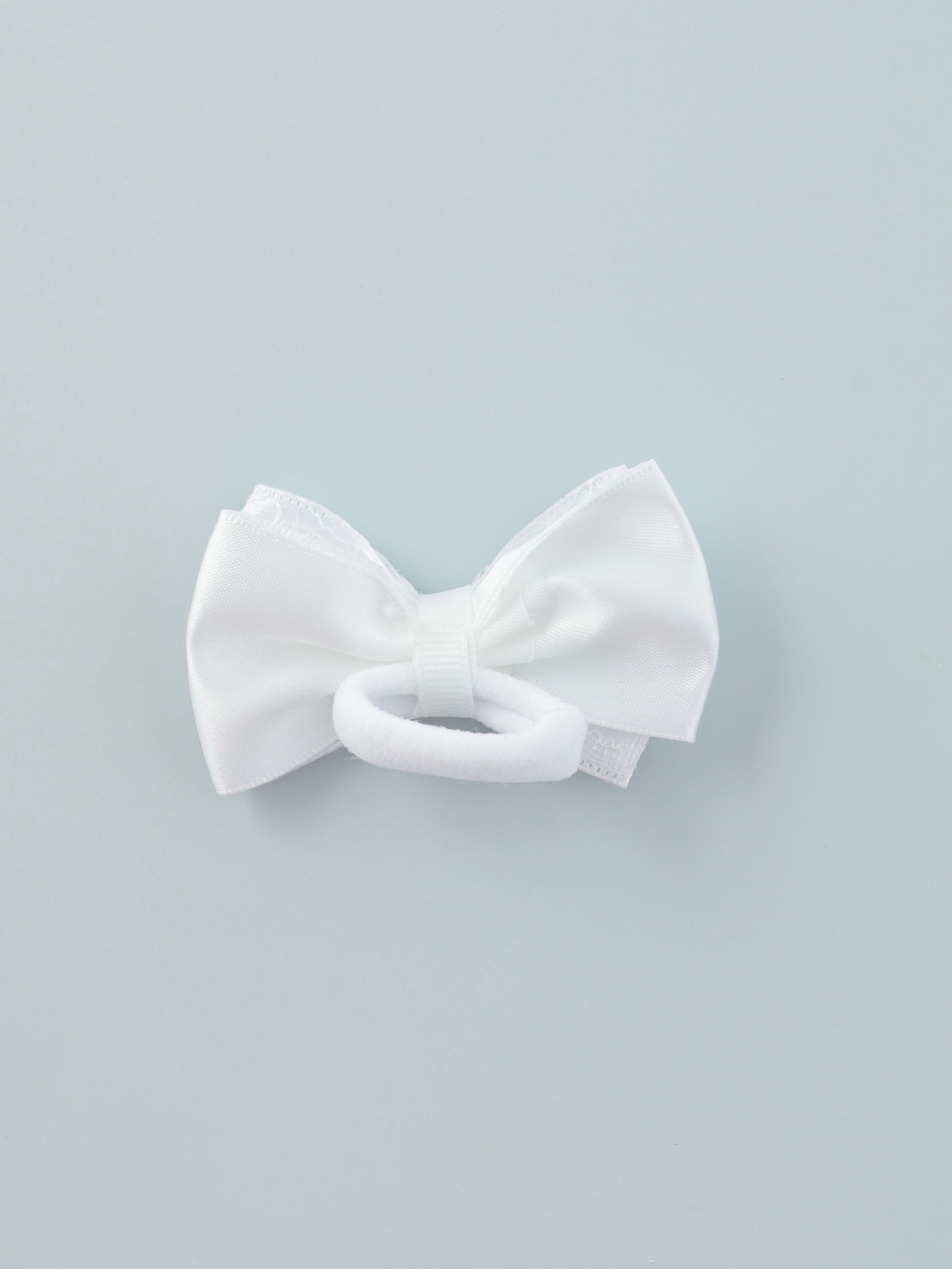 Бант для волос на резинке "Школьница", кружева, 7 см, белый, 5 см., Китай