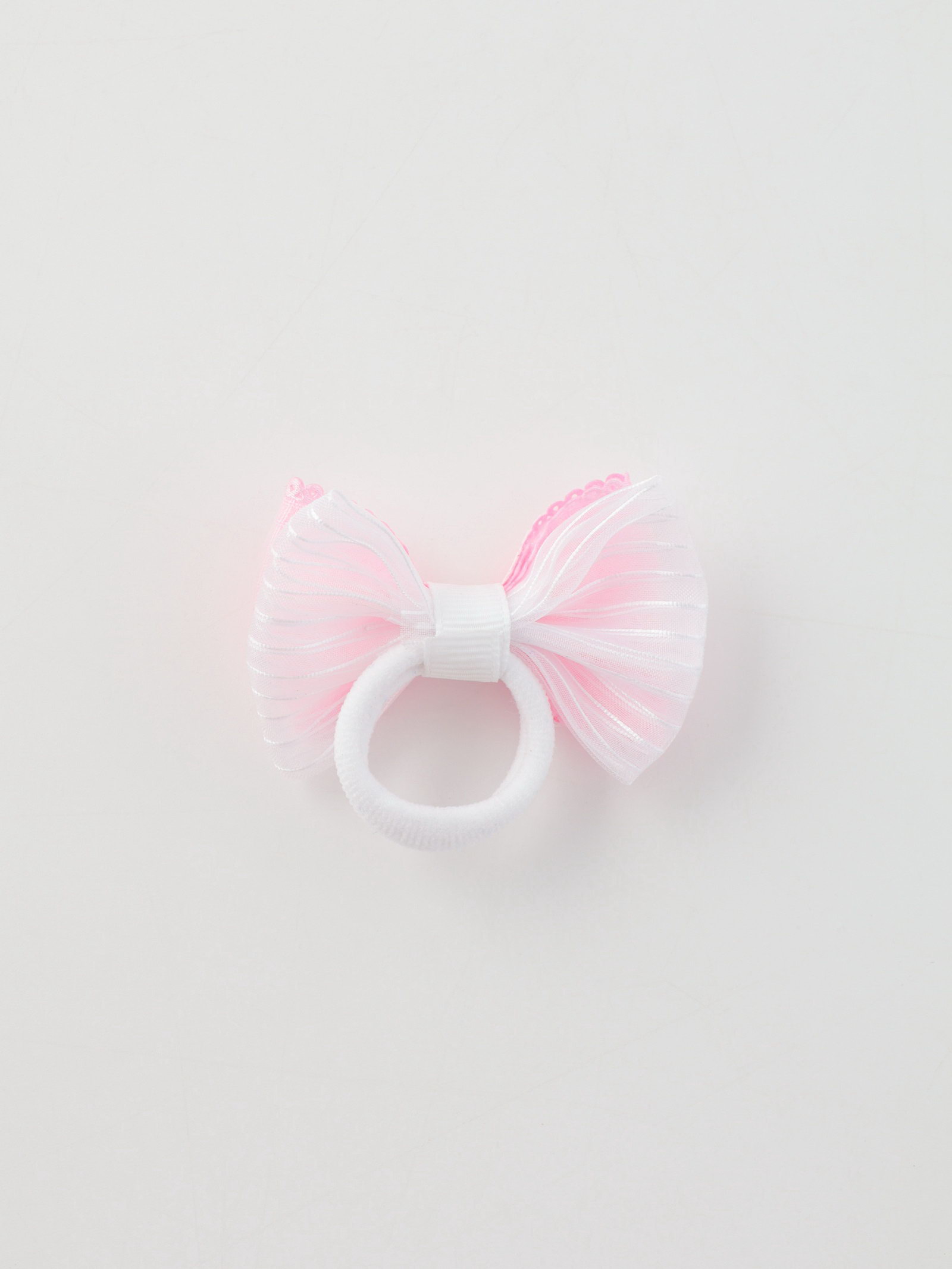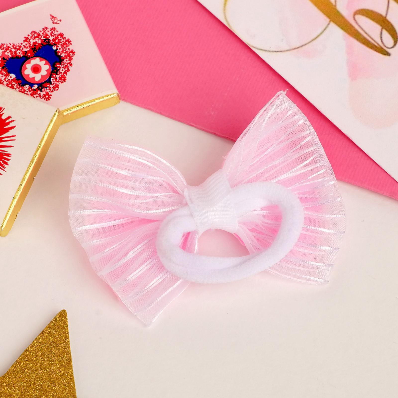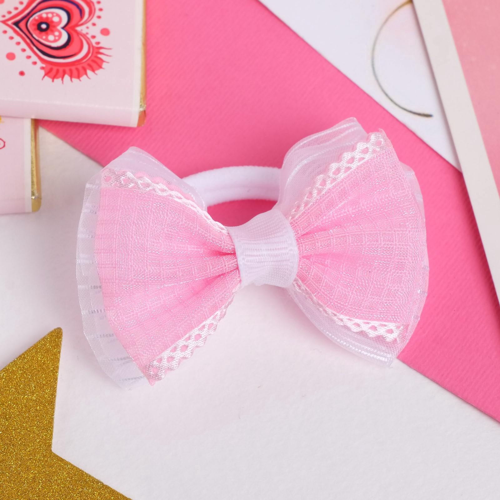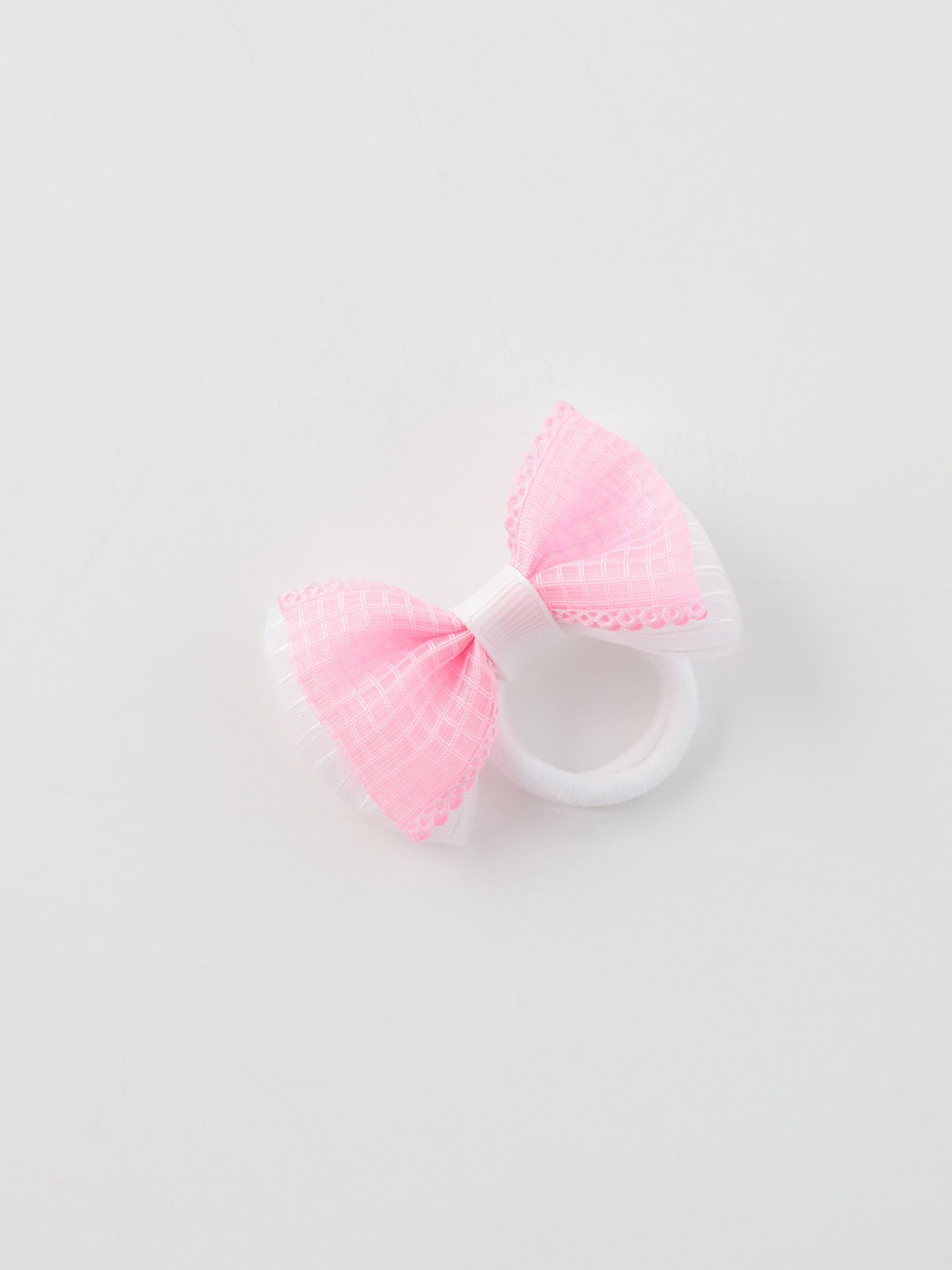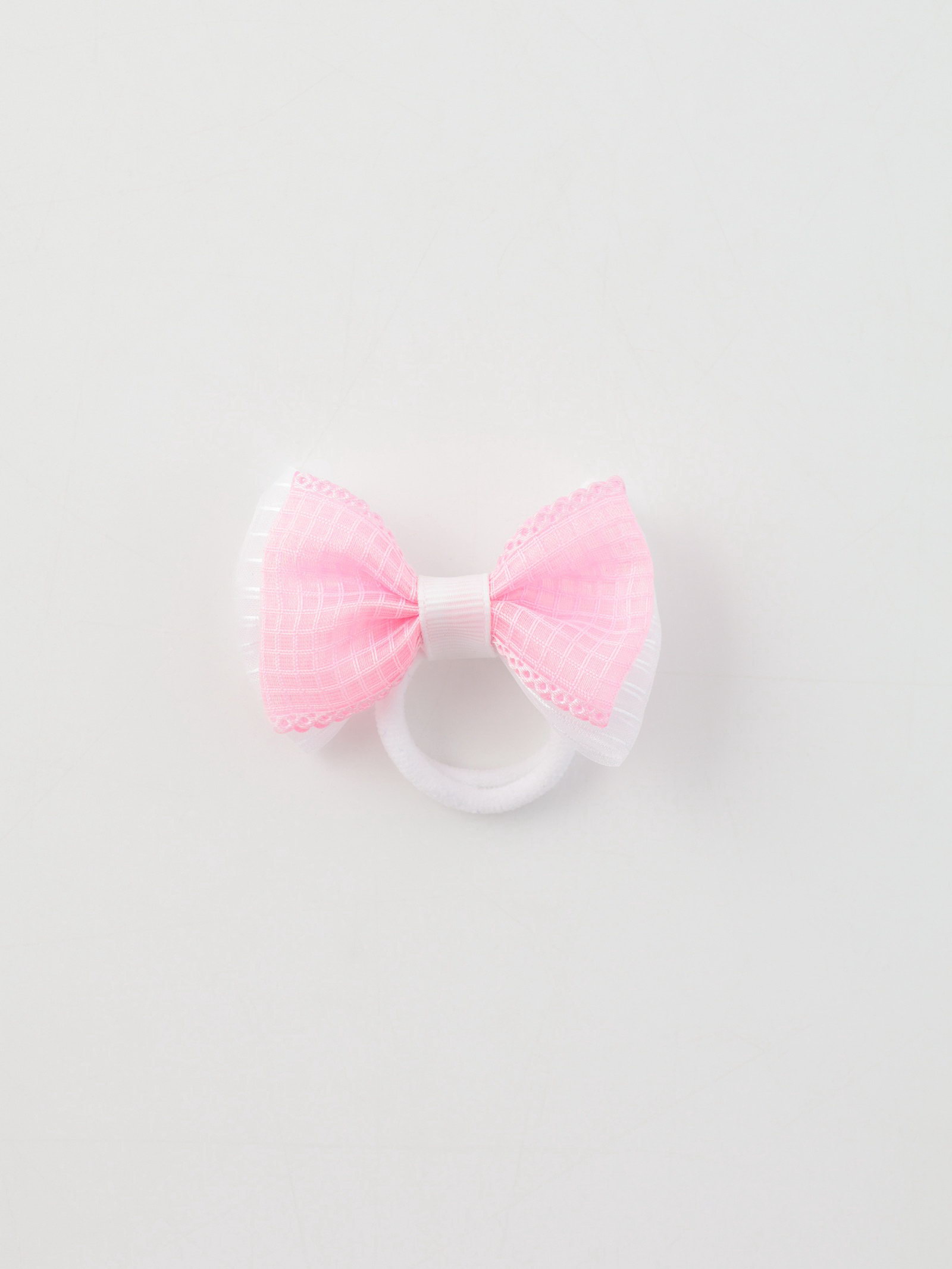 Бант для волос на резинке "Аленушка", клеточка, 6.5 см, розово-белый, 4 см., Китай