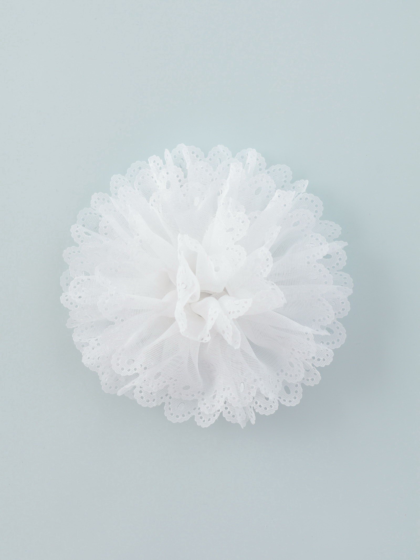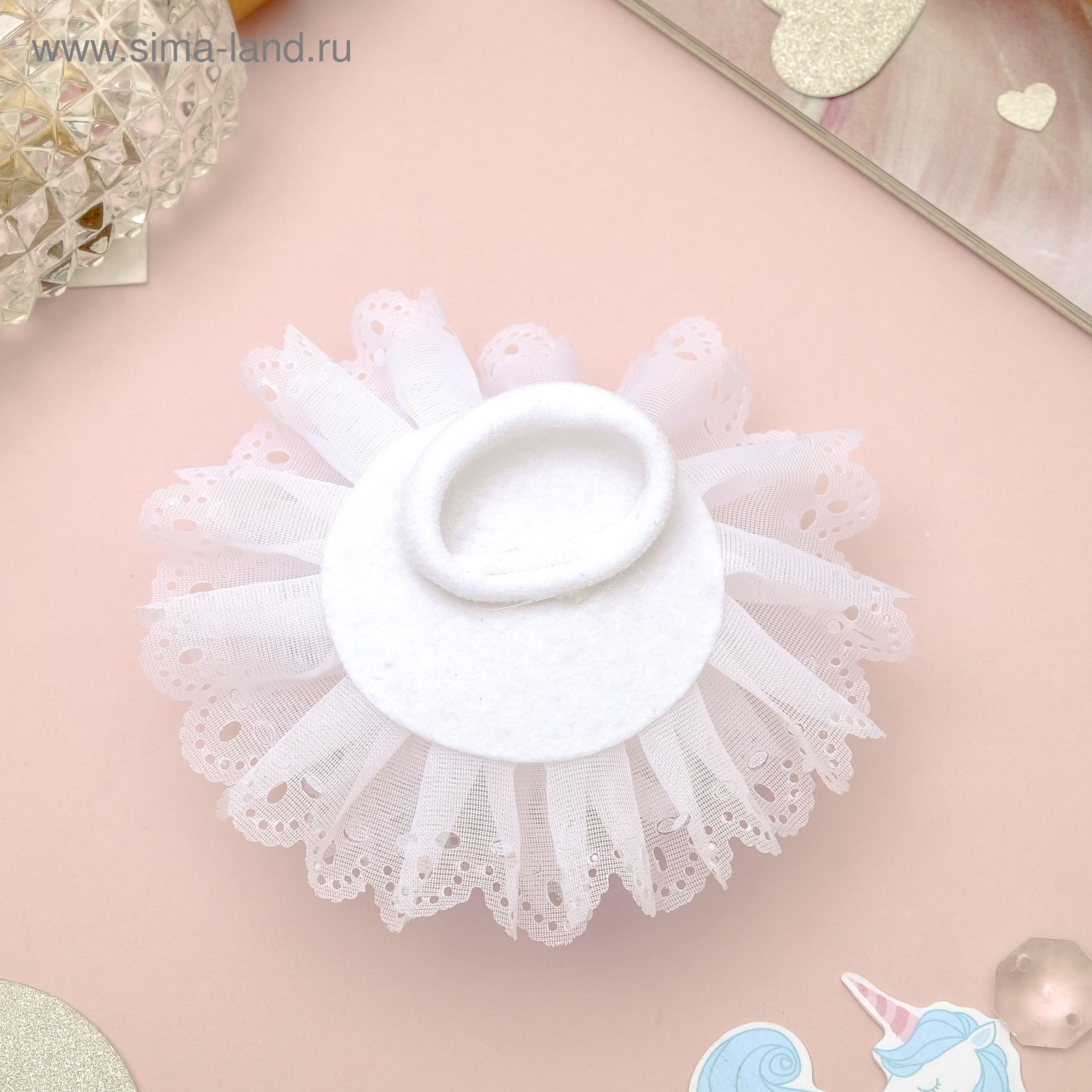 Бант для волос на резинке "Школьница", цветок ажурный, d=10 см, белый, 10 см., Китай