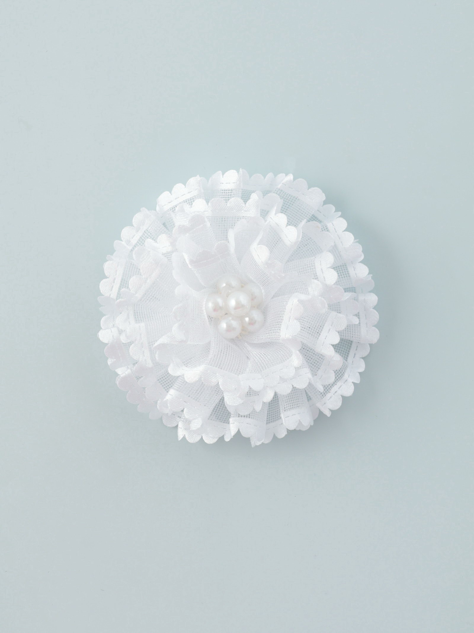 Бант для волос на резинке "Школьница", цветок жемчужный, d=8 см, белый, 8х8х8 см., Китай